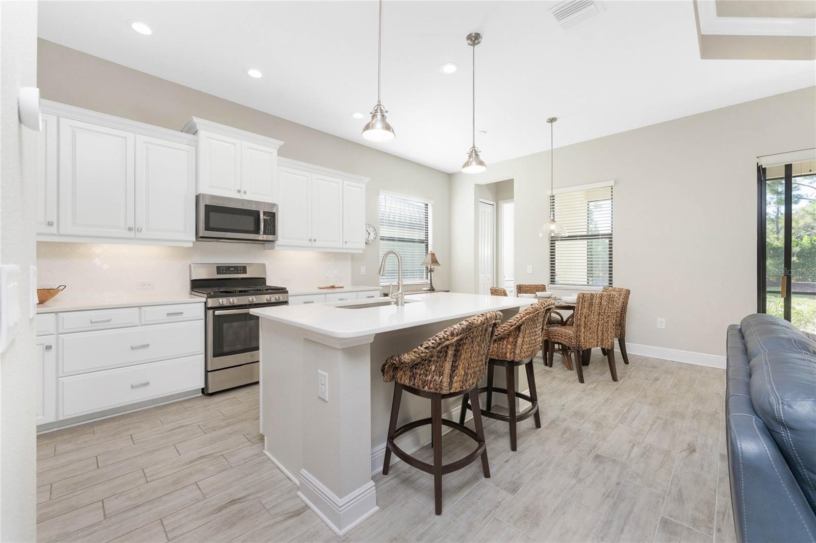Welcome to the gated community of Boca Royale, where luxury living meets Florida paradise. This meticulously designed home boasts 3 bedrooms, 2 full baths, a convenient half pool bath and a den/office with elegant glass French doors for added privacy and style. As you arrive, the upgraded pavers in the driveway immediately set the tone for the quality within. Step through the front door into an open concept living space with a split floor plan, perfect for both relaxation and entertainment. The Great room features coffered ceilings and expansive sliding glass pocket door that lead out to a screened lanai. The main living area is adorned with tasteful tile floors, while the den/office boasts luxurious engineered hardwood floors, ideal for a comfortable workspace or cozy retreat. The heart of the home is the stunning kitchen, complete with coastal white cabinets, upgraded quartz countertops, an eat-in kitchen nook, island with bar seating, walk-in pantry, gas range, and pendant lighting. The primary bedroom is a true sanctuary, featuring an en suite bath with quartz countertops, dual sinks and a glass-enclosed walk-in shower. Dual closets provide ample storage space.Beyond the exquisite features of the home, Boca Royale offers a wealth of amenities for residents to enjoy. Take a dip in the Resort Pool, play a round of golf on the newly renovated 18-hole course, or hit the tennis and pickleball courts. The dog park is perfect for four-legged friends and the remodeled clubhouse features a bar and restaurant with both indoor and outdoor seating overlooking the picturesque golf course. Located just minutes away are multiple Gulf beaches, offering endless opportunities for sun-soaked days by the water. Boating enthusiasts will appreciate the easy access to the Intracoastal Waterway and Gulf of America. Additionally, the unique beach town of Englewood has many locally-owned restaurants, charming shops, and the Englewood Farmers Market, providing a true sense of community. Don't miss your chance to experience the best of Florida living in this exceptional Boca Royale home. Schedule your showing today and make this dream home yours!