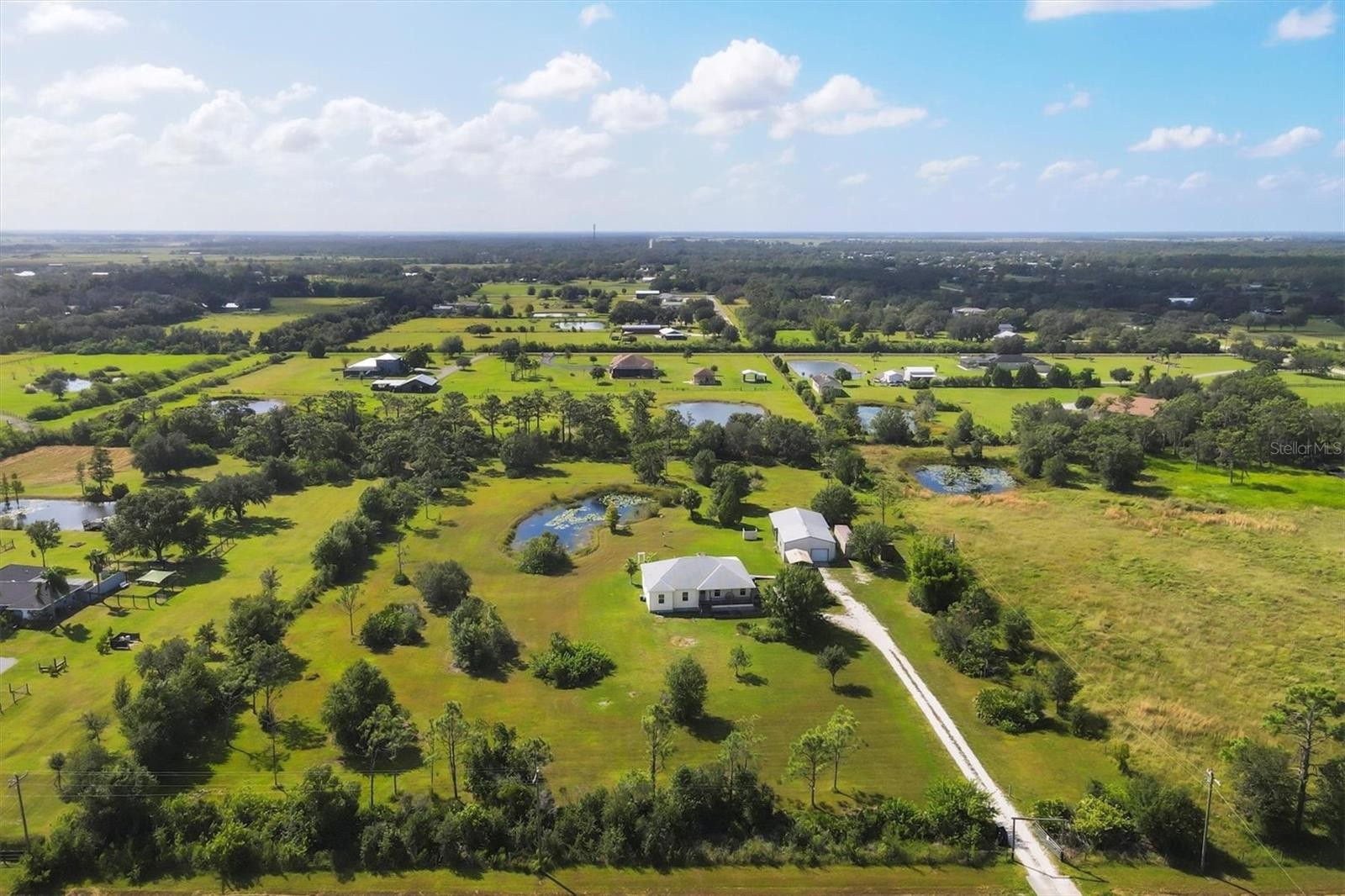 One or more photo(s) has been virtually staged. This is your opportunity to enjoy space, beauty, and freedom in beautiful and sought after Myakka City. This charming 3 bedroom and 2 bath home on 5 acres of picturesque land with a pond is ideal for those who crave space to breathe while still being within easy reach of Lakewood Ranch, University Parkway, Sarasota and Parrish. Whether you're dreaming of a peaceful homestead, hobby farm, or weekend retreat, this one checks all the boxes. The cozy home is full of charm and warmth, with an inviting layout that makes you feel right at home the moment you step inside. Built with care by the original owner, a professional wood floor installer, the home features custom touches on the wood floor with inlays and craftsmanship throughout. A new roof was installed in 2022. The stove is propane as is the hot water heater. Enjoy morning and evenings resting near the tranquil pond—ideal for relaxing, fishing, or simply enjoying nature. A Zoning allows for your livestock and pets. No deed restrictions. A standout feature is the large metal building/workshop—perfect for projects, storage, or even a small business setup. It measures 30' by 30' with an additional covered space for a stall for animals. This home has a 16 kw generator also. Whether you’re a hobbyist, mechanic, or need extra space, this building is a huge bonus! Located off of Verna Bethany Road in Myakka.