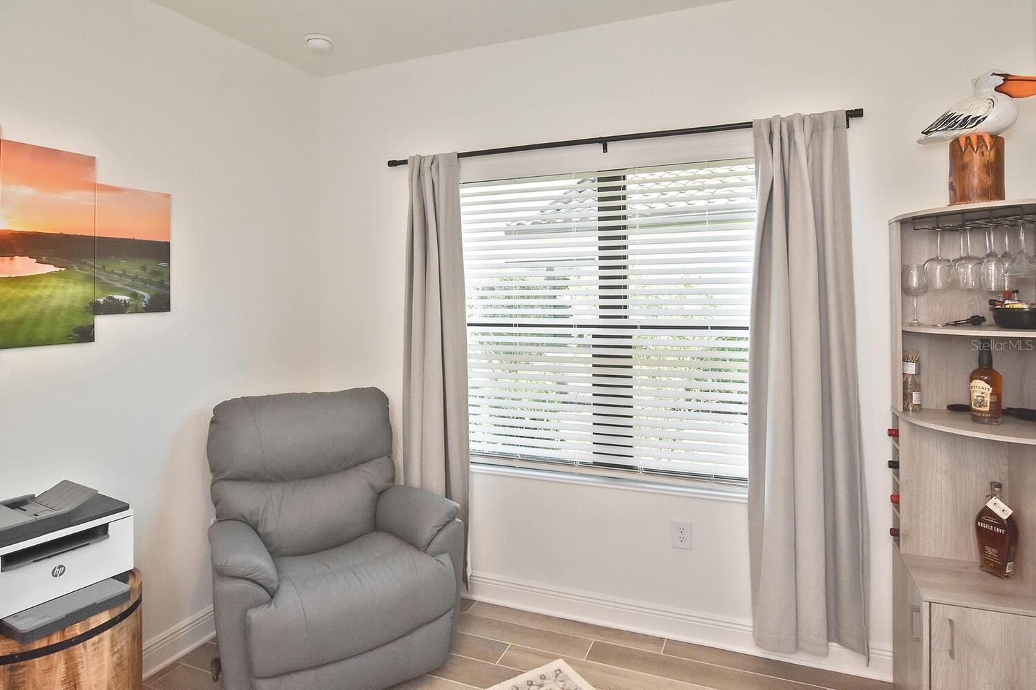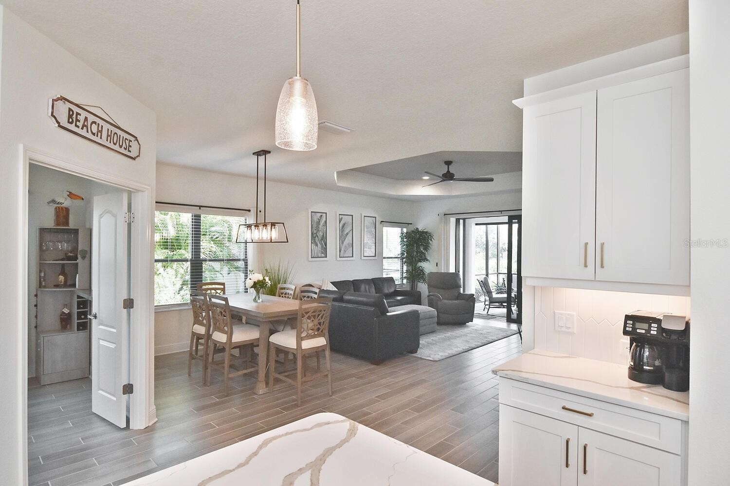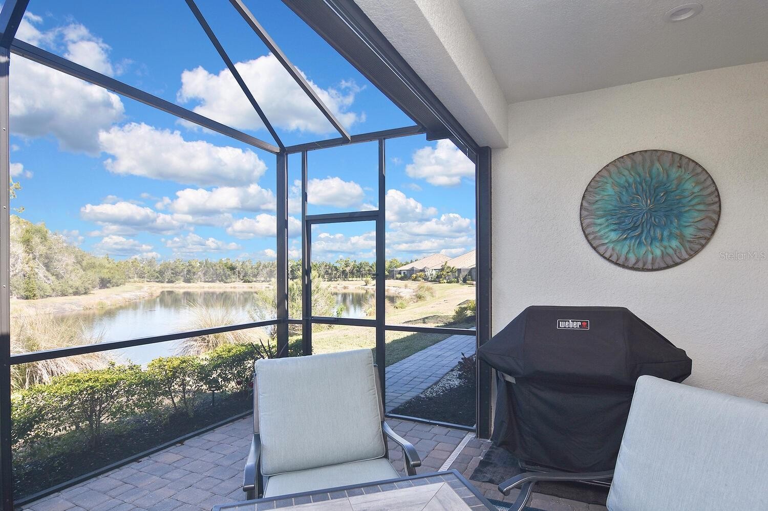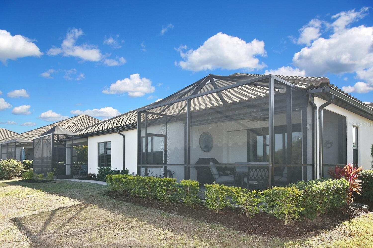 Welcome to this beautifully designed 3-bedroom + den, 2-bath villa with a 2-car garage, perfectly situated in a sought-after golf course community. The moment you enter, you?ll notice the expansive tile flooring that flows seamlessly throughout the main living areas, creating a bright and sophisticated atmosphere. The gourmet kitchen is a true showpiece, featuring: Soft-close cabinetry, Quartz countertops, Farmhouse sink, & Stainless-steel appliances The spacious primary suite offers comfort and privacy, while two additional bedrooms and a versatile den provide flexibility for guests, a home office, or hobby space. Step outside to your extended lanai, complete with storm-smart shades, where you can relax and enjoy tranquil views overlooking a quiet pond ? the perfect setting for relaxing. Additional highlights include: Laundry room with built-in cabinetry and utility sink. All impact windows and doors for peace of mind Located within a beautifully maintained golf course community, this villa combines luxury, comfort, and low-maintenance living in an exceptional setting.