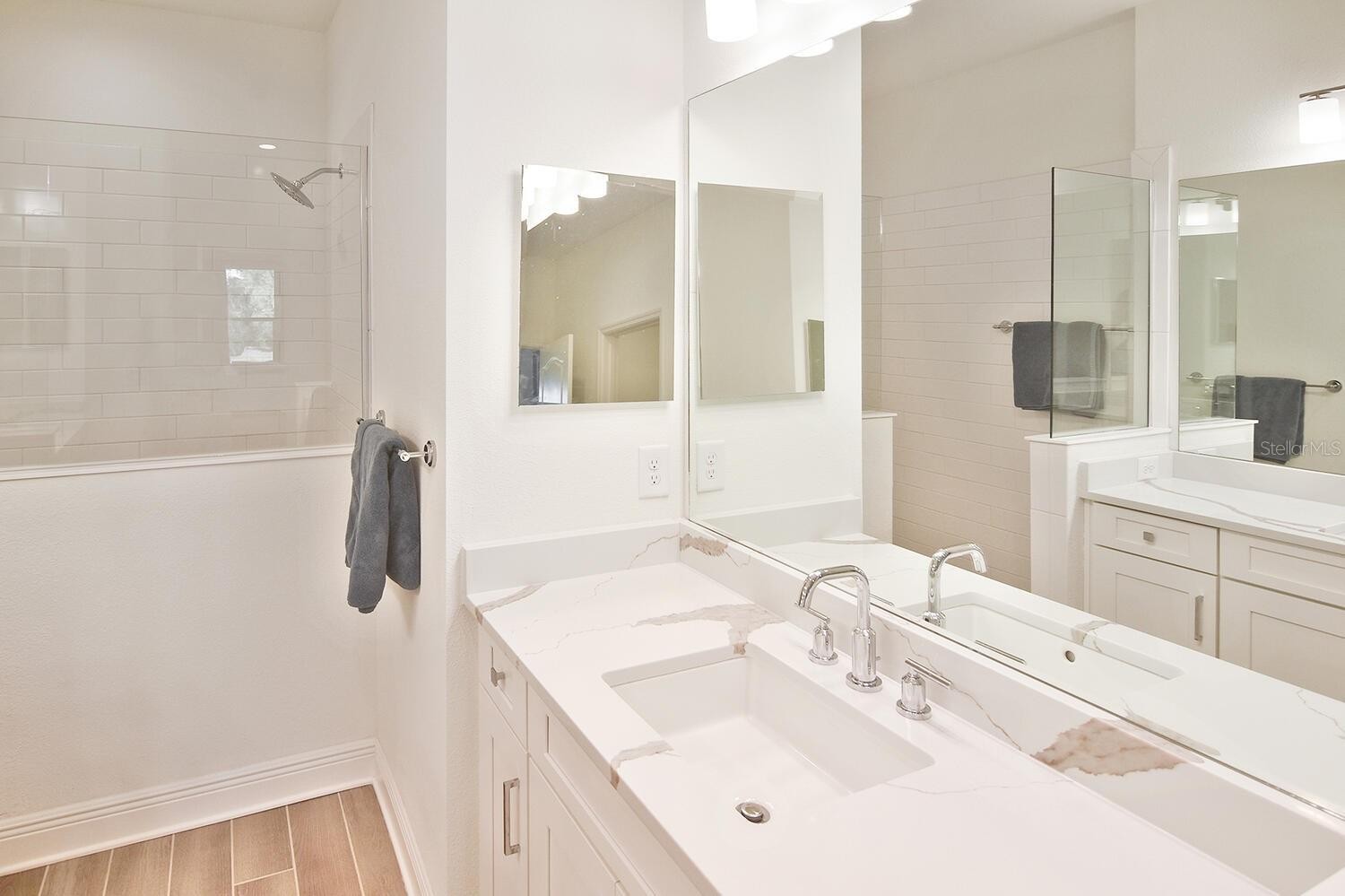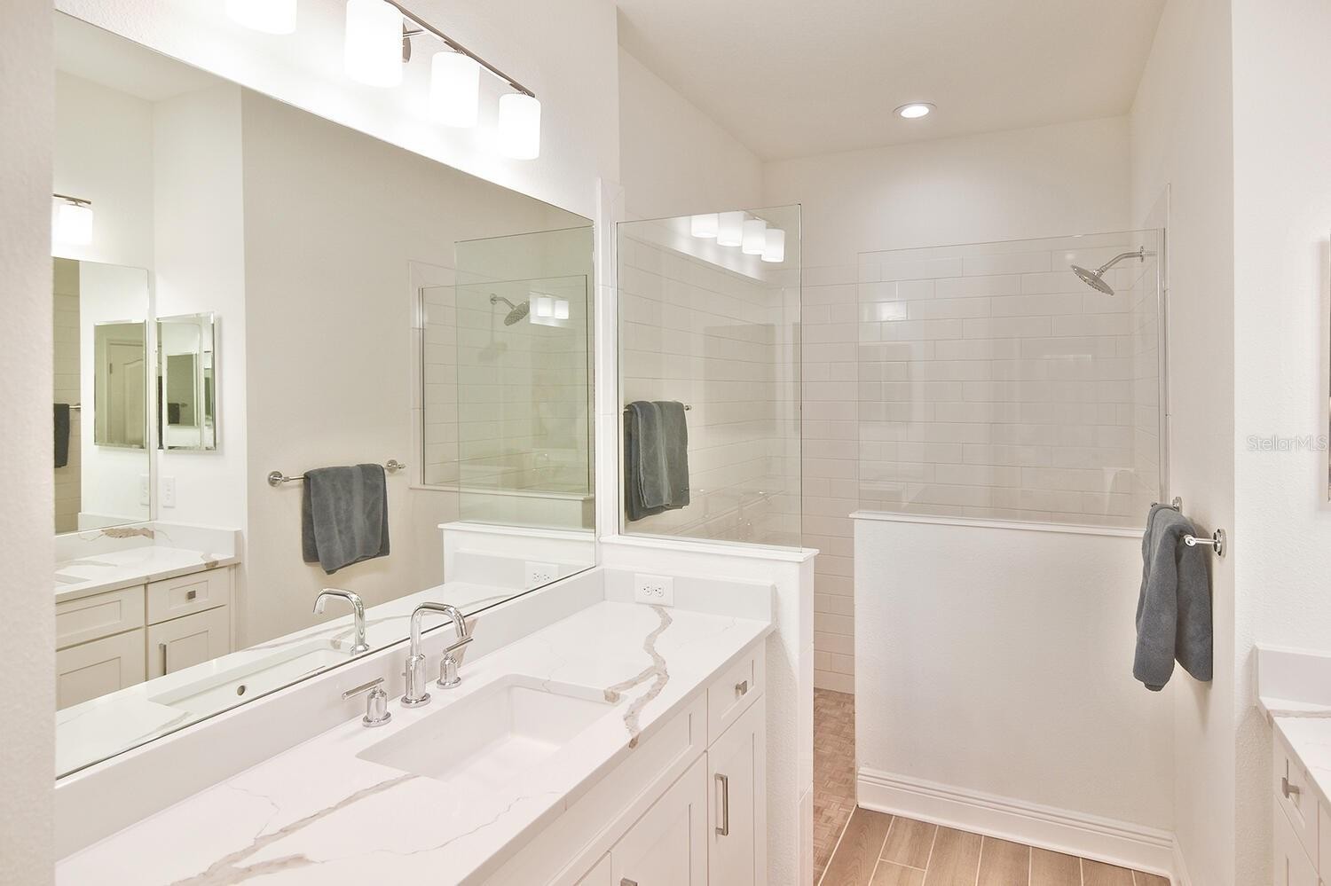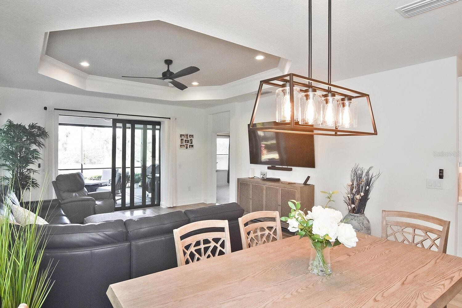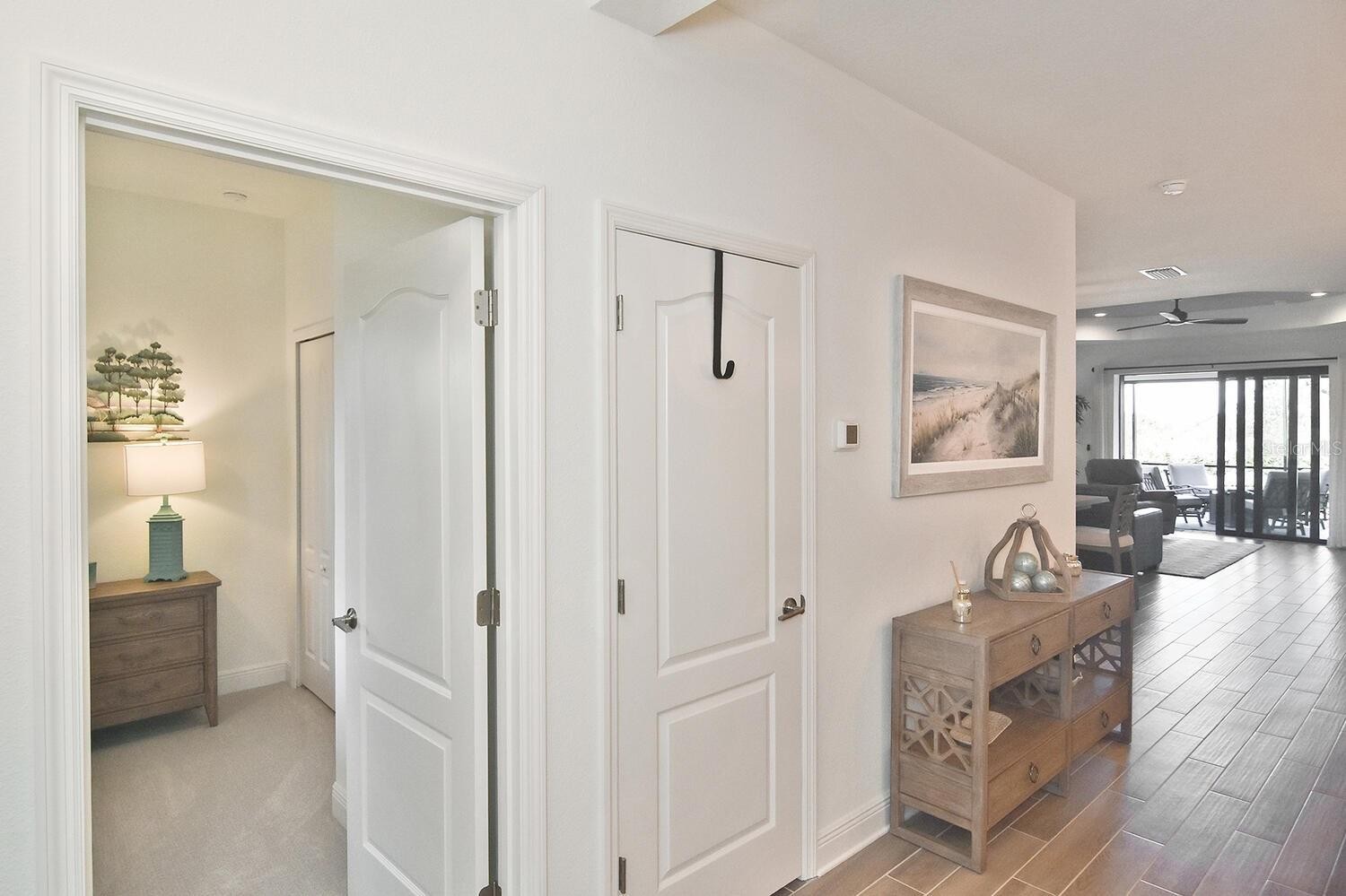 Welcome to this beautifully designed 3-bedroom + den, 2-bath villa with a 2-car garage, perfectly situated in a sought-after golf course community. The moment you enter, you?ll notice the expansive tile flooring that flows seamlessly throughout the main living areas, creating a bright and sophisticated atmosphere. The gourmet kitchen is a true showpiece, featuring: Soft-close cabinetry, Quartz countertops, Farmhouse sink, & Stainless-steel appliances The spacious primary suite offers comfort and privacy, while two additional bedrooms and a versatile den provide flexibility for guests, a home office, or hobby space. Step outside to your extended lanai, complete with storm-smart shades, where you can relax and enjoy tranquil views overlooking a quiet pond ? the perfect setting for relaxing. Additional highlights include: Laundry room with built-in cabinetry and utility sink. All impact windows and doors for peace of mind Located within a beautifully maintained golf course community, this villa combines luxury, comfort, and low-maintenance living in an exceptional setting.