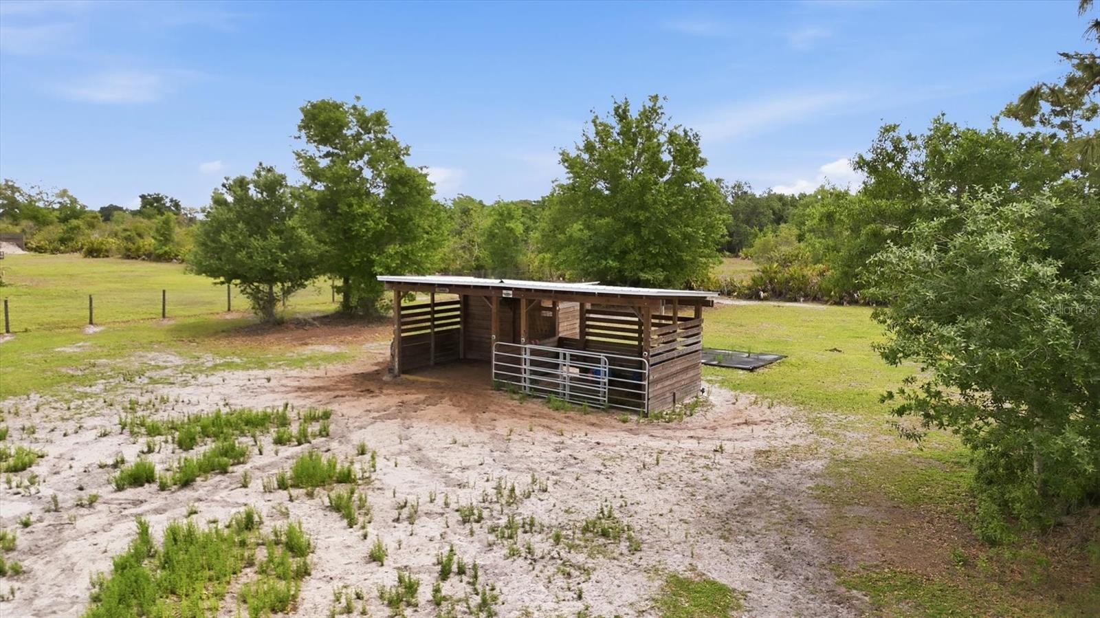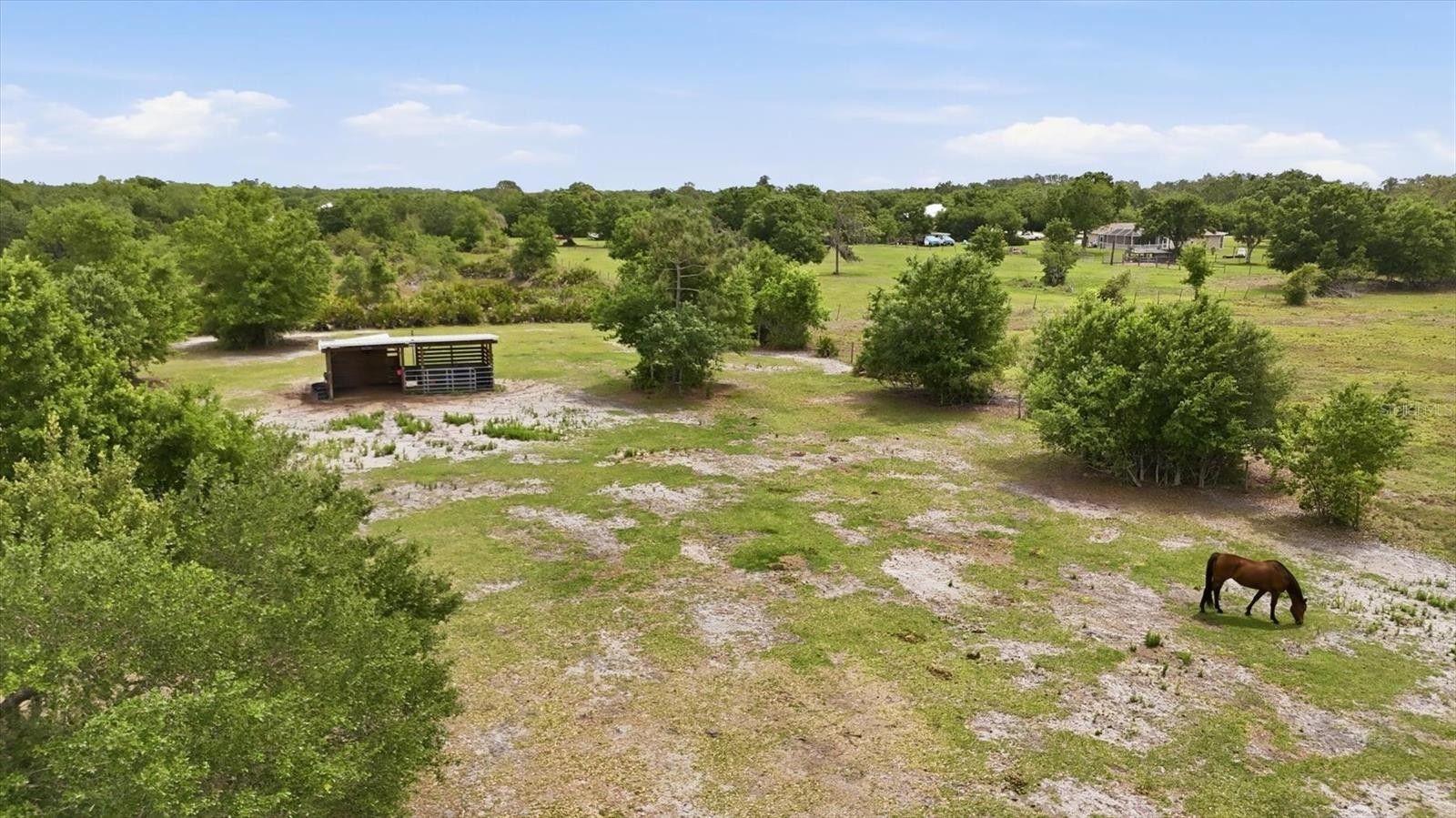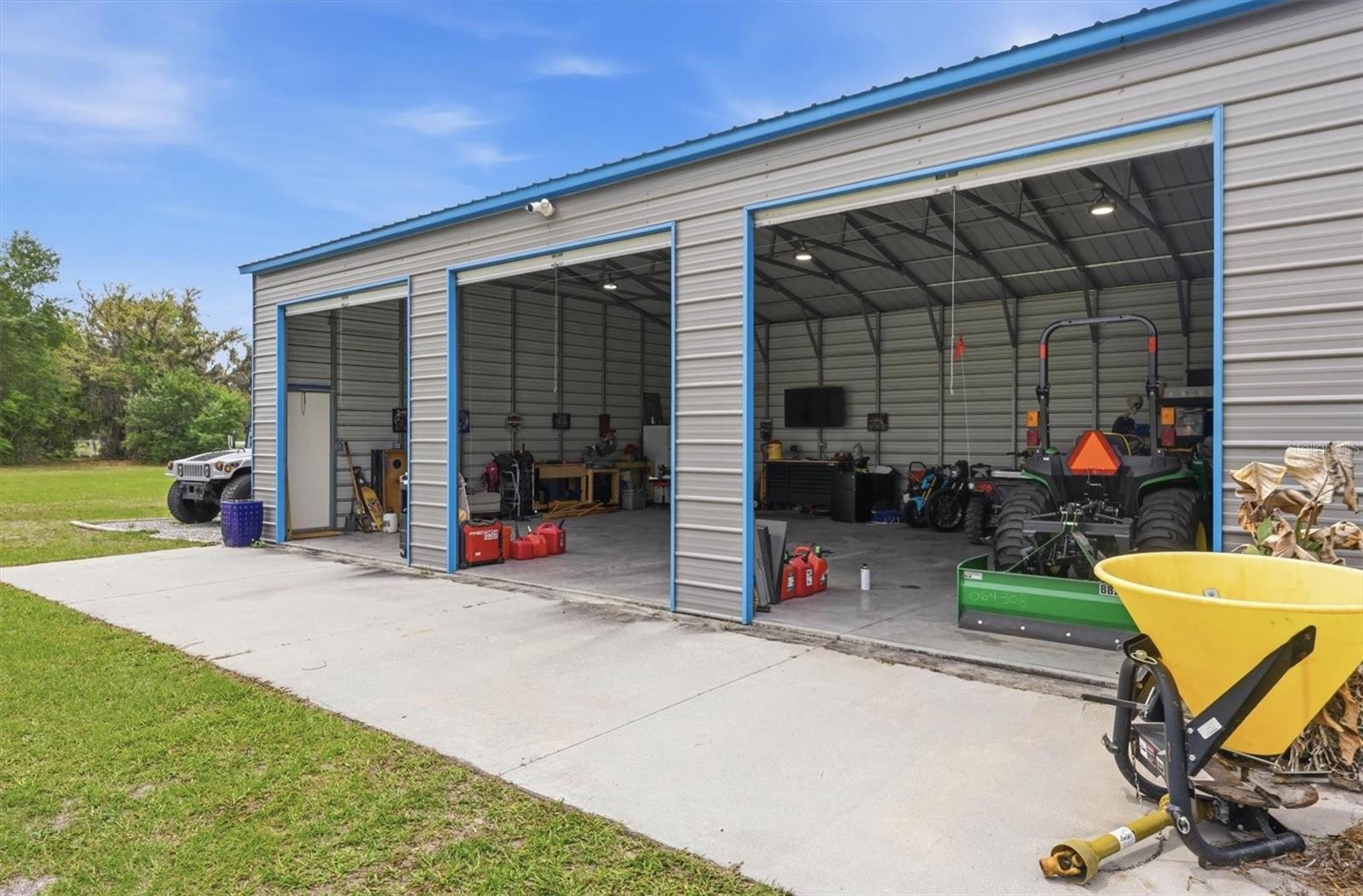Country living at its finest! Set on 5 private acres with a NEW ROOF (2025), NEW AC systems (2024 & 2025), a horse pasture, a 3-bay outbuilding, and NO HOA, this spacious 3-bedroom, 2.5-bath home opens the door to a lifestyle that feels bigger, more free, and far more exciting than the ordinary. Step inside to a foyer framed by a formal dining room and a separate den. The dining room is ready for holiday dinners, hosting friends, and everyday meals, while the den offers a flexible space that easily works as an office, playroom, guest room, or a dedicated spot for hobbies and projects. Just beyond, the main living room centers around a double-sided fireplace and sliding glass doors to the lanai, creating a space where the fireplace becomes the focal point for conversations or winding down at the end of the day. The kitchen sits at the heart, featuring newer cabinetry, ample countertops, stainless steel appliances, a pantry, and a wraparound breakfast bar that gives you plenty of room to enjoy a snack, do homework, or prep food. The casual dining nook sits beside bright windows, perfect for your morning coffee or a quick lunch. Beyond, the second living area becomes an easy place for watching sports, playing board games, or catching up at the end of the day. The bonus room adds a completely different kind of space, complete with a built-in bar and cabinetry that naturally sets it up for entertaining—add a pool table, poker table, lounge seating, or turn it into a theater room. The primary bedroom is positioned privately, creating a retreat with direct access to the lanai and the added warmth of the double-sided fireplace. Two closets—including a large walk-in—provide ample storage, while the COMPLETELY UPDATED en suite bathroom features dual vanities, a soaking tub, and a separate glass-enclosed shower, creating a space that feels elevated and well-appointed every day. Two additional bedrooms and a full bathroom are located on the opposite side of the home, forming their own wing with space for kids or guests. The laundry room is set up for convenience, with a utility sink, cabinetry, and counter space. The home also includes a 50-amp transfer switch for an exterior generator, NEW exterior paint, and NEW aerators on the well, adding to both function and long-term reliability. The oversized screened lanai stretches across the back of the home, giving you a true outdoor extension with space for dining tables, lounging, grilling, and a hot tub that turns time at home into something you truly look forward to. From there, the property opens up into 5 acres that invite you to use every part of it—spend time at your own private shooting range, ride 4-wheelers, have a firepit night with friends, cast a line from the dock at the pond, or design your own setup with a pool, slide, or outdoor kitchen. For horse enthusiasts, the groundwork is already in place with approximately one acre fenced pasture, 2 horse stalls and a tack shed, and well water to support it all. The 3-bay outbuilding adds serious capability with 150-amp service, a 30-amp RV hookup outside, and well water—ideal for equipment, storage, workshop space, or keeping everything from trailers to tools organized and ready to go. This is a RARE opportunity to own 5 sprawling acres with NO HOA restrictions—an exceptional property that gives you the space, privacy, and complete freedom to live without limits, to shape the land around your lifestyle, and to create something truly your own.
