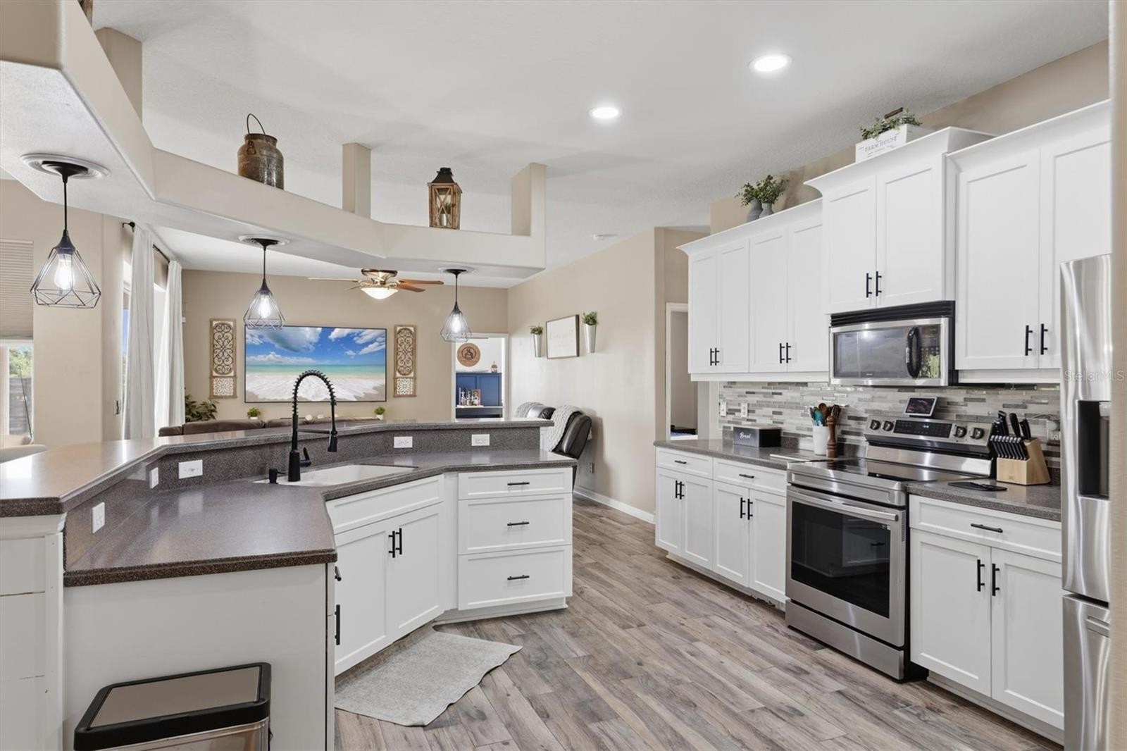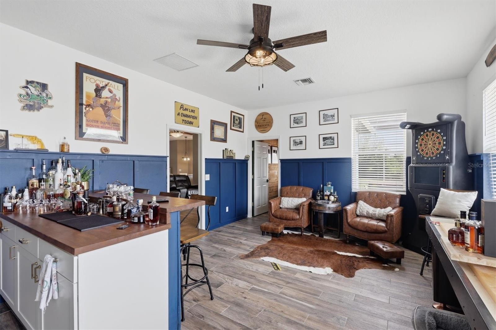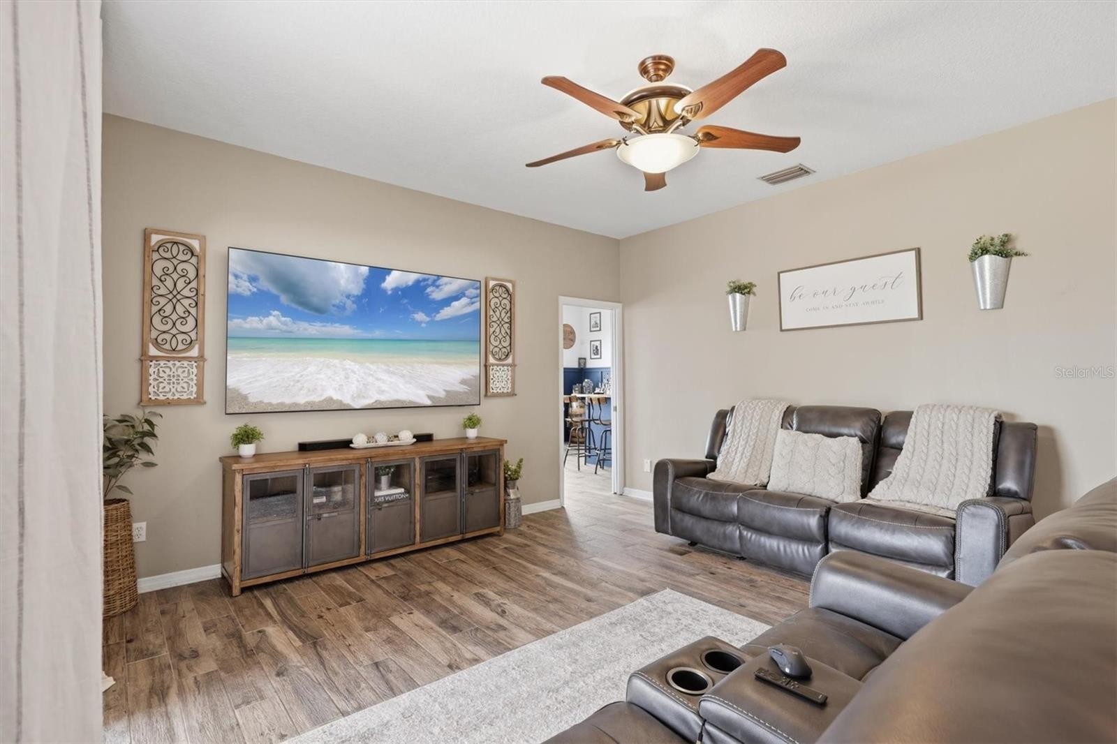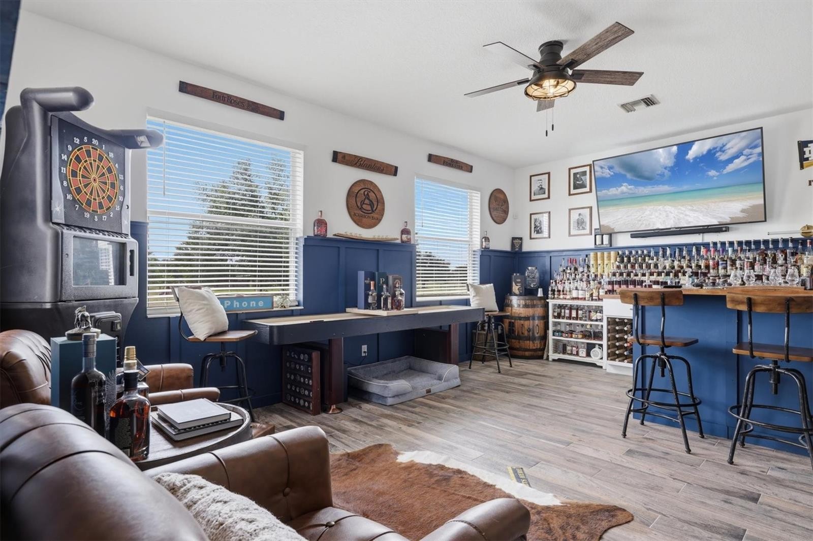 Country living at its finest! Set on 5 private acres with a NEW ROOF (2025), NEW AC systems (2024 & 2025), a horse pasture, a 3-bay outbuilding, and NO HOA, this spacious 3-bedroom, 2.5-bath home opens the door to a lifestyle that feels bigger, more free, and far more exciting than the ordinary. Step inside to a foyer framed by a formal dining room and a separate den. The dining room is ready for holiday dinners, hosting friends, and everyday meals, while the den offers a flexible space that easily works as an office, playroom, guest room, or a dedicated spot for hobbies and projects. Just beyond, the main living room centers around a double-sided fireplace and sliding glass doors to the lanai, creating a space where the fireplace becomes the focal point for conversations or winding down at the end of the day. The kitchen sits at the heart, featuring newer cabinetry, ample countertops, stainless steel appliances, a pantry, and a wraparound breakfast bar that gives you plenty of room to enjoy a snack, do homework, or prep food. The casual dining nook sits beside bright windows, perfect for your morning coffee or a quick lunch. Beyond, the second living area becomes an easy place for watching sports, playing board games, or catching up at the end of the day. The bonus room adds a completely different kind of space, complete with a built-in bar and cabinetry that naturally sets it up for entertaining—add a pool table, poker table, lounge seating, or turn it into a theater room. The primary bedroom is positioned privately, creating a retreat with direct access to the lanai and the added warmth of the double-sided fireplace. Two closets—including a large walk-in—provide ample storage, while the COMPLETELY UPDATED en suite bathroom features dual vanities, a soaking tub, and a separate glass-enclosed shower, creating a space that feels elevated and well-appointed every day. Two additional bedrooms and a full bathroom are located on the opposite side of the home, forming their own wing with space for kids or guests. The laundry room is set up for convenience, with a utility sink, cabinetry, and counter space. The home also includes a 50-amp transfer switch for an exterior generator, NEW exterior paint, and NEW aerators on the well, adding to both function and long-term reliability. The oversized screened lanai stretches across the back of the home, giving you a true outdoor extension with space for dining tables, lounging, grilling, and a hot tub that turns time at home into something you truly look forward to. From there, the property opens up into 5 acres that invite you to use every part of it—spend time at your own private shooting range, ride 4-wheelers, have a firepit night with friends, cast a line from the dock at the pond, or design your own setup with a pool, slide, or outdoor kitchen. For horse enthusiasts, the groundwork is already in place with approximately one acre fenced pasture, 2 horse stalls and a tack shed, and well water to support it all. The 3-bay outbuilding adds serious capability with 150-amp service, a 30-amp RV hookup outside, and well water—ideal for equipment, storage, workshop space, or keeping everything from trailers to tools organized and ready to go. This is a RARE opportunity to own 5 sprawling acres with NO HOA restrictions—an exceptional property that gives you the space, privacy, and complete freedom to live without limits, to shape the land around your lifestyle, and to create something truly your own.