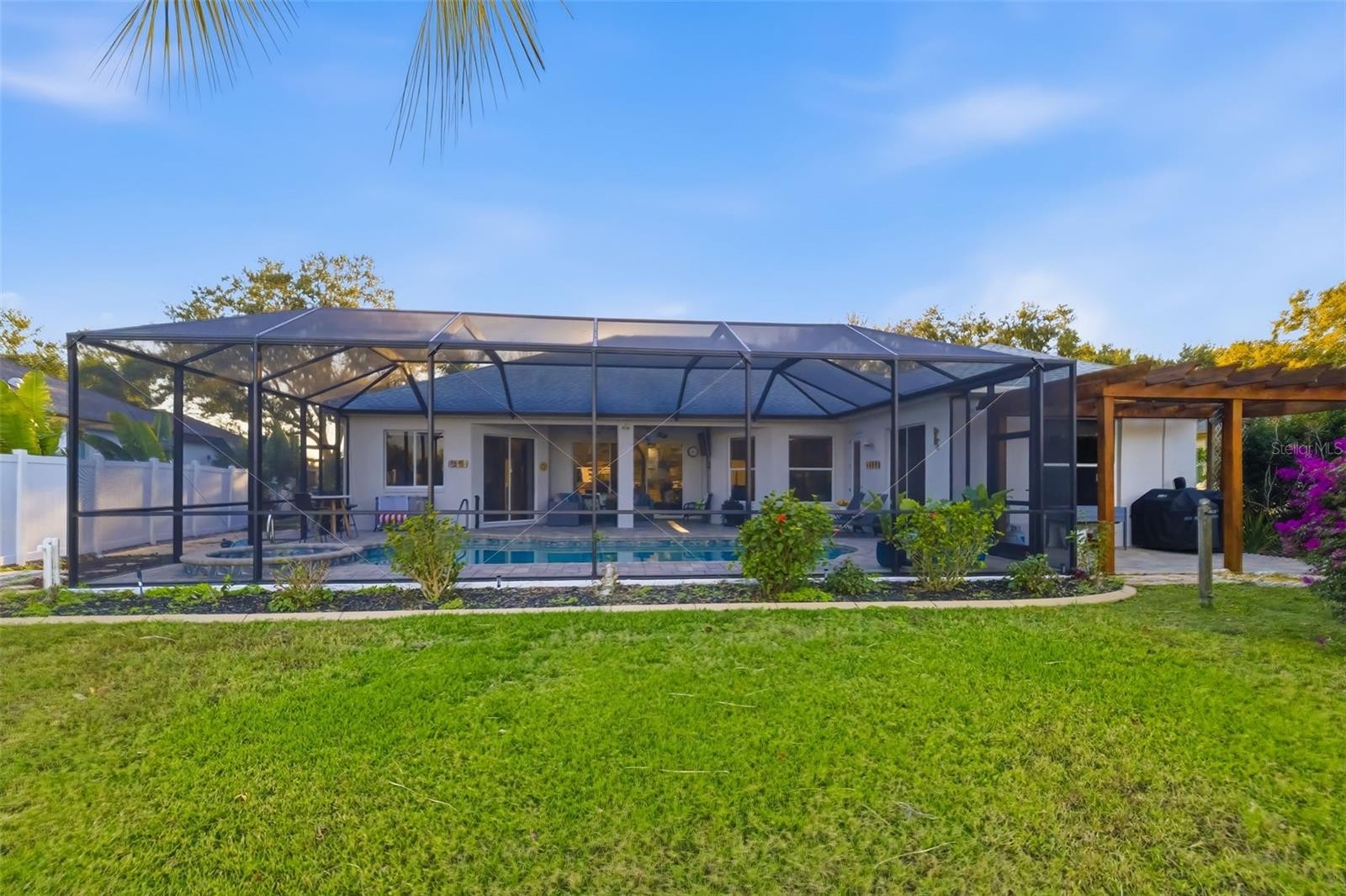 Welcome home to 2730 River Woods Drive in the peaceful, deed-restricted community of River Woods in Parrish, offering a blend of privacy, spacious living, abundant wildlife, (and no CDD), while being able to enjoy all Parrish has to offer! In a quiet neighborhood surrounded by large majestic trees and lush Florida landscaping, the property benefits from generous spacing between homes, creating a sense of tranquility without feeling isolated. You will also notice the water views that are enjoyed from the office, kitchen, living area and pool in backyard. The exterior has been freshly repainted with a neutral palette and backyard pergola has also been re-stained, offering the home a crisp, updated appearance and noticeable curb appeal. This ideally complements the home’s thoughtful design, beautiful updates and open floor plan. You will notice updated appliances, countertops, neutral wood tones for cabinetry, and of course the pool and heated spa to relax in overlooking the pond! In a medium-sized community of just 259 homes, complete with scenic ponds, walking paths and easy access to nearby amenities, 2730 River Woods Drive delivers the ideal Florida lifestyle. Whether you’re seeking a serene retreat or a spacious family haven, this home checks all the boxes for privacy and comfort.