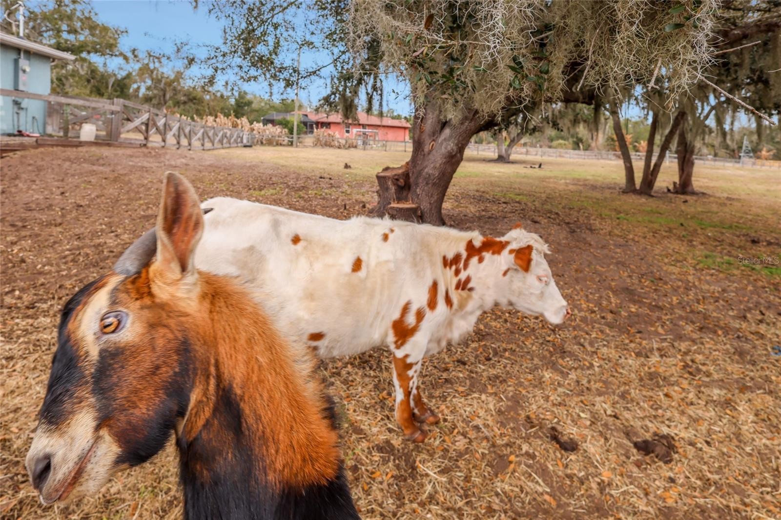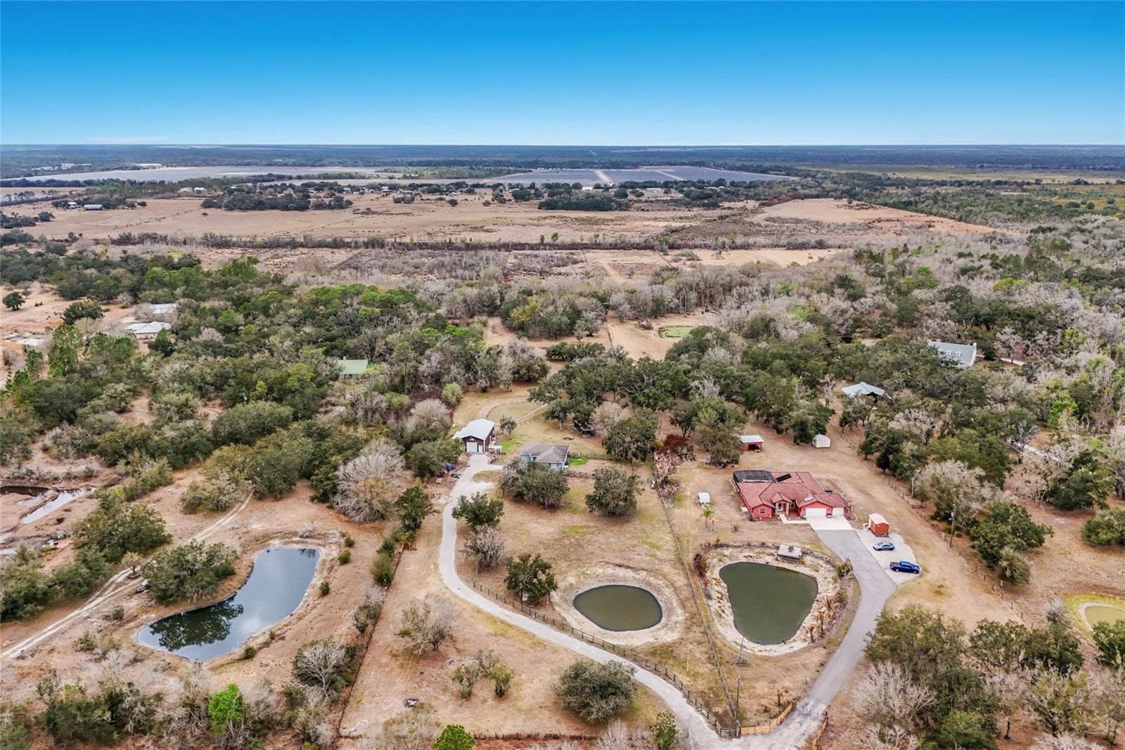 Welcome to an exceptional private ranch estate in the heart of Myakka City, Florida. Nestled on 9.91 pristine acres, this beautifully maintained country retreat delivers the perfect blend of refined rural living, modern upgrades, with new interior paint, light fixtures, new appliances such as garbage disposal, water filter softener dishwasher and smart washer/dryer combo and true homestead potential all with NO HOA and NO CDD. This thoughtfully designed single family residence offers 3 bedrooms and 2 bathrooms with a bright, open concept floor plan ideal for both everyday comfort and effortless entertaining. Impact resistant windows and doors provide security and peace of mind, while recent interior updates enhance the home’s clean, modern appeal. The attached garage features a dedicated Tesla charging hookup, adding a forward thinking convenience for today’s buyer. Step outside and experience the true power of this property. The impressive 24 x 48 multi purpose barn with integrated 24 x 24 workshop is fully equipped with water, electric, spray foam insulation, two air conditioners, and a charming loft accessed by spiral staircase. Covered areas provide ideal space for RV parking with 30-amp service, equipment storage, or expanded ranch operations. Designed with the equestrian and hobby farmer in mind, the property features fenced pastures, 3 animal buildings, mature trees, and wide-open grazing areas. Farm animals are also available for purchase, creating a rare turnkey opportunity for buyers seeking an immediate ranch or homestead lifestyle. Nature lovers will appreciate Johnson Creek bordering the rear of the property and the close proximity to Duette Preserve’s 21,000+ acres of riding, hiking, and wildlife exploration. Two ponds, established garden beds with irrigation, and producing fruit trees further elevate the property’s self sufficient appeal. Whether you envision a private family compound, working ranch, equestrian estate, or peaceful country escape, the possibilities here are truly endless.