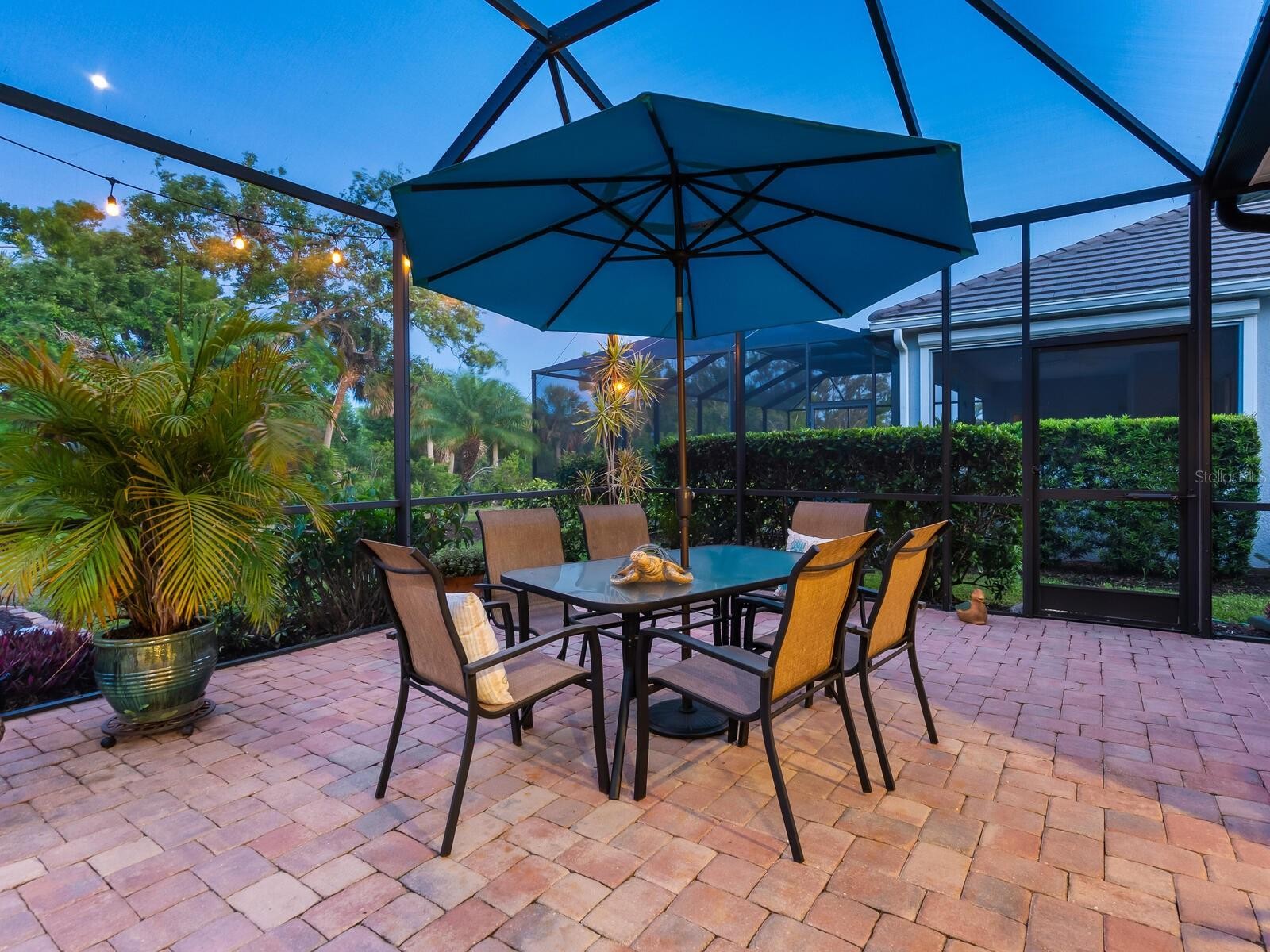 This inviting home has great detail and features three bedrooms, two and a half baths, den, formal dining room, great room and eat-in kitchen. The great room has vanishing sliders that open to the large extended paver lanai with private views of the green space and preserve. Crown and chair moldings, columns, tray ceiling, oversized ceramic tile, and hardwood floors are just a few of this home's upgrades. The kitchen has natural gas cooking, stainless steel appliances and granite with breakfast bar. The primary suite is welcoming and has two walk-in closets. Get in your golf cart and head to the country club for lunch or dinner. Golf, tennis, pickleball, fitness and soon Boca Royale’s gates will open in Wellen Park for dining, shopping and the ballpark! No, I haven’t forgotten your best friend, there are large and small dog parks.
