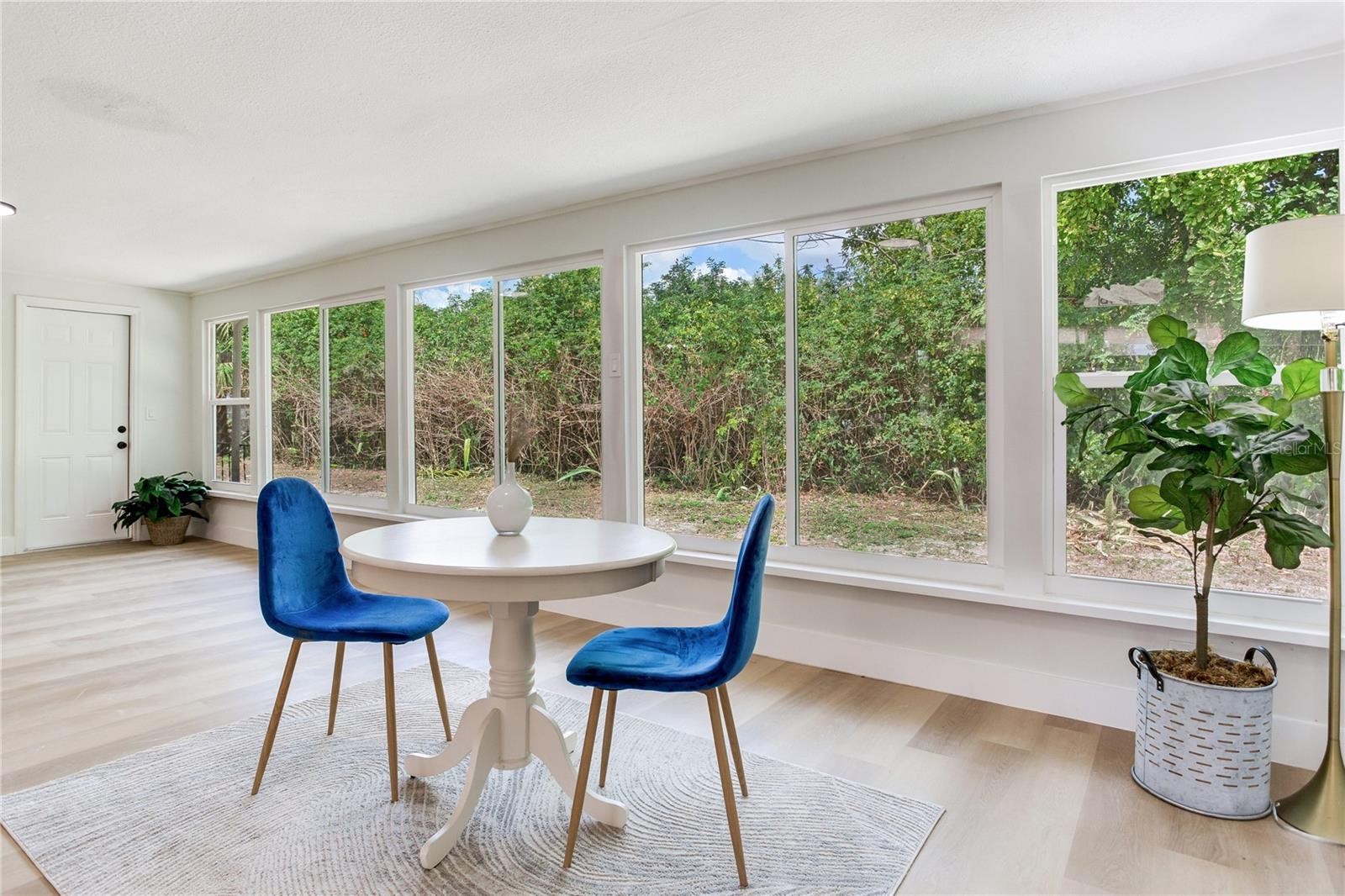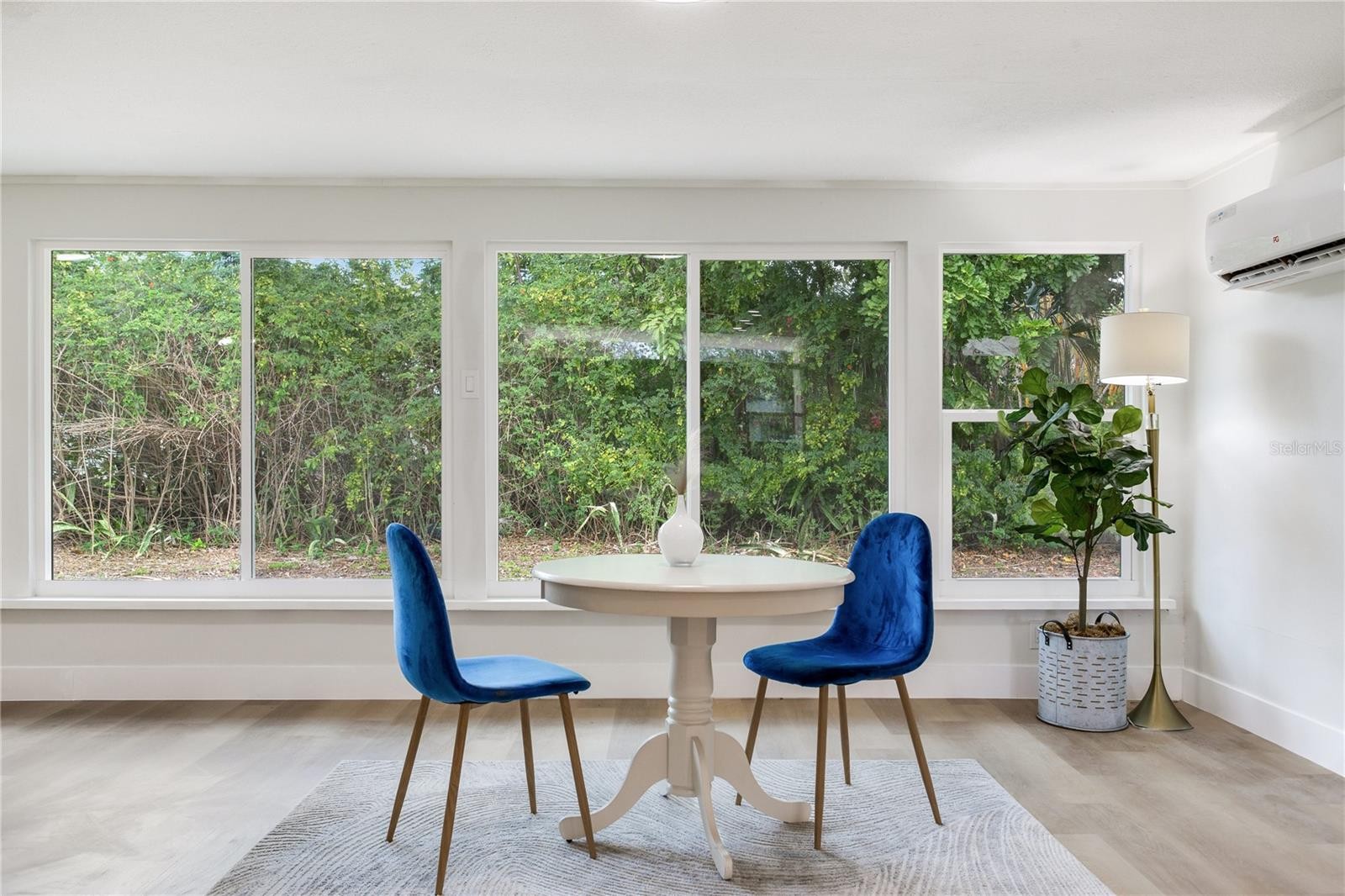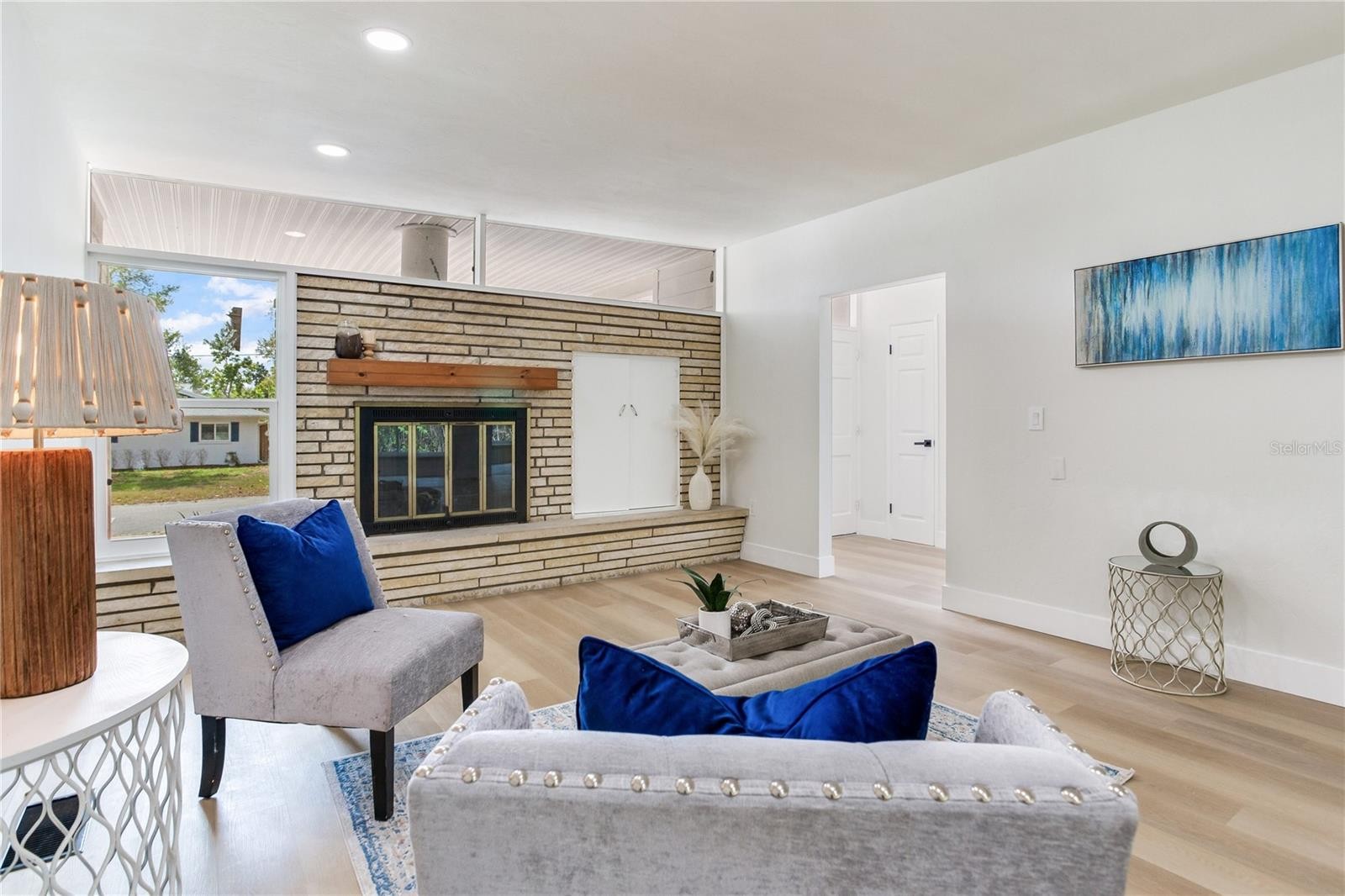 Welcome to 2753 Valencia Drive, a beautifully reimagined 2-bedroom, 2-bath residence offering 1,541 square feet of light-filled living in the heart of Sarasota. From the moment you arrive, the home’s clean mid-century lines, fresh exterior finishes, and inviting covered entry set the tone for what’s inside. Step through the front door into a bright, open living space where wide-plank flooring, recessed lighting, and a soft neutral palette create a warm yet modern feel. The spacious living room flows effortlessly into a secondary sitting area centered around a charming brick fireplace perfect for relaxing evenings or entertaining guests. The fully renovated kitchen is both stylish and functional, featuring crisp white shaker cabinetry, quartz countertops, stainless steel appliances, designer backsplash, and elegant gold hardware accents. Thoughtful details and ample storage make this space as practical as it is beautiful. Just beyond, a sun-drenched dining area is surrounded by large windows that bring the outdoors in, creating the perfect setting for morning coffee or intimate dinners while overlooking the private backyard. Both bathrooms have been tastefully updated with modern vanities, upgraded fixtures, and clean, timeless finishes. The bedrooms are generously sized, offering comfort and flexibility for guests, a home office, or everyday living. Step outside to a spacious backyard with room to create your own outdoor oasis whether it’s a pool, garden, or entertaining space. The covered patio adds even more versatility for year-round enjoyment. Ideally located in one of Sarasota’s most desirable areas, this home places you just minutes from downtown Sarasota, Siesta Key Beach, shopping, dining, and top-rated schools. This is a rare opportunity to own a move-in-ready home that perfectly blends modern updates with timeless charm your Florida lifestyle starts here.