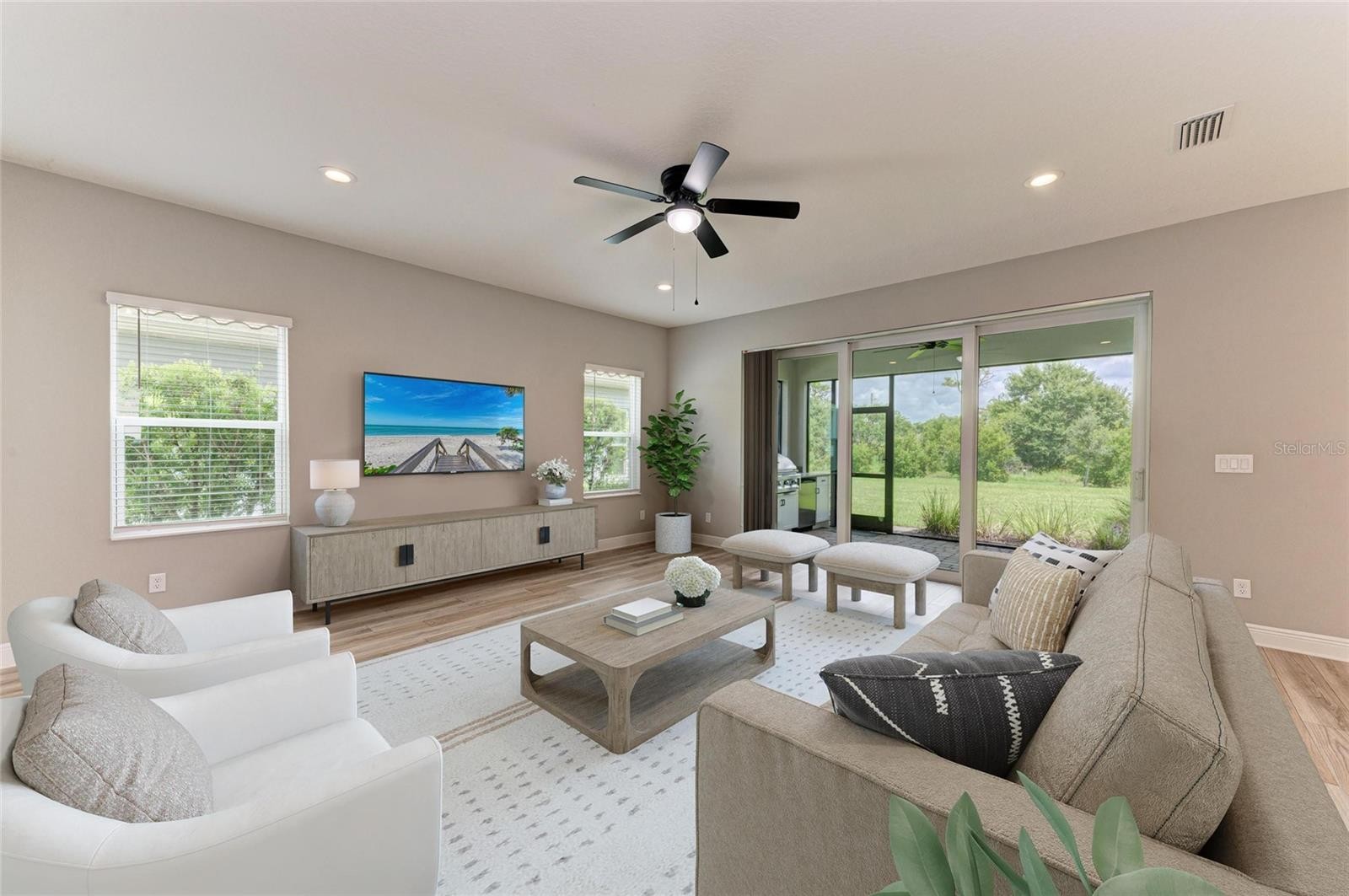 One or more photo(s) has been virtually staged. Nestled in the amenity-packed community of Windward in Lakewood Ranch, this large 2-story 2022 home offers 4 bedrooms, 3.5 bathrooms, a private study/den, a spacious bonus room and a 2 car garage. The layout spans 3,097sqft of open concept living with pocket sliders overlooking a peaceful preserve view. The gourmet kitchen is a chef's dream with a spacious island, ample cabinetry, stainless steel appliances, a gas stove, and an expanded pantry room. The MAIN FLOOR-PRIMARY SUITE is a true retreat, complete with a luxurious bath with dual vanities, oversized shower and large walk-in closet. Upstairs, you will find a flexible 18- by- 18 BONUS ROOM, ideal for a game room or media space. Guest can enjoy the second bedroom with en-suite bath, while the third and forth bedrooms share a full bath on the opposite side of the house. Whether you are working from home in the dedicated office/den, relaxing in the oversized bonus room, or unwinding on the covered lanai with OUTDOOR KITCHEN, this home is designed to elevate your everyday lifestyle along with IMPACT GLASS on the entire home. There is ample space to add a generous sized pool on your private preserve view. Windward offers a vibrant, Resort-style lifestyle , including 2 resort-style pools, fitness center, a 9,600-square foot clubhouse, playground, tennis courts, 8 pickleball courts, dog parks, community events, and miles of walking trails. HOA fee includes access to LAWN MAINTENACE and all amenities! Enjoy easy access to Waterside Place's lively Main Street, top-rated schools, I-75, UTC mall, downtown Sarasota, restaurants, and world-renowned Gulf Coast beaches. This home is move-in ready with no need to wait for new construction. It offers the perfect balance of a great floor plan, location, and lifestyle. CDD fee is included in the total tax amount. Lakewood Ranch/Sarasota offers a wide variety of school selection from public, charter, or private schools.