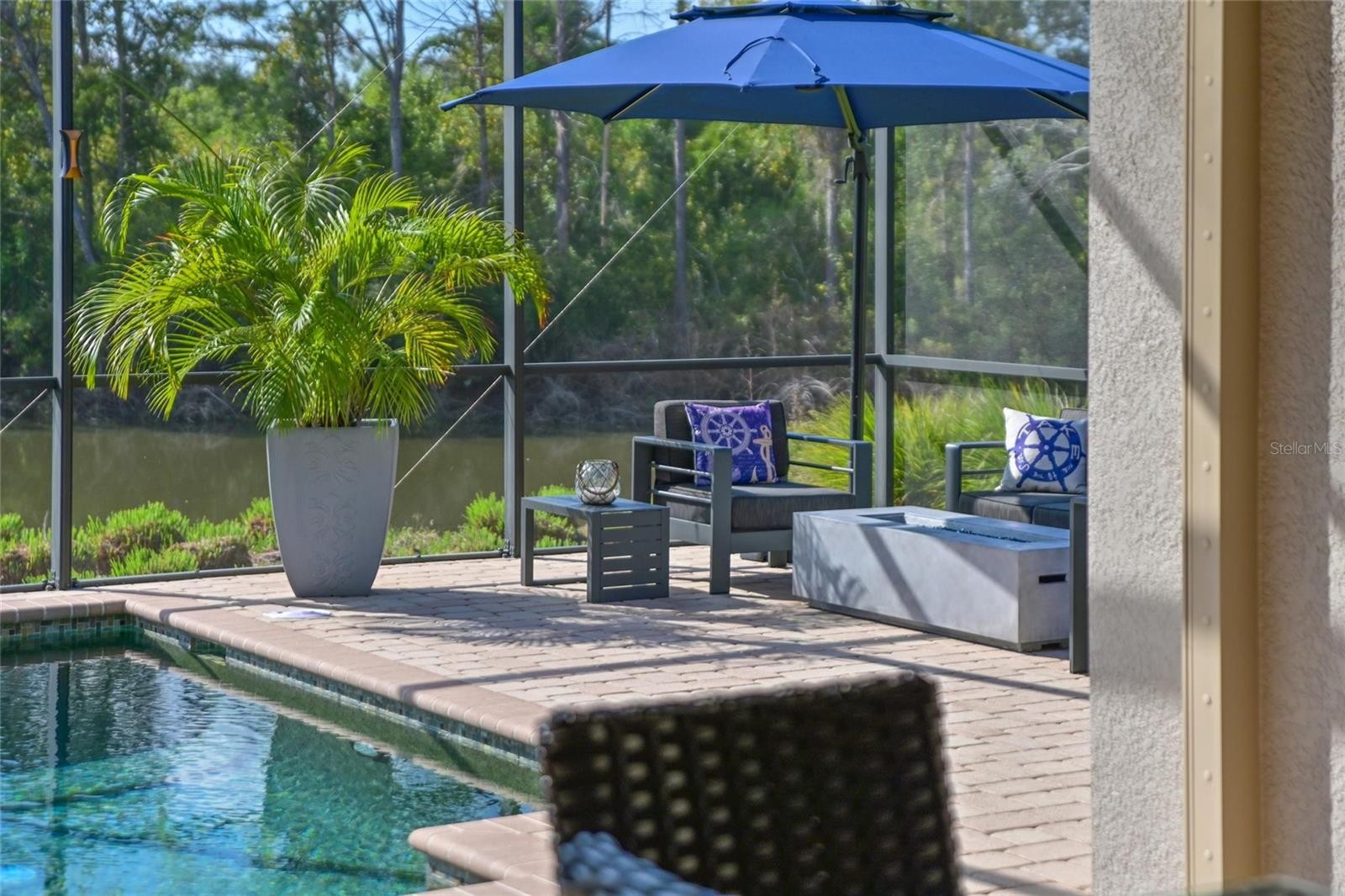 Impeccably curated home embodies the essence of elevated living. Set within a peaceful lakefront setting, this meticulously maintained property reveals exquisite detail, and a lifestyle defined by comfort. Every space has been thoughtfully upgraded with luxury finishes and modern comforts. Lavish lighting, digital-display lighted mirrors, rich luxury flooring, and exquisite bath tile are just a few of the refined details that set this home apart. With a new roof, new impact-glass windows, enhanced landscaping, and a resort-style lanai and pool, this ranch-style home delivers exceptional value and lifestyle. Lighted landscape and striking curb appeal welcome you to this desirable great room plan offering 3 bedrooms, 3.5 baths, and a dedicated study. The screened entry showcases upgraded tile and a premium front door, creating an impressive first impression. Inside, the foyer glows beneath a statement chandelier, drawing your eye straight through the home to the sparkling pool and peaceful lake view. The spacious great room features premium flooring and stone-accented niche insets for added architectural detail. High-end designer fans and lighting enhance every room. The chef’s kitchen is a showstopper anchored with a large center island, stunning countertops, cabinetry with crown molding, a walk-in pantry, and new stainless-steel appliances. Casual seating at the island and a more formal dining area—make entertaining effortless. Whether hosting intimate dinners or lively gatherings, this space invites both creativity and connection. Triple sliders open the entire space to the lanai for seamless indoor-outdoor living. The dedicated study offers double doors, engineered wood floors, and elegant lighting—perfect for working from home. Step outside to your private resort. The heated saltwater pool and spa invite hours of relaxation, surrounded by ample space for lounging and entertaining. A convenient lanai half-bath is ideal for pool days, and remote-controlled hurricane protection adds peace of mind. The oversized primary suite boasts luxury flooring, direct access to the pool, dual walk-in closets with built-ins and motion lighting, and a truly spectacular bath. Enjoy floor-to-ceiling shower tile with seamless glass, a floating vanity with dual sinks, designer tile flooring, and abundant storage including a full linen closet. Two additional bedrooms each feature their own baths with floor-to-ceiling designer tile—perfect for guests in this thoughtful split plan. The oversized laundry room offers extra storage and includes the washer and dryer. Additional premium features include: water softener, security system, AC ultraviolet light, app-controlled pool and spa, remote-controlled lanai shutters, and more. With low HOA fees, no CDD, and an ideal location—just a short walk to the playground, 10–15 minutes to a boat launch, and close to dining, shopping, and top-rated schools—this home offers luxury living and exceptional value.