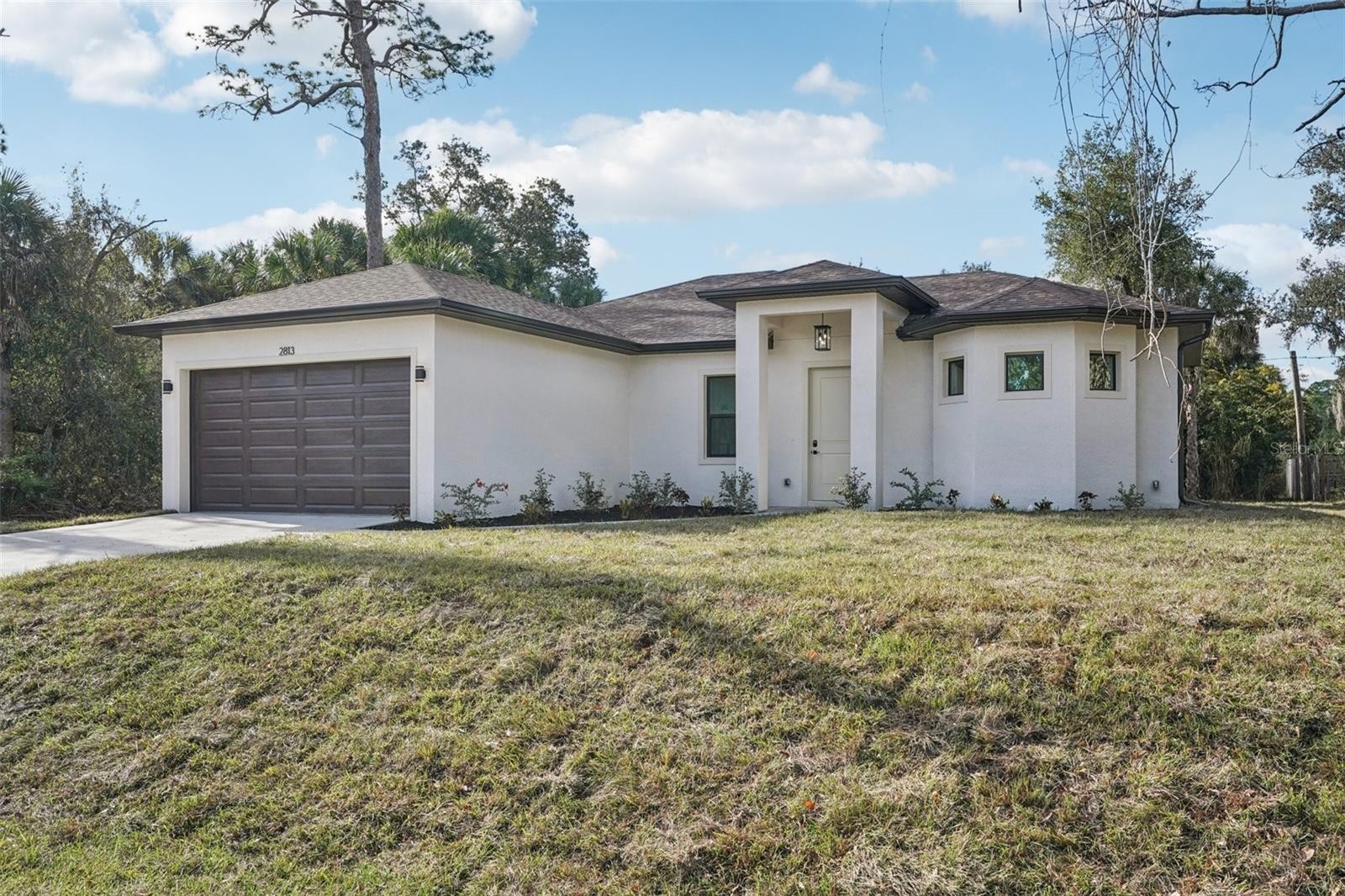 One or more photo(s) has been virtually staged. One or more photo(s) has been digitally altered. Move-in ready! CITY WATER. Stunning new construction, offering the perfect blend of modern design, luxury finishes, and spacious living—all nestled on a 10,000 sq. ft. lot in the highly desirable city of North Port. This beautifully crafted home features 1,470 square feet of living space (2,124 sq. ft. under roof), with 3 bedrooms, 2 bathrooms, and a floor plan designed for both comfort and style. The bedroom, dining room, and family room add a distinctive architectural touch. Large, high-end, impact windows, with energy efficient low E glass. flood the home with natural light and offer exceptional energy efficiency. The open-concept living area provides generous room for dining, relaxing, and entertaining. The gourmet kitchen is equipped with stainless steel appliances, quartz countertops, an oversized island with breakfast bar, and upgraded soft-close cabinetry with crown molding—perfect for any cooking enthusiast. The luxurious master suite includes dual walk-in closets and a spa-like bathroom with his-and-hers vanities and an oversized tiled walk-in shower. Additional interior highlights include 8-foot interior doors, sliding glass doors, designer ceiling fans and chandeliers, abundant closet shelving, and high-end luxury vinyl tile flooring throughout. Exterior upgrades include a paver driveway, footpath, and entryway, full front gutters, and a Wi-Fi–enabled smart garage door opener. Located in the beautiful area of North Port, this home offers convenient access to top-tier water recreation, local amenities, and the finest beaches—making it an ideal retreat for those seeking both lifestyle and value. This move-in-ready home combines luxury, efficiency, and a modern layout in a premier Southwest Florida location. Don’t miss this opportunity!