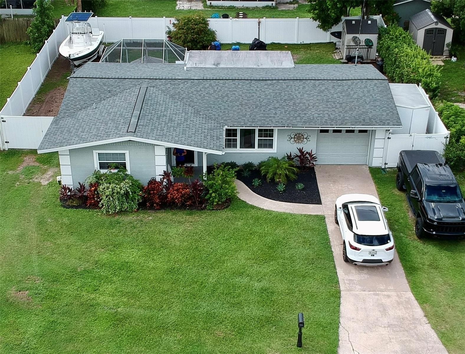 Move right in! Inside you’ll find ceramic flooring throughout, master bedroom with walk in closet and attached full bathroom. Kitchen with white cabinets, granite countertops, a new stainless-steel farmhouse sink, a new custom coffee bar, and a new electric fireplace mantel. Major upgrades: a brand new A/C whole unit attached handler with updated ductwork (3/25), brand new electric panel with whole-house generator outlet added and A/C soft starter added (3/25), wind-mitigated roof that made it through Milton and helps insurance deductibles. New FPL-installed roof electric pole, hurricane-rated doors (2018) and newer windows for efficiency, plus the attic has been fully blown insulated for energy savings. Additional highlight include a new water heater (2022), new paver fire pit area (2022), new fridge (2023), and washer/dryer set with a brand-new washer. The outdoor space is fully fenced with a brand new hurricane-rated metal posts and Double gates. All furnishings available for sale.