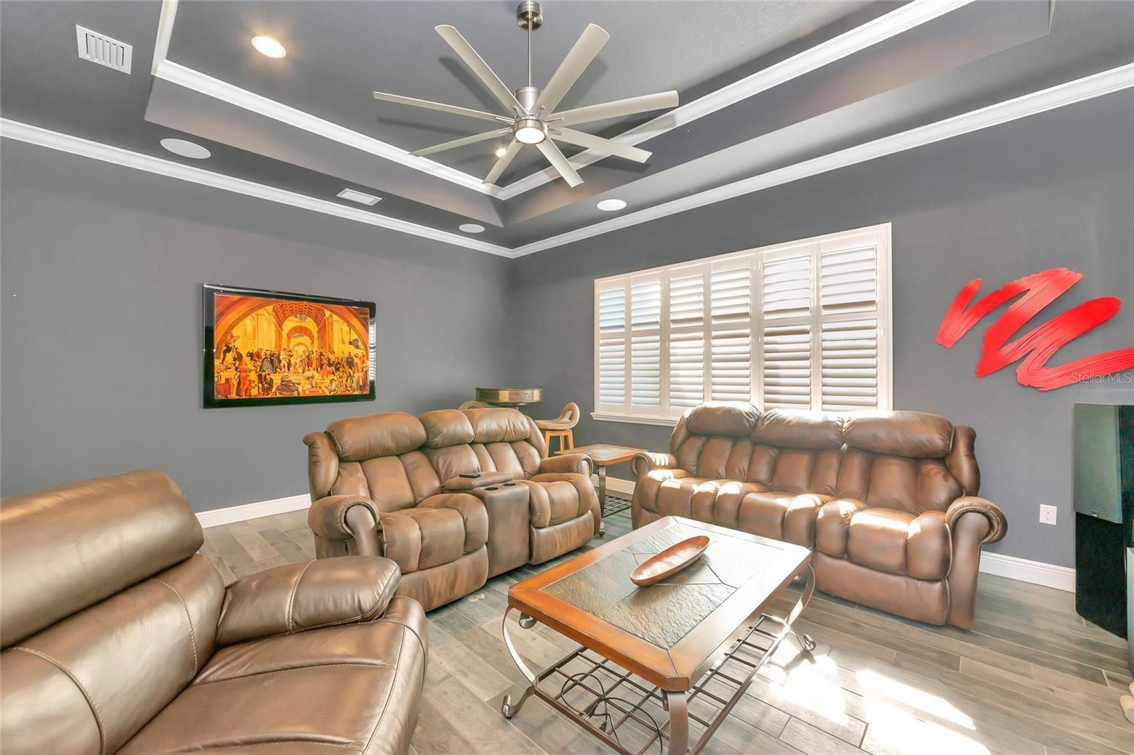 A rare live-work estate offering true infrastructure for modern leadership—comprised of three fully integrated buildings on over five acres with no HOA restrictions. The primary residence delivers luxury living with purpose, featuring impact-rated doors and windows, chef’s kitchen, private theater, two offices for executive-level remote operations, and a spa-inspired primary suite designed for reset and renewal. Offered partially furnished, the home is engineered for both lifestyle and productivity. Outside, the property reveals a resort-style environment with pool, spa, sauna, fire features, layered lighting, and multiple seating zones, anchored by a full outdoor kitchen and expansive entertaining terrace ideal for hosting clients, partners, or private events. The second building provides approximately 3,000 square feet of business-grade infrastructure, including a commercial-grade private gym, executive office with full bath and shower, and a substantial garage and storage facility capable of supporting equipment, vehicles, inventory, or specialty collections. The third building—a separate three-stall garage—has been adapted as a versatile flex environment suitable for a content studio, command center, private lounge, or additional operations space. Together, these structures form one unified estate—a private headquarters where lifestyle, enterprise, and performance converge in a way few properties can offer.