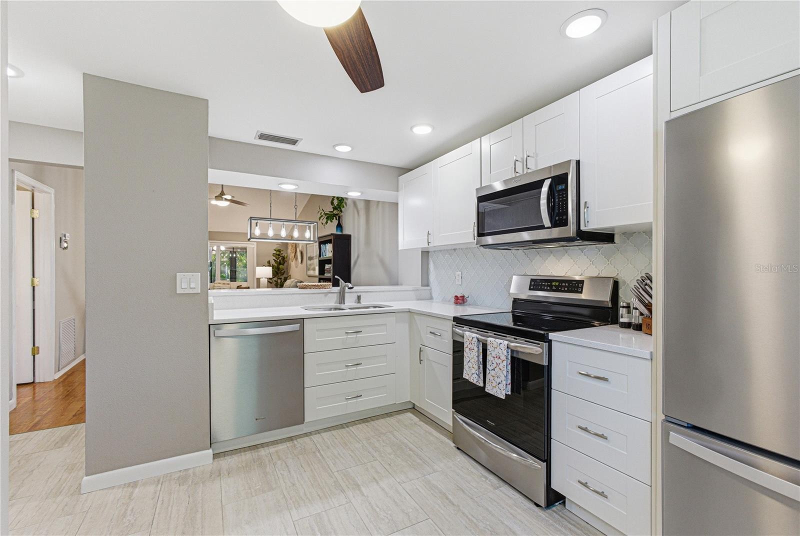 Price Reduced!!!! This beautifully updated, mostly furnished, villa offers a perfect blend of comfort and style, featuring a modern kitchen with brand-new cabinets and sleek quartz countertops, a large pass through to the dining room, ideal for everyday living and entertaining. Enjoy peace of mind with a new A/C system, elegant porcelain floors throughout, and a thoughtfully designed layout that feels open and inviting. Step outside to a large private lanai—perfect for relaxing or dining al fresco—while still enjoying a quiet, private setting just steps from the community clubhouse and pool. A rare combination of privacy, upgrades, and convenience. There is an assigned carport space and guest parking close to the unit. This villa is ready for you to call home, even if it’s part time. It's located in a very active 55+ community with many amenities for your enjoyment and social life. Country Village has been a popular place to live with most residents staying for many years. There is a comforting sense of happiness and an abundant list of activities if you choose to participate. Enjoy the large, heated pool, spa, pool tables, exercise equipment, library, bingo, shuffleboard, outdoor grilling area, on site management, library, etc. Owners are allowed one small pet no more than 30 pounds. Country Village offers a full calendar of activities year-round. All amenities are within a few minutes drive. This includes houses of worship, restaurants, hospitals, airports, major highways, entertainment, many stores, etc. Major airports are within approximately an hour drive, also professional sports, world class rowing, malls, popular beaches, etc. This includes Anna Marie Island, Siesta Beach, Lido Beach, St Armand's and Lakewood Ranch. Disney, Orlando, Sanibel Island are all approximately a ninety-minute drive. If you want to relax and enjoy the beautiful sunsets, you are a short ten-minute drive from the Gulf of Mexico Beaches. If you want to fish and/or go boating, water access is a few minutes drive. Kayaking and Jet skiing is also available. This unit is a must see if you are shopping for a bargain in West Bradenton close to recreational activities and all amenities. Come see what paradise has to offer! Schedule a preview of this unit now! This will not last long!