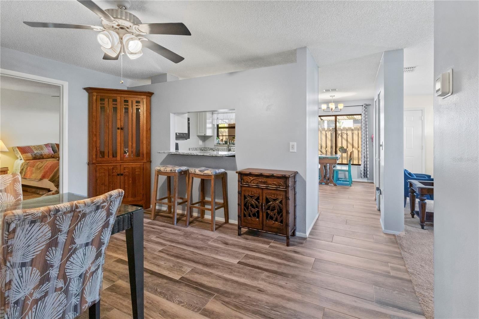 This beautifully updated, mostly furnished, villa offers a perfect blend of comfort and style, featuring a modern kitchen with brand-new cabinets and sleek quartz countertops, a large pass through to the dining room, ideal for everyday living and entertaining. Enjoy peace of mind with a new A/C system, elegant porcelain floors throughout, and a thoughtfully designed layout that feels open and inviting. Step outside to a large private lanai—perfect for relaxing or dining al fresco—while still enjoying a quiet, private setting just steps from the community clubhouse and pool. A rare combination of privacy, upgrades, and convenience. There is an assigned carport space and guest parking close to the unit. This villa is ready for you to call home, even if it’s part time. It's located in a very active 55+ community with many amenities for your enjoyment and social life. Country Village has been a popular place to live with most residents staying for many years. There is a comforting sense of happiness and an abundant list of activities if you choose to participate. Enjoy the large, heated pool, spa, pool tables, exercise equipment, library, bingo, shuffleboard, outdoor grilling area, on site management, library, etc. Owners are allowed one small pet no more than 30 pounds. Country Village offers a full calendar of activities year-round. All amenities are within a few minutes drive. This includes houses of worship, restaurants, hospitals, airports, major highways, entertainment, many stores, etc. Major airports are within approximately an hour drive, also professional sports, world class rowing, malls, popular beaches, etc. This includes Anna Marie Island, Siesta Beach, Lido Beach, St Armand's and Lakewood Ranch. Disney, Orlando, Sanibel Island are all approximately a ninety-minute drive. If you want to relax and enjoy the beautiful sunsets, you are a short ten-minute drive from the Gulf of Mexico Beaches. If you want to fish and/or go boating, water access is a few minutes drive. Kayaking and Jet skiing is also available. This unit is a must see if you are shopping for a bargain in West Bradenton close to recreational activities and all amenities. Come see what paradise has to offer! Schedule a preview of this unit now! This will not last long!