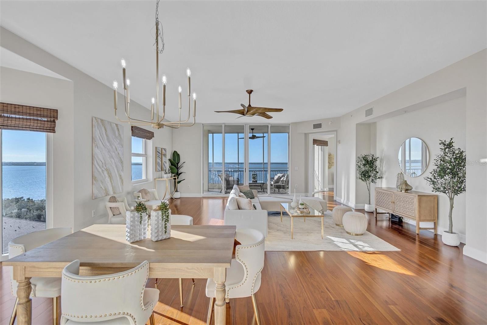 Corner Waterfront PENTHOUSE with a Wrap-Around Floor Plan designed to capture Panoramic Bay and Skyline Views from Multiple Living Areas. This exceptional 3-Bedroom, 2.5-Bath Residence with Flex Den/Office offers a desirable Split Floor Plan, Soaring 10-Foot Ceilings, and an open layout showcasing views of Terra Ceia Bay, the Sunshine Skyway Bridge, and the St. Petersburg Skyline. The Newly Remodeled Kitchen has been opened to the living area to maximize light and views, complemented by Updated Lighting, Modern Finishes, and Thoughtful Details throughout. A dedicated Office/Den with Custom Built-In Desk provides an ideal work-from-home or reading space. The home is truly Move-In Ready. Enjoy Two Private Balconies; a Large Balcony off the Living Room and Primary Bedroom ideal for sunset views, and a Second Balcony accessed from both secondary bedrooms, perfect for morning coffee and sunrise views. The Primary Suite offers a peaceful retreat, while the Open Living and Dining Areas are well suited for entertaining. Private Garage Included. Located in a Gated Golf Course Community, residents enjoy a Pool, Spa, Firepit, 500-Foot Fishing Pier, Nature Trail, Fitness Facilities, Tennis Courts, Tiki Bar, and Clubhouse Dining. Golf Membership Is Optional. Conveniently located near Downtown Bradenton, shopping, dining, and outdoor recreation, with easy access to St. Petersburg, Sarasota, and Tampa International Airport. Ideal as a Full-Time Residence or Seasonal Retreat offering the best of Florida Waterfront Living.