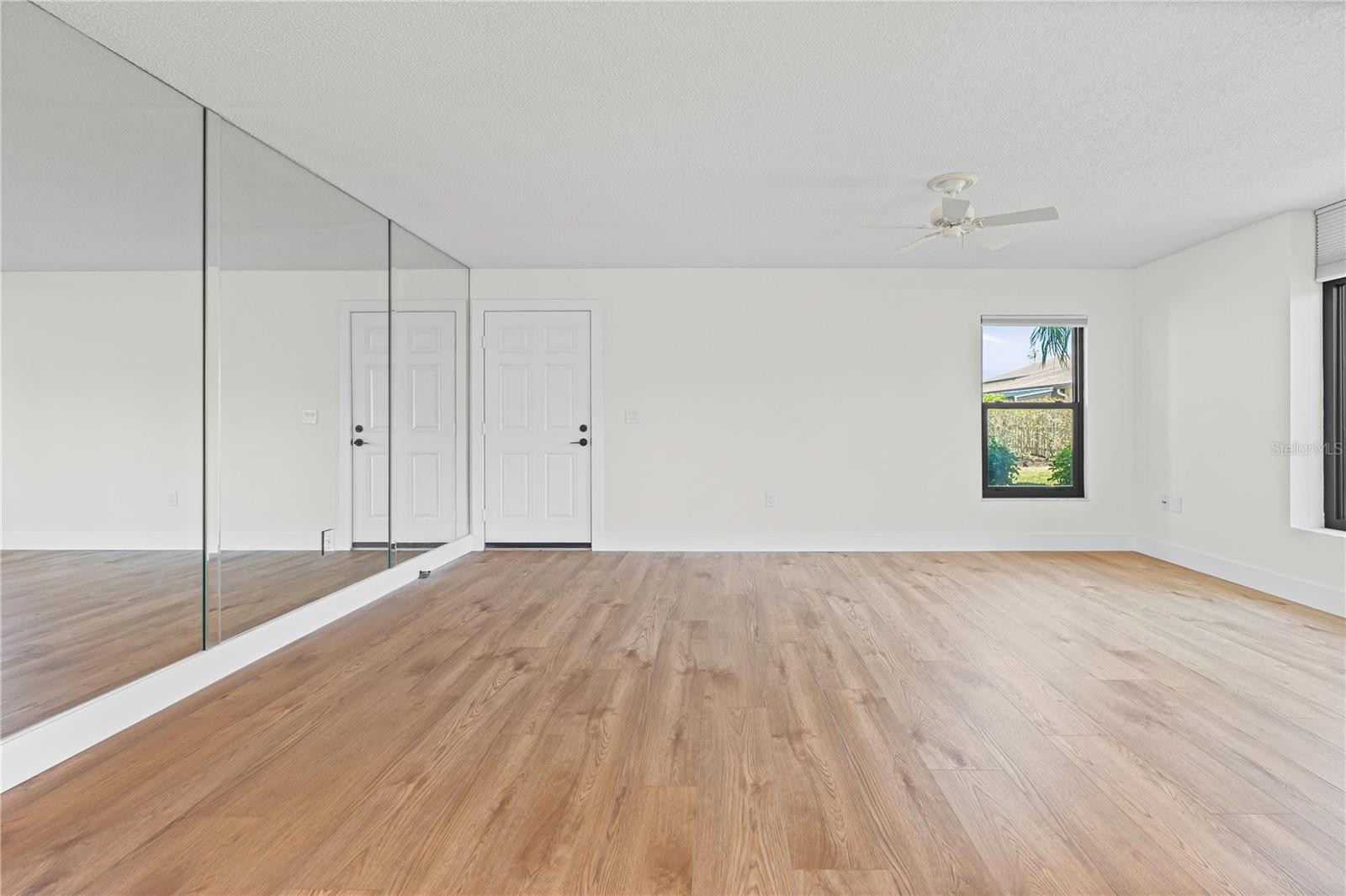 Extensively renovated, maintenance-free villa-style residence located in desirable Country Village, a highly active 55+ community—ideal for lock-and-leave or seasonal ownership. Over $40,000 in upgrades were completed in September 2025, creating a truly move-in-ready opportunity. Interior enhancements include new hurricane-impact PGT windows throughout, 9-inch wide-plank luxury vinyl flooring, fresh interior paint, upgraded 5-inch woodwork, and solid wood interior doors with updated hardware. The kitchen is fully equipped with new LG appliances, including refrigerator, dishwasher, microwave, air-fryer range, washer, and dryer, and is accented by a new dining room chandelier. Bathrooms have been thoughtfully updated with new vanities, toilets, mirrors, faucets, and a newly tiled shower pan. Additional improvements include plantation-style louvered pantry and closet bifold doors, decorative paddle-style electrical outlets and switches, adjustable metal closet shelving, recently cleaned HVAC vents and ducts, and an HVAC system professionally serviced every six months by LPAC Bradenton. Backflow inspection completed October 2025. Enjoy the enclosed lanai, recently rescreened and finished with new outdoor carpet—an inviting space to relax year-round. Exterior upgrades include a new front door with updated hardware and an exterior storm/screen door. Community improvements include parking lot resurfacing and restriping completed in 2025. The villa is ideally positioned within the association, surrounded by mature tropical landscaping and tranquil greenbelt views, with no adjacent roadways or parking areas. A private walkway leads directly to the front entrance, and an assigned covered parking space provides everyday convenience. The bright courtyard and professionally maintained grounds reinforce the low-maintenance lifestyle. Country Village offers an active 55+ community atmosphere with convenient access to local beaches, dining, shopping, and popular attractions. A thoughtfully upgraded property designed for ease of ownership, quality, and peace of mind.