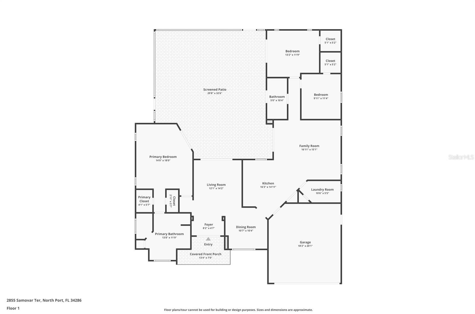 Welcome to your beautiful , luxurious, and well built tried and true Grover Brothers Construction home. Sitting on an oversized corner lot and fully landscaped with mature palm trees and bushes- this home is no cookie cutter! NO FLOOD INSURANCE REQUIRED! Located in a peaceful neighborhood in North Port. This split floor plan home has high ceilings , lots of natural light, and boasts over 2000 Sq ft of space to enjoy! No need for blinds as all windows have beautiful plantation shutters throughout! NEWER ROOF, NEWER A/C , Newer microwave, dishwasher, and refrigerator in the kitchen surrounded by beautiful granite countertops. Tile and laminate flooring throughout the entire home. Two separate living spaces with sliders in every room to access the spacious screened in lanai that is large enough for a future pool; the epitome of Florida living. The whole house (including garage) has been freshly painted in a neutral color (walls, trim, doors) ready for you to put your personal touch on. The septic has recently been serviced for your convenience. The back lanai has a sliding hurricane shutter that covers most sliders and windows to the house. Metal hurricane shutters are included in the sale. All new smoke detectors with carbon monoxide for safety. The bedrooms all have spacious closets and the primary bathroom has a soaking tub and separate shower. Schedule a private tour of your future peaceful Florida lifestyle home. Make sure to check out the virtual tour! (One or more photos have been virtually staged)