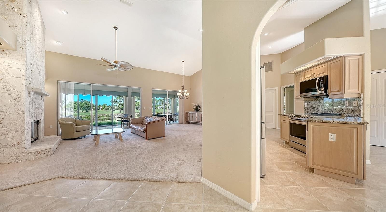 Unique opportunity: easy living with spectacular views! Enjoy sweeping pond and deep golf course views, plus colorful sunsets, from this maintenance-free, no-pool home in The Meadows, a sought-after park-like oasis in a phenomenal location. A canopied street, charming gazebo and quiet cul-de-sac welcome you home. Inside, you’ll love the high ceilings, abundant natural light, walls of sliders, and comfortable great-room floor plan, all beautifully oriented to capture unforgettable water, golf course, and sunset views. The spacious and private climate-controlled Florida room is ideal for relaxing and entertaining: dining, curling up with a book, and enjoying the daily parade of birds. The semi-open kitchen features oak cabinetry, Venetian granite countertops, and stainless-steel appliances, including a French-door refrigerator. The primary suite is complemented by a stunning bath with solid-wood soft-cream cabinetry with walnut glaze, Bordeaux granite countertops, and a matching Roman shower. The guest bath offers a desirable zero-entry shower. Set on 1,600 park-like acres, The Meadows is a resort-style community just 15 minutes from downtown. Enjoy 14 miles of scenic trails and, for a low fee, access to a fitness center, Junior Olympic pool, pickleball, golf, and Har-Tru tennis. You’ll be minutes to award-winning beaches, vibrant arts and culture, Whole Foods, Trader Joe’s, Nathan Benderson Park, Mote SEA Aquarium, the future Sarasota Orchestra, and University Town Center: a favorite shopping and dining destination. Updates: 2024 A/C system, 2020 water heater, 2019 exterior paint, 2010 tile roof, above flood plain in zone X.