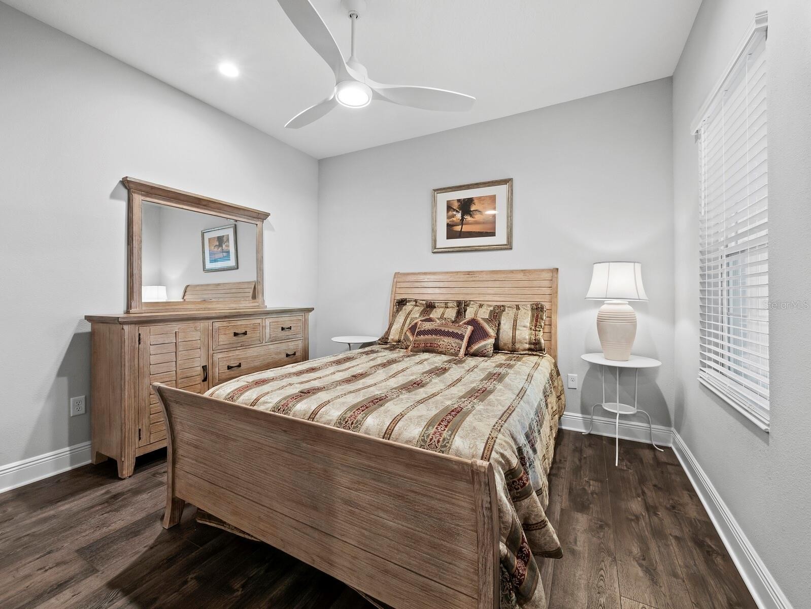 Step into refined Florida living in Windward, where a smart, open layout pairs everyday comfort with easy entertaining. The cook’s kitchen anchors the home with soft-close cabinetry, under-cabinet illumination, oversized sink, and a gas range, flowing seamlessly into a generous great room framed with a coffered ceiling. Durable tile floors in main living areas and Luxury Vinyl Plank flooring in bedrooms and den, complemented by upgraded lighting, and 8' interior doors all provide for a clean, elevated feel. Need a quiet spot to focus? The double French-door entry into your den/flex room is ideal for work, hobbies, or guests. The private primary suite features two closets (one walk-in), a ceiling fan, and a refreshed en-suite with an upgraded shower. Thoughtful quality continues with whole house impact-resistant windows and doors and blinds on all windows. Outdoor living shines: relax on the extended, screened lanai with pavers and ceiling fan, taking in treed scenery with a water view—perfect for morning coffee and evening cocktails. It’s plumbed with a dedicated gas line for grilling, and rear/front hose spigots for everyday convenience. And everyday living is made easy with a spacious laundry room and a two-car garage with a utility sink. Other thoughtful updates include added insulation in the exterior block walls and garage doors, closet organizer systems, and window tint for efficiency. Windward living means resort perks: resort-style pool and splash pad, spa, modern fitness center, 8 pickleball courts, 2 tennis courts, sports fields, clubhouse, dog parks, playgrounds, miles of trails, and a full-time activities director. With direct access to Waterside Place and quick reach to Lakewood Ranch Main Street, downtown Sarasota, I75, premier beaches, dining, culture, and championship golf, you’re at the center of it all. Crisp, move-in ready, and thoughtfully upgraded—come see why this villa stands out.