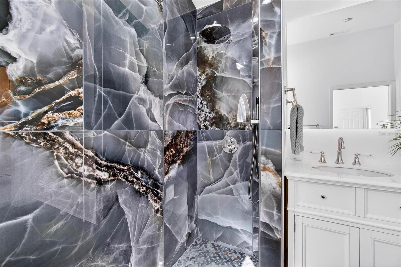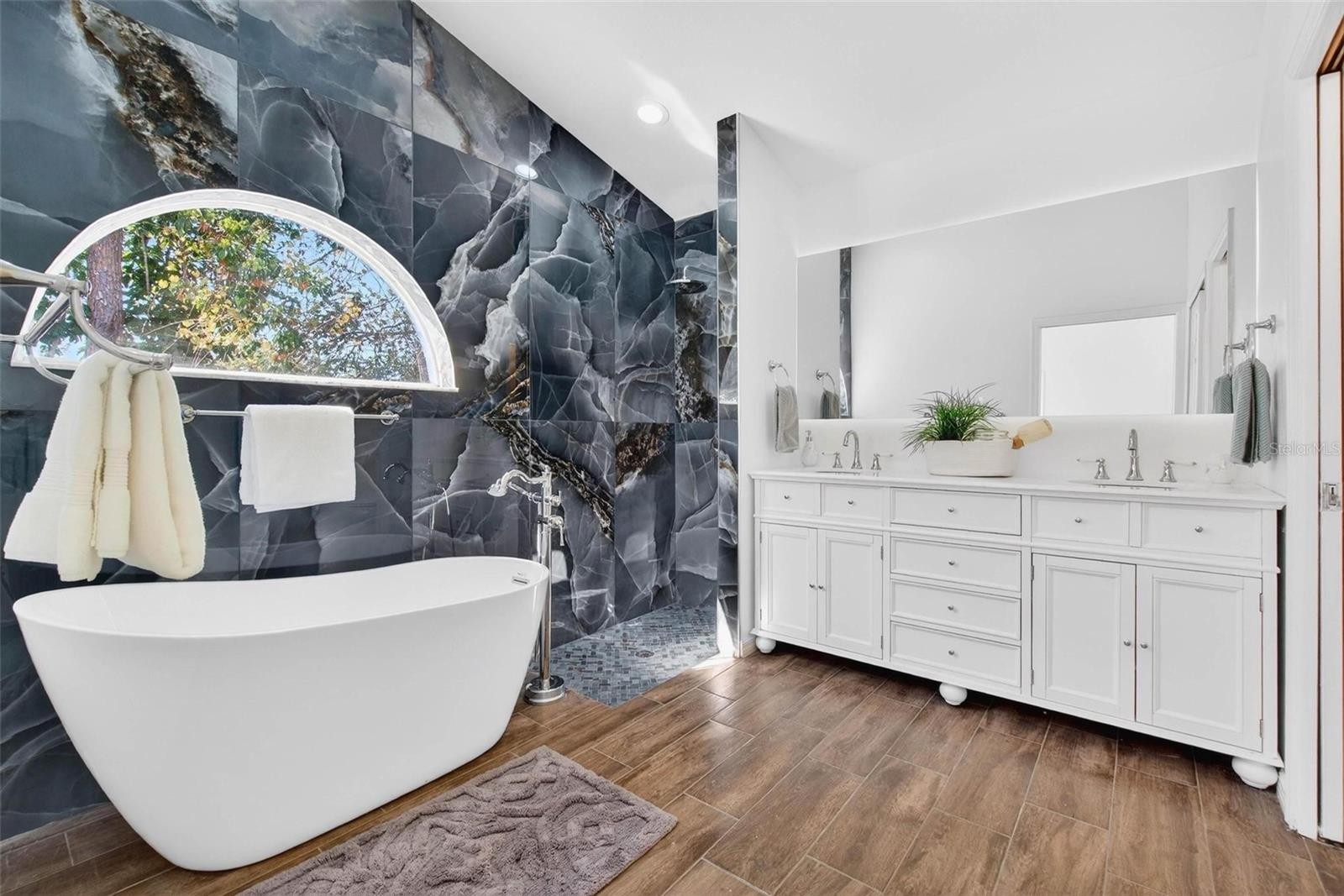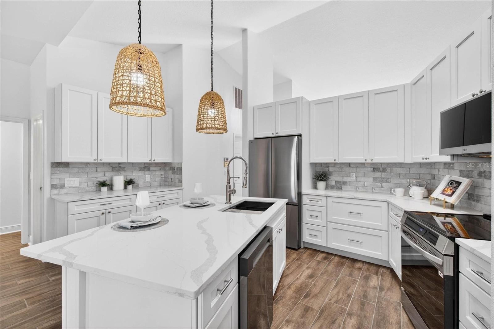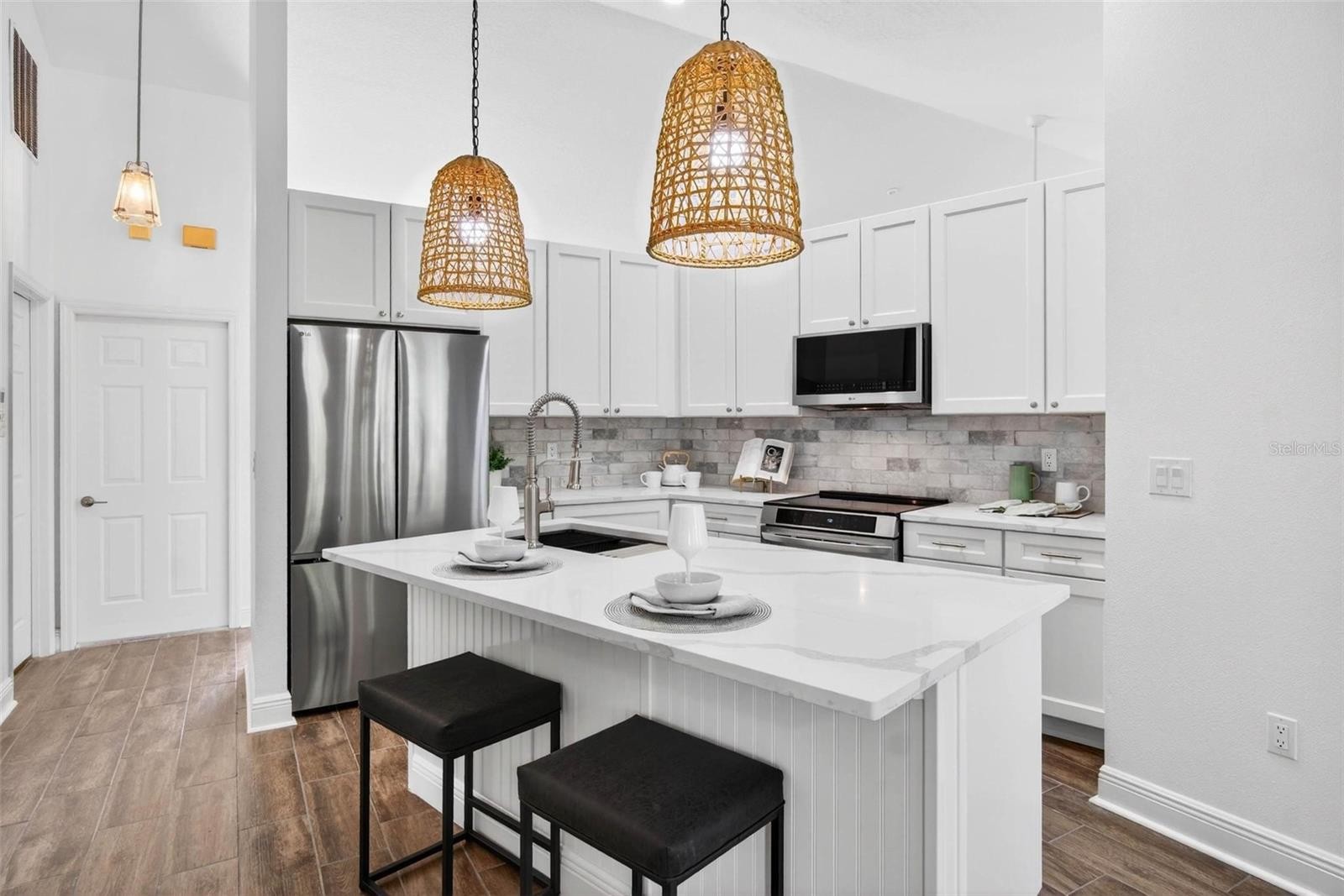 Welcome to 2901 50th Pl E in Bradenton, a fully renovated four-bedroom, two-bath pool home offering modern finishes, architectural impact, and true move-in-ready living. Located in the Candlewood subdivision with nearly 1/3 acre of land. This 2,198 sq ft home features a brand-new kitchen with all-new cabinetry, quartz countertops, and new ceramic tile flooring throughout, creating a clean, cohesive interior. The primary suite includes a dramatic, spa-inspired bathroom highlighted by a floor-to-ceiling large-format accent wall in a deep midnight blue, extending to the vaulted ceiling at its highest point. A soaking tub, new vanity, and modern finishes complete this striking and serene retreat. The second bathroom is fully updated with new shower tile, a new vanity, and updated fixtures. Major improvements include a new roof, all-new lighting fixtures throughout, a brand-new front door, and fresh interior and exterior paint. A two-car garage provides convenient storage and parking. A/C is 2021. Outdoors, enjoy a fully refurbished pool with a newly painted deck, all enclosed within a screened pool cage — ideal for year-round Florida living. New landscaping and a new mailbox enhance curb appeal and complete the property. New Privacy fence scheduled for installation. Designed for comfort, entertaining, and peace of mind, this turnkey home offers style, functionality, and immediate livability — simply unpack and enjoy.
