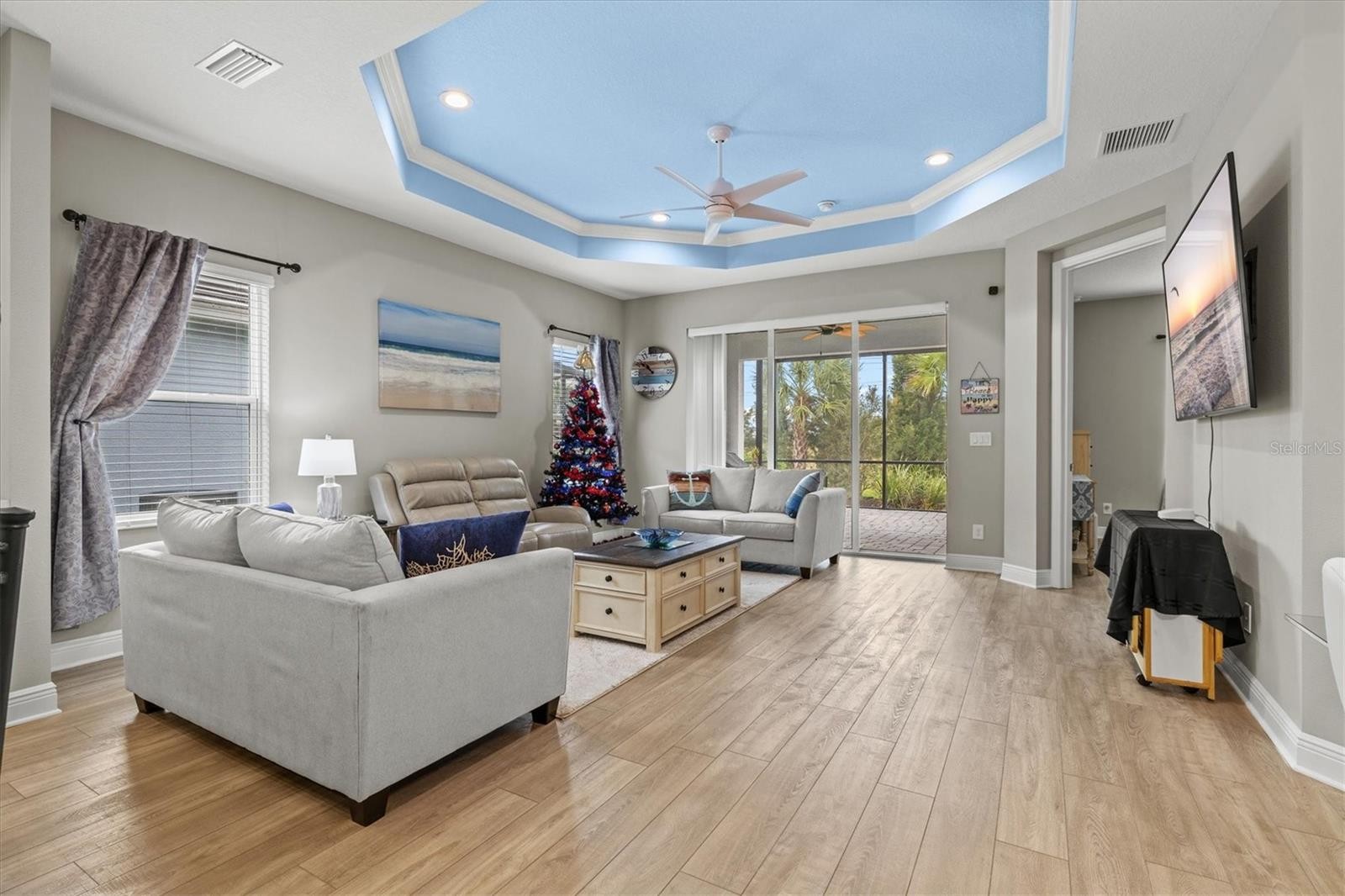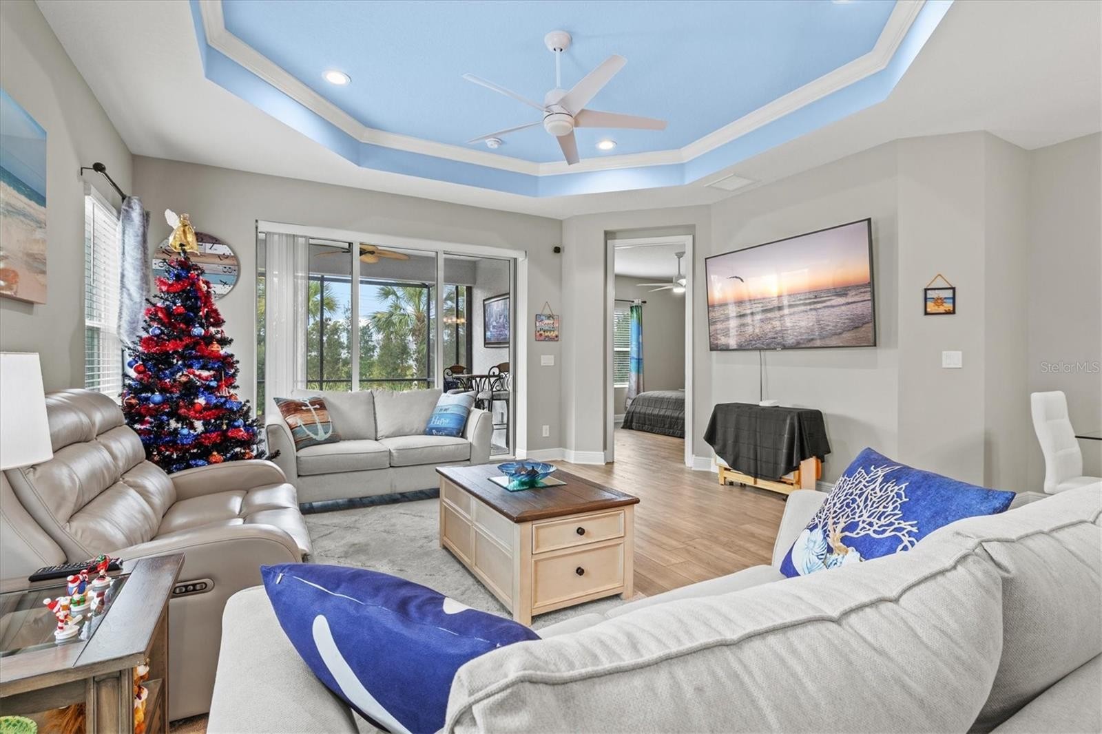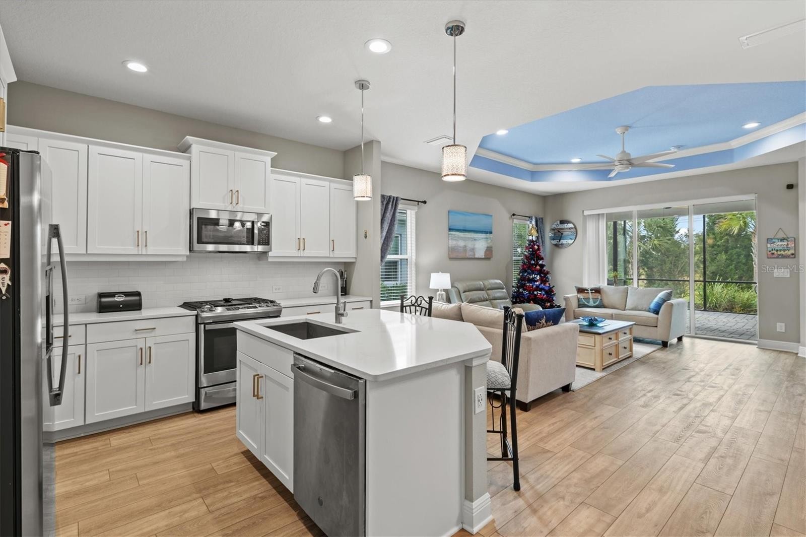 Welcome to luxury living wrapped in resort-style comfort in the heart of Windward at Lakewood Ranch, one of Sarasota’s most sought after gated communities. This like new home built in 2023 offers all the benefits of new construction without the wait, making it an ideal choice for a primary residence or part time Florida living. Tucked away on a quiet cul-de-sac with sidewalks throughout the neighborhood, the home greets you with beautiful landscaping, strong curb appeal, a large pavered driveway, and a welcoming screened front porch. Inside, over 1,500 square feet of thoughtfully designed living space features 2 bedrooms, 2 bathrooms, a 2 car garage, and a versatile bonus room with French doors that can easily function as a den, office, or guest space. The split floor plan is perfect for hosting visitors, while the open concept living area brings everyone together with a spacious kitchen showcasing quartz countertops, a large island, stainless steel appliances including a gas range, and a classic subway tile backsplash. The living room features a tray ceiling and sliding glass doors that lead to the extended screened and pavered lanai, offering a private outdoor retreat with no rear neighbors. The primary suite is generous in size and includes two closets, double vanities, a walk-in shower, and a custom walk-in closet. An indoor laundry room adds convenience to daily routines. Windward elevates everyday living with an impressive array of resort-style amenities, including two sparkling pools, a fitness center, a 9,600 square foot clubhouse, tennis courts, eight pickleball courts, dog parks, a playground, community events, and miles of scenic walking trails. The HOA includes lawn maintenance and full access to all amenities. This location also places you minutes from Waterside Place’s lively Main Street, top-rated schools, I-75, the UTC mall, downtown Sarasota, an incredible variety of restaurants, and world-renowned Gulf Coast beaches. Do not miss your chance to experience one of Lakewood Ranch’s most vibrant and beautifully maintained communities at its finest.