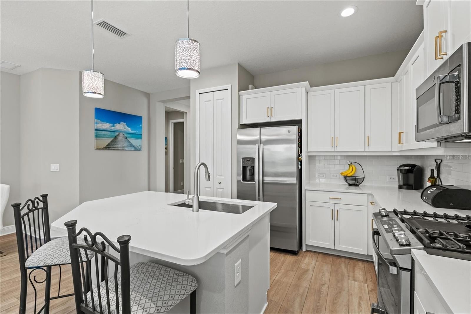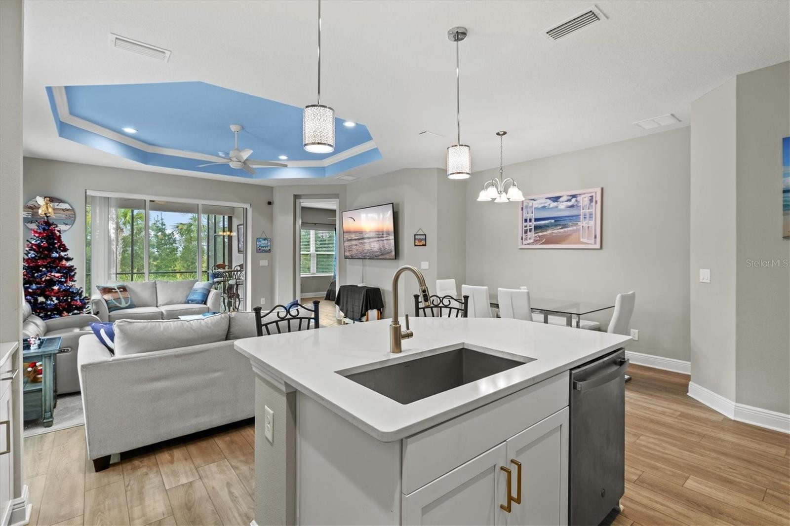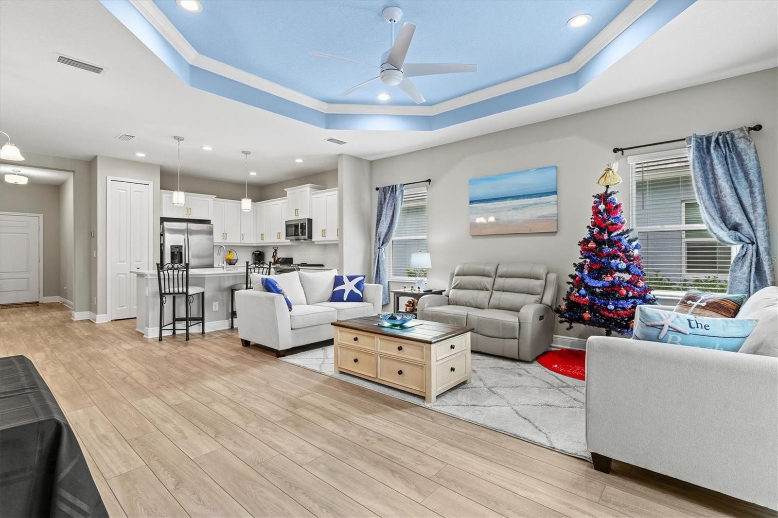 Welcome to luxury living wrapped in resort-style comfort in the heart of Windward at Lakewood Ranch, one of Sarasota’s most sought after gated communities. This like new home built in 2023 offers all the benefits of new construction without the wait, making it an ideal choice for a primary residence or part time Florida living. Tucked away on a quiet cul-de-sac with sidewalks throughout the neighborhood, the home greets you with beautiful landscaping, strong curb appeal, a large pavered driveway, and a welcoming screened front porch. Inside, over 1,500 square feet of thoughtfully designed living space features 2 bedrooms, 2 bathrooms, a 2 car garage, and a versatile bonus room with French doors that can easily function as a den, office, or guest space. The split floor plan is perfect for hosting visitors, while the open concept living area brings everyone together with a spacious kitchen showcasing quartz countertops, a large island, stainless steel appliances including a gas range, and a classic subway tile backsplash. The living room features a tray ceiling and sliding glass doors that lead to the extended screened and pavered lanai, offering a private outdoor retreat with no rear neighbors. The primary suite is generous in size and includes two closets, double vanities, a walk-in shower, and a custom walk-in closet. An indoor laundry room adds convenience to daily routines. Windward elevates everyday living with an impressive array of resort-style amenities, including two sparkling pools, a fitness center, a 9,600 square foot clubhouse, tennis courts, eight pickleball courts, dog parks, a playground, community events, and miles of scenic walking trails. The HOA includes lawn maintenance and full access to all amenities. This location also places you minutes from Waterside Place’s lively Main Street, top-rated schools, I-75, the UTC mall, downtown Sarasota, an incredible variety of restaurants, and world-renowned Gulf Coast beaches. Do not miss your chance to experience one of Lakewood Ranch’s most vibrant and beautifully maintained communities at its finest.