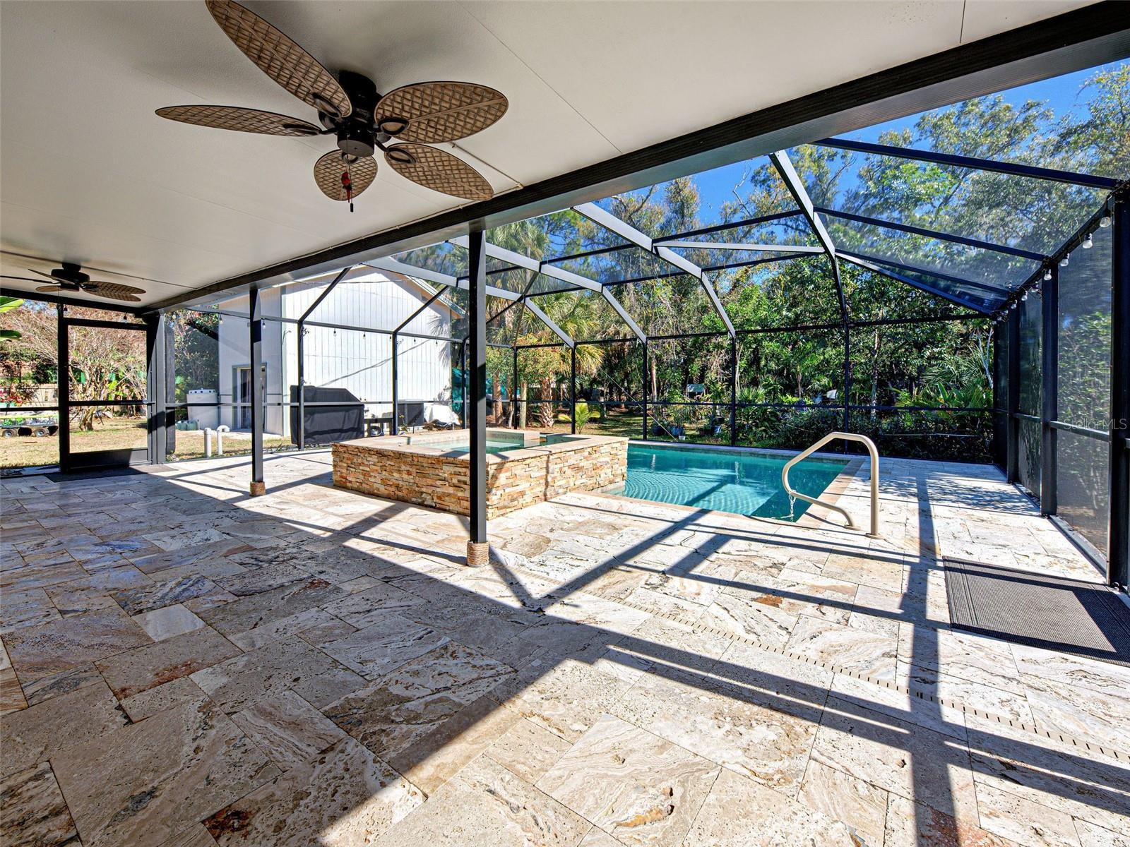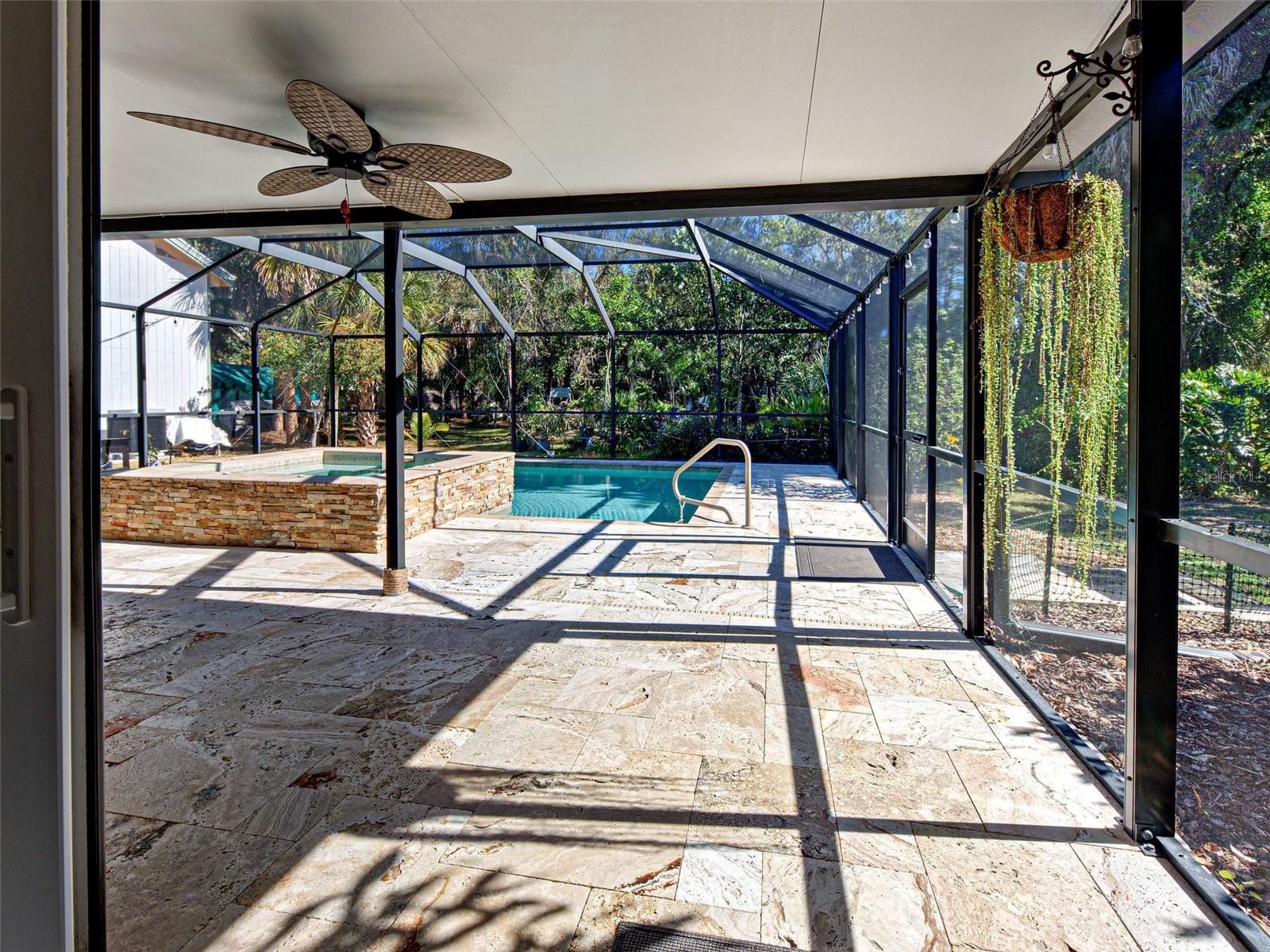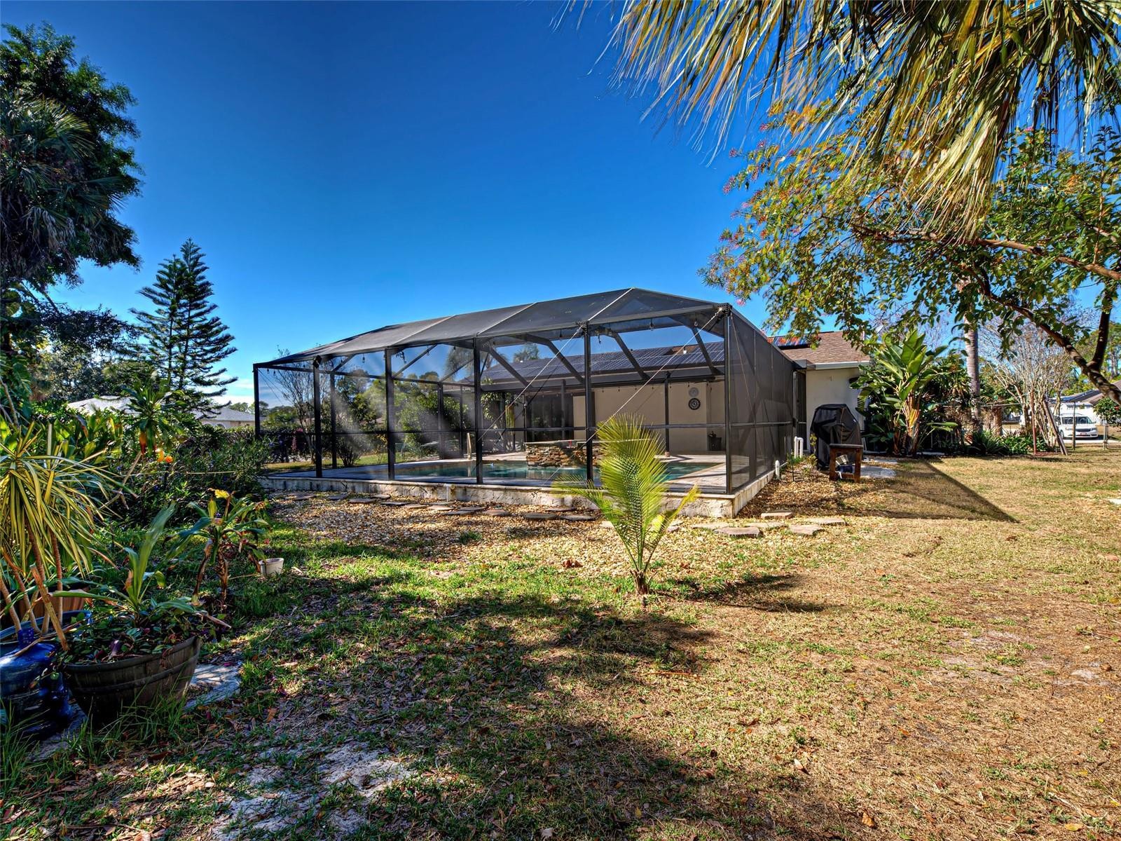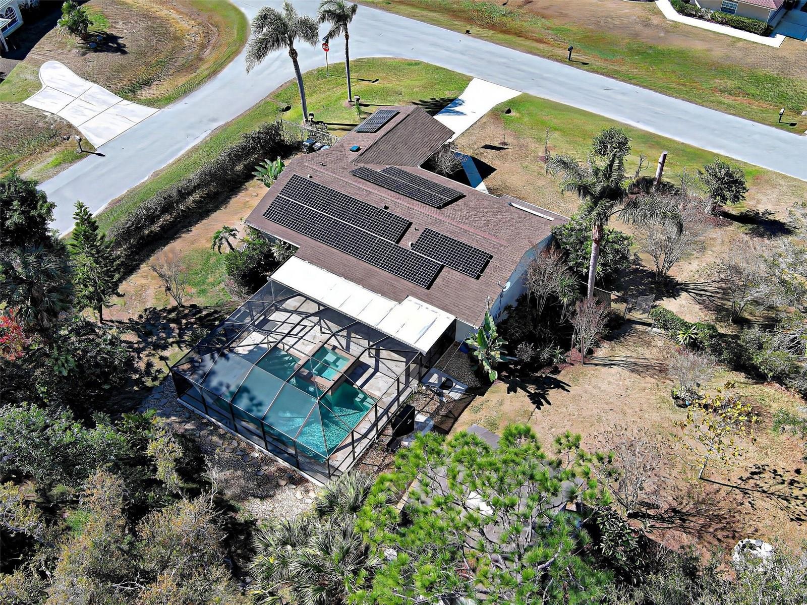 This 3-bedroom 2 bath pool home sits on 4 lots (one acre) features include solar panels for minable electric bills. city water, a split floor plan, cathedral ceilings and separate family and living rooms, eat in kitchen with stainless steel appliances, tile and vinyl plank flooring, Master bedroom with private updated En-suite. Family room has slider to large Lania and beautiful inground pool with spa and Travertine patio and pool deck, attached one car garage and separate 2 story garage for extra storage and workspace, Expansive 1 acre lot with mature Oak trees, ornamental blooming trees and large staghorn ferns. 3 of the 4 lots are fenced. Minutes to city center, shopping, restaurants, golf and I75