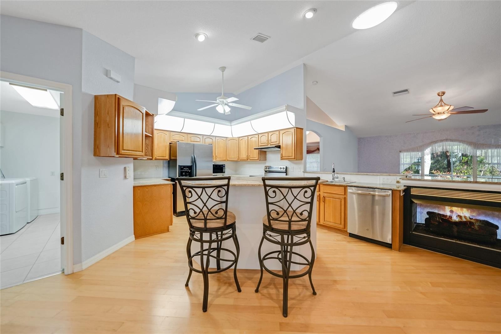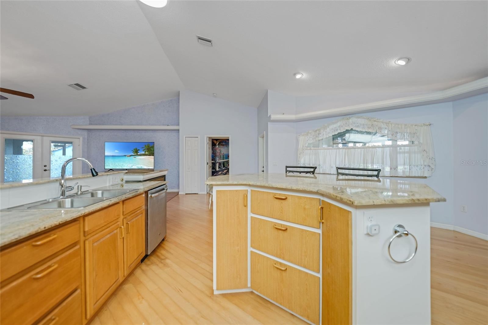 Discover your own slice of paradise in this North Port retreat, nestled on a double corner lot with the convenience of public water. This 3-bedroom, 2.5-bathroom home with a 2-car garage invites you in through a spacious, screened-in entry – a perfect spot for enjoying your morning coffee or evening relaxation. The open floor plan creates an inviting atmosphere, ideal for entertaining, with a gas fireplace separating the kitchen and the great room. The kitchen is a chef's dream, featuring granite countertops, a large island/breakfast bar, an abundance of storage, stainless-steel appliances and is open to the living/dining area. The expansive master suite is a true retreat, complete with an ensuite bathroom, dual walk-in closets, and French doors leading to a large wrap-around screened lanai. The master bath offers double sinks, a jetted tub, a separate shower, and convenient access to the laundry room. The second bedroom enjoys its own private bath and lanai access, while the third bedroom, designed as an office, features a separate entrance through French doors on the front porch. The garage provides easy access to a workshop and spray foam-insulated attic storage. Outside, the back and side yards are a gardener’s dream, with mature trees, lush planting beds, and ample space for a future pool. The owner’s passion for gardening is evident in the vibrant, colorful plants that enhance the tranquil beauty of the surroundings. A 10x12 storage shed was added to house all your garden needs. The home also features newer roof in 2021, A/C is 2017, hurricane shutters, skylight, large laundry room with an abundance of storage, folding station with built in sink and washer/dryer. Don’t miss the chance to own this beautifully maintained property that blends modern features with ample space and a prime location! Situated in a desirable North Port neighborhood, this home is not located in a flood zone or subject to HOA fees and offers close proximity to sandy beaches, the renowned Warm Mineral Springs, shopping, dining, entertainment, and convenient access to I-75 and US-41. Don’t miss the chance to own this great home.