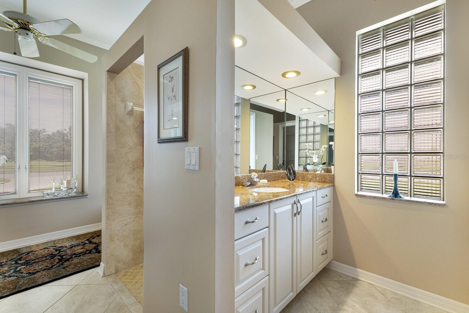 One or more photo(s) has been virtually staged. Incredible value in River Wilderness with upgrades and unbeatable features. This solid brick masonry custom home includes a brand-new roof (2025), freshly painted exterior, driveway and garage floor. Inside, you'll find rich Spanish tile floors—warm, polished, and elegant—far more impressive in person than photos can show. This home delivers both space and function with a 2.5-car garage with golf cart entry, two hot water heaters, Pella windows with built-blinds and hurricane film, solid wood doors, and crown molding throughout. The chef’s kitchen offers a center prep island, breakfast bar, eat-in area, built-in desk, two pantries, and newer stainless steel appliances with filtered and instant hot water. The split floorplan ensures privacy: the primary suite features two walk-in closets, a soaking tub, and a seamless walk-in shower, while two guest bedrooms sit on the opposite side—one with a sitting area and golf course views. A flexible office/den adds workspace or guest space as needed. The great room is built for entertaining, with a wood-burning fireplace, wet bar, and custom built-ins. Step outside to the screened lanai with covered seating, second wet bar, and a heated pool overlooking the 11th tee box. River Wilderness offers oversized lots, mature landscaping, and 24-hour guard-gated access, plus amenities like a boat ramp and bocce courts. Memberships to The Club at River Wilderness are optional and include golf, pickleball, tennis, dining, and more. Prime location near Ft. Hamer Bridge for easy access to Bradenton, Lakewood Ranch, Sarasota, St. Pete, and local shops and dining.