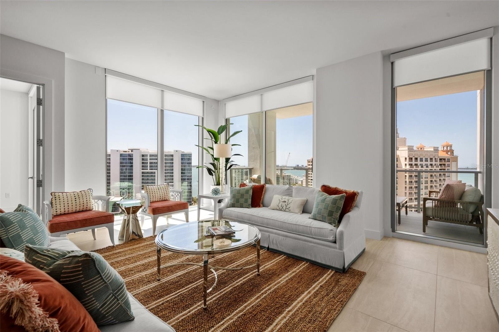 PRICE REFINED FOR TODAY’S MARKET | A TRULY EXCEPTIONAL opportunity now awaits. This expansive luxury residence stands out as one of the most captivating offerings in Sarasota’s downtown condo market. Its unique corner floor plan is enveloped in natural light and showcases a coveted west-facing orientation offering shimmering daytime bay views, glowing Gulf sunsets, and sparkling city lights after dusk. PERCHED on the 16th floor, this residence delivers an elevated sky-home experience rarely available at this price point. Two premium adjacent parking spaces add tremendous value and convenience, a sought-after benefit for discerning buyers. BEFORE this residence is quietly secured by another buyer, I invite you to explore the lifestyle it offers—both in person and through the property video linked below. A CURATED Blend of Elegance, Light & Luxury Living | Step into refined coastal sophistication within this meticulously upgraded 2-bedroom + den, 3-bath home at the heart of Sarasota’s most exciting new waterfront district, The Quay. The 2,185 sq. ft. open-concept layout is framed by floor-to-ceiling windows and soaring 10-foot ceilings that bathe the home in natural light and capture sweeping views of Sarasota Bay and the Gulf of Mexico. | EVERY detail has been thoughtfully elevated for immediate enjoyment: Premium porcelain tile throughout - Gourmet Italkraft kitchen with upgraded soft-close cabinetry, pantry pull-outs, and JennAir appliances including convection oven, built-in oven, induction cooktop, and Grohe fixtures - Spacious primary suite with two walk-in closets and spa-inspired bath with dual vanities, soaking tub, oversized shower, and linen closet - Ensuite guest bedroom plus full third bath - Den with closet—ideal as an office or third bedroom - Hunter Douglas motorized blinds (blackout in bedrooms), custom lighting throughout - Climate-controlled storage and two premium adjacent parking spaces - Lightly lived in—occupied only 12 months since completion. THIS is effortless luxury living in an amenity-rich, walkable waterfront enclave—steps to world-class dining, shopping, arts venues, and the Marina. A RARE OFFERING - A REFINED PRICE - A LIFESTYLE READY NOW. Homes with this combination of size, upgrades, dramatic views, and premier Quay location are limited. With the recent price refinement, this residence represents exceptional value for buyers seeking a turnkey luxury home in Sarasota’s fastest-growing waterfront district. I encourage interested buyers to experience this remarkable residence soon.