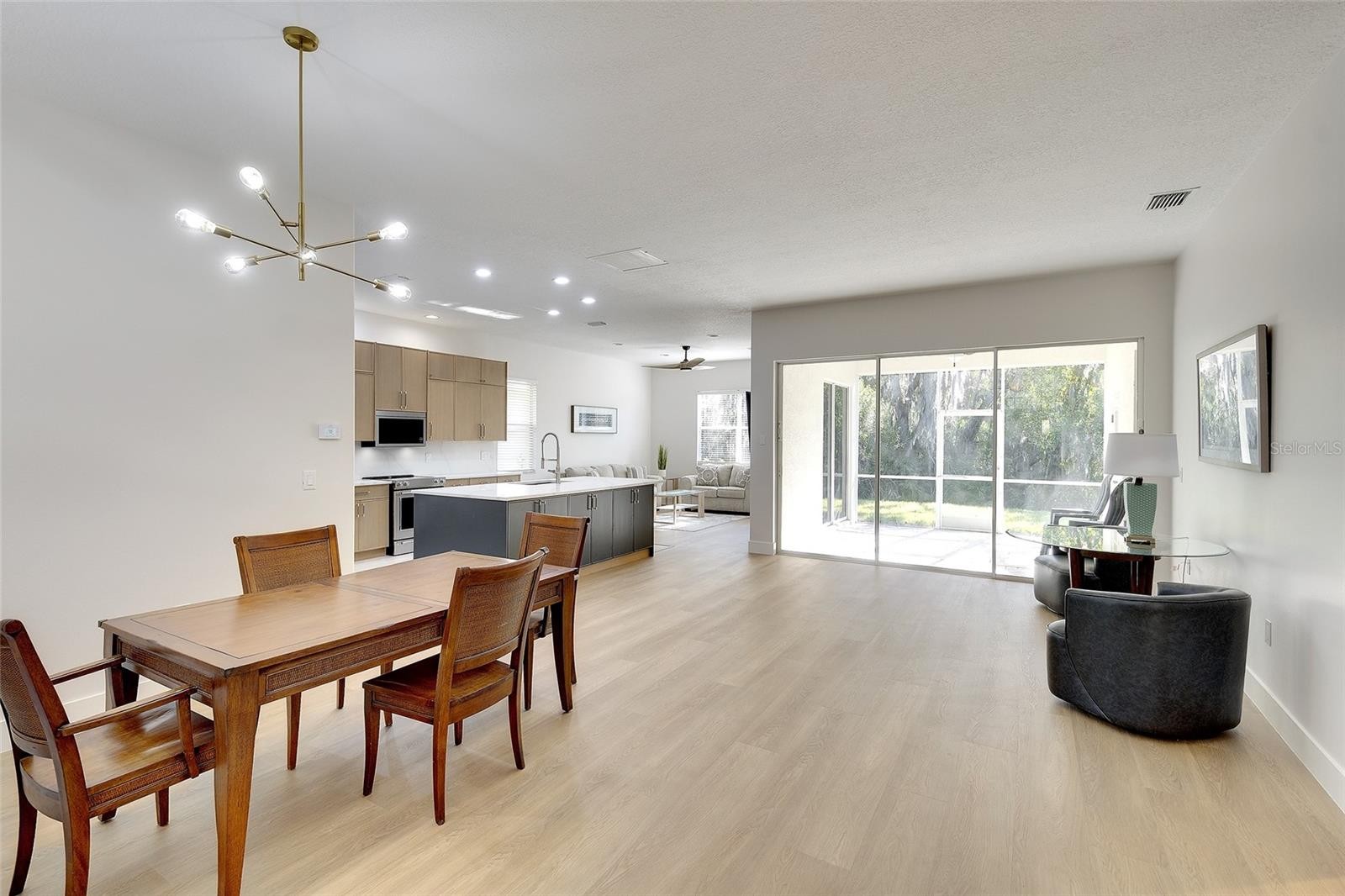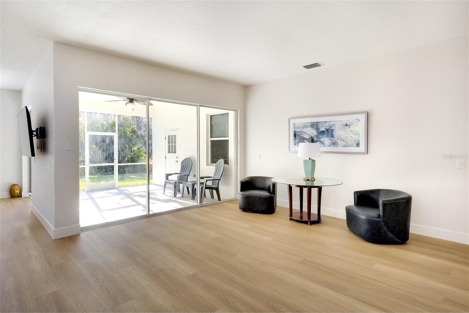 The Hammocks-- maintenance free area of River Wilderness Golf and Country Club-- home backs up to a preserve and is walking distance to the community pool. Three bedrooms--2 full bathrooms--living room--dining room--family room--kitchen with eating area--lanai and a 2 car garage. Home has been updated recently. Kitchen wall has been removed so now floor plan is very open--new LVB floors in the living room, dining room and family room. NEW tile roof June 2024--new refrigerator 2021--new dishwasher 2016-new washer and dryer 2011, new microwave 2013--new A/C 2018--new garbage disposal 2021--new garage door opener 2022--new hot water heater 2013. Golf, social athletic plus tennis and pickleball memberships are available but are not mandatory. A community boat ramp on the Manatee River is also available for residents. River Wilderness is located just a short drive from shopping and dining in the Lakewood Ranch and UTC area.
