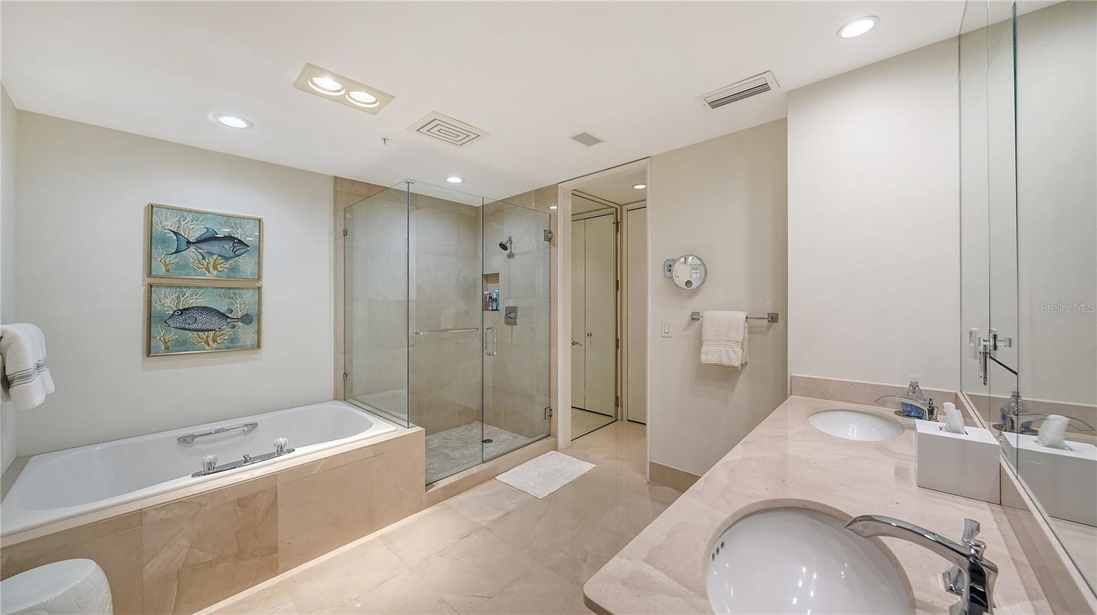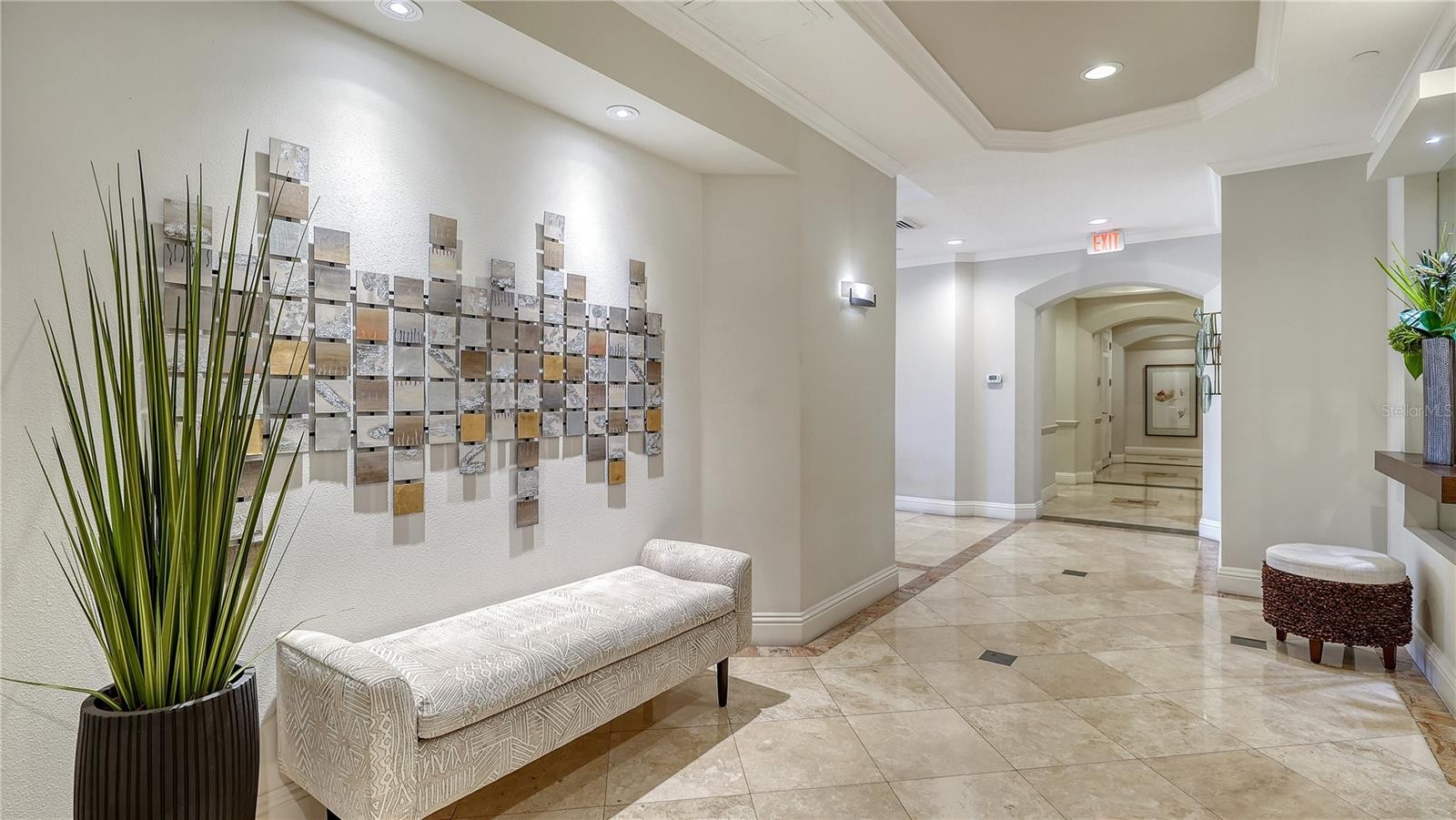 Perched on the eighth floor of Grand Bay’s Building 3, this updated Cayman residence captures sweeping Gulf-to-bay views that stretch across the Harbourside Golf Course, Sarasota Bay, downtown skyline, and the Gulf of Mexico. With more than 2,500 square feet of interior living space and multiple terraces, the residence offers a refined blend of comfort, flexibility, and panoramic scenery in one of Longboat Key’s premier gated communities. The open floor plan has been thoughtfully reimagined to enhance everyday living and entertaining. The current configuration features a spacious great room, a casual family room in place of the traditional dining area, and a dining room reallocated to the den/third bedroom—offering versatility that can easily be adapted to suit a buyer’s preferred layout. Walls of glass sliders frame expansive water, city, and golf course views while filling the interior with natural light. The kitchen has been refreshed in 2025 with new countertops, backsplash, sink, faucet, and disposal, complementing solid wood cabinetry, quartz surfaces, and a breakfast bar that connects seamlessly to the surrounding living spaces. This central hub is designed for both functionality and gathering, with clear sightlines to the terraces and beyond. Recent improvements throughout the residence provide both comfort and peace of mind, including two new HVAC systems (2023 and 2024), a renovated primary bath with updated shower (2022), a new powder room (2020), and oversized tile flooring extending throughout the interior and both terraces (2019). Additional enhancements include a stunning built-in living room wall unit with inset lighting, whole-house Sonos sound system, updated guest bath, and electric storm shutters protecting the waterfront openings. The primary suite is privately positioned and offers direct terrace access, a spacious walk-in closet, and a well-appointed en-suite marble bath with dual vanities, soaking tub, and separate shower. Guest accommodations are arranged in a split layout for privacy, including a generously sized second bedroom suite and a flexible third bedroom or office (currently being used as the dining room). Grand Bay residents enjoy a resort-style lifestyle within the gated Bay Isles community, featuring two heated swimming pools, Har-Tru tennis courts, a fitness center, clubhouse, and 24-hour guard-gated security. Ongoing community enhancements include newly updated elevators, refreshed clubhouse and pool furnishings, exterior painting (2025), and a new roof on Building 3, scheduled for completion in 2026—further elevating the long-term value of the community. Ownership also includes deeded access to the private Bay Isles Beach Club, offering Gulf-front parking, pavilions, and direct access to Longboat Key’s white-sand beaches. Ideally located on the south end of the island, Grand Bay is moments from Harbourside Golf Course, the Longboat Key Club marina, and waterfront dining. St. Armands Circle and downtown Sarasota are just minutes away, where boutique shopping, fine dining, theaters, galleries, and cultural venues define the region’s renowned coastal lifestyle. This residence presents a compelling opportunity to enjoy updated interiors, flexible living spaces, and expansive Gulf-to-bay views within one of Longboat Key’s most established and amenity-rich communities.