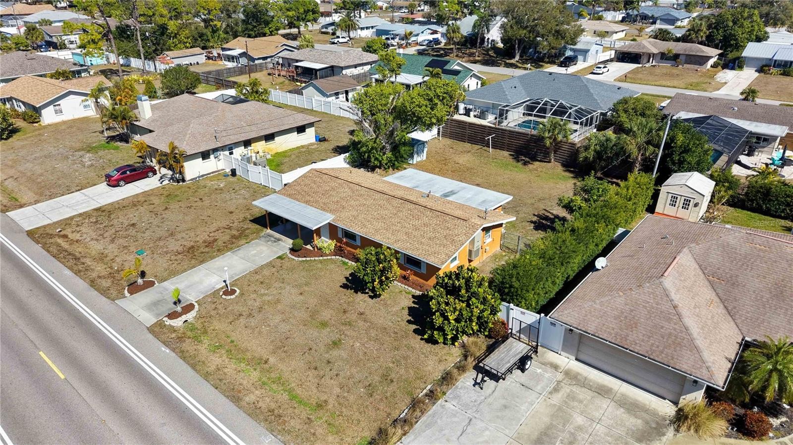 Welcome to 3035 Shamrock Dr, Venice, FL 34293, a solid block-constructed 3-bedroom, 2-bath home set on just under a quarter acre, offering space, privacy, and an unbeatable Venice location. Inside, you’ll find large tile flooring throughout, creating a clean, cohesive look and easy maintenance, while the kitchen features granite countertops, stainless steel appliances, and ample cabinetry for everyday functionality and entertaining. The split-bedroom layout provides comfort and flexibility, and an outdoor shower adds a practical touch for rinsing off after beach days or yard projects. Major improvements include impact-resistant windows and doors (2024), clothes washer & dryer (2024), AC (2025), roof (2020), electric panel (2021) and a water heater (2026), providing peace of mind and insurance-friendly features. Step outside to a fully fenced backyard with a storage shed and nearly quarter-acre footprint, offering privacy and endless potential — an ideal blank canvas for your future outdoor oasis with plenty of room to add a pool, spa, garden, or expanded entertaining space. Located in Flood Zone X with no HOA or CDD fees, this property offers flexibility, cost savings, and everyday ease of ownership. Enjoy being just 1 mile to Shamrock Park & Nature Center, featuring walking trails, tennis courts, playgrounds, and access to the Legacy Trail, and only 3 miles to historic Downtown Venice Island, where boutique shopping, waterfront dining, farmers markets, and Gulf Coast beaches create the lifestyle buyers dream about. Whether you’re seeking a full-time residence, seasonal retreat, or investment opportunity, this home combines location, updates, and outdoor potential in one of Venice’s most desirable areas. Schedule your private showing today and discover the lifestyle waiting for you.