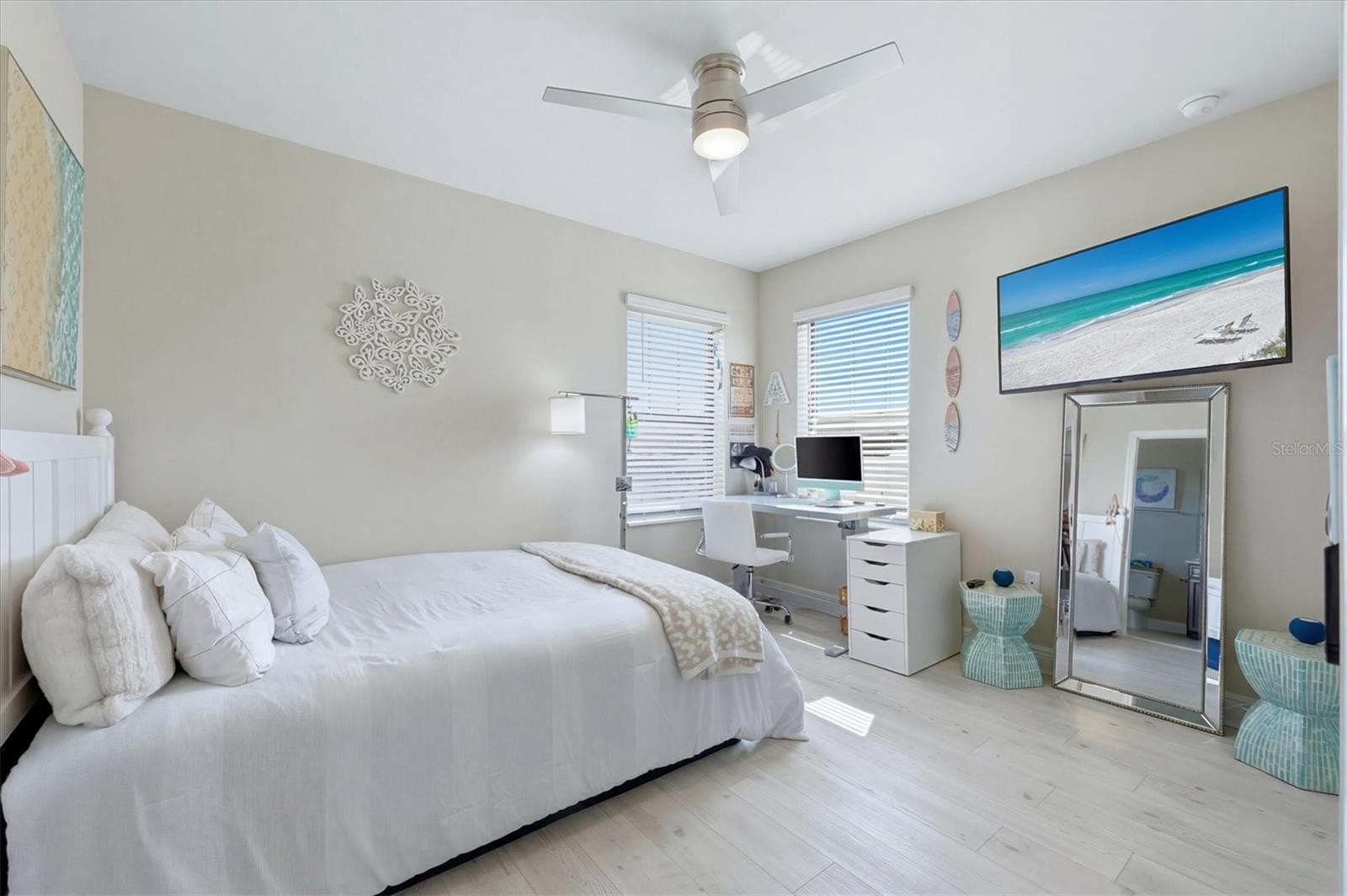 In the Cielo community of Nokomis, 304 Caserta Court offers over 3,000 square feet of living space with an open, easy-to-live-in layout. Close to Gulf beaches and downtown Venice, this 2023-built home offers the space and setting that define the Florida lifestyle. The first floor features an open layout with elegant tile flooring throughout, while the upstairs level is finished with plank flooring for a cohesive look. The kitchen is designed for daily use and gathering, with a gas range, stainless steel appliances, quartz countertops, a large island and a walk-in pantry with built-in storage, complemented by gold-toned fixtures. An enclosed den or study with glass French doors, along with a spacious laundry room and a convenient half bath, provides flexible space for work or daily living. The primary suite is on the main floor and includes a walk-in closet with custom built-ins, along with a private bath featuring dual vanities and a walk-in shower. Closet systems are installed throughout the home for added organization. Upstairs, a secondary family room is complemented by a separate alcove that could be adapted for a dry bar, creating a flexible layout well suited for a private guest area or multigenerational living. The second level includes an en-suite bedroom, along with two additional bedrooms and a full bath, offering separation and privacy. Natural light fills the home, while plantation shutters frame the sliding glass doors. The garage features an epoxy-coated floor, and the expanded paver driveway provides additional parking. The home is on a cul-de-sac and overlooks a lush preserve, offering added privacy, while the covered porch provides a comfortable outdoor space. The fenced backyard faces west, bringing in afternoon light and sunset views, with room to add a pool if desired. Cielo is a boutique community of 71 homes, known for its Northern Italian-inspired design. Amenities include sidewalks, a playground and a dog park. The neighborhood is minutes from gulf beaches, dining and shopping in downtown Venice, with easy access to Interstate 75. The property is within the Venice High School district, known for its academic and athletic programs. This is your place in the Florida sun!