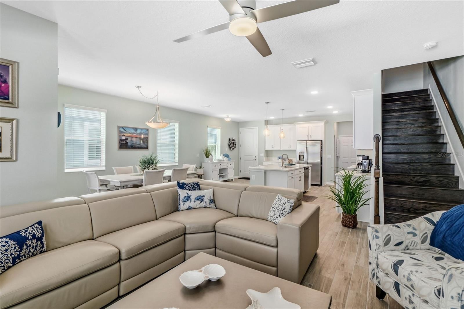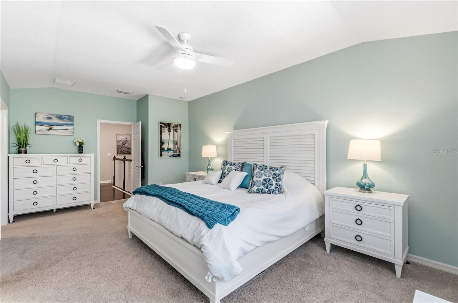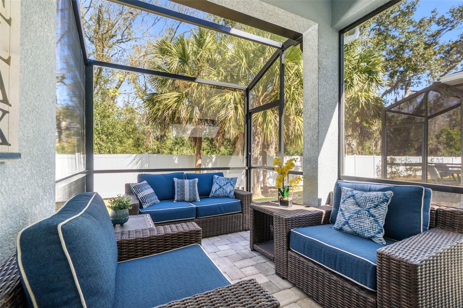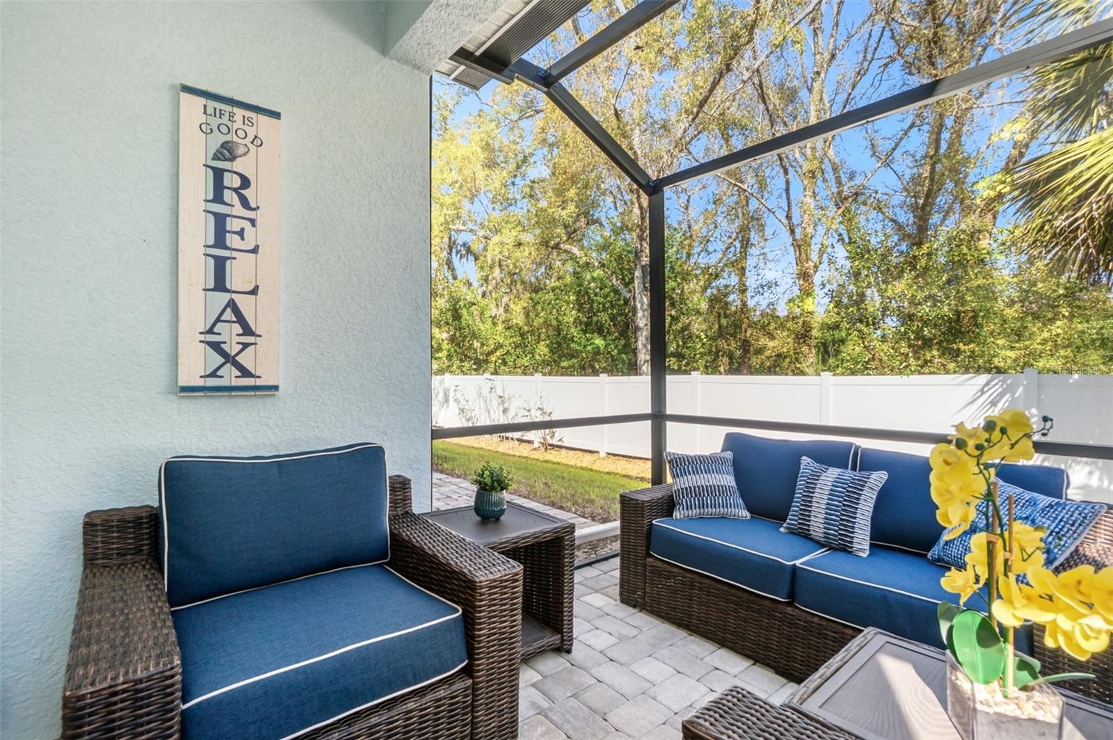 This beautifully maintained 3-bedroom, 2.5-bath home features an open-concept floor plan that feels fresh, bright, and seamlessly blends modern design with coastal charm—inviting from the moment you step inside. The entry, lined with a paver driveway and sidewalks, leads into a home that offers both style and functionality. The spacious, light-filled living area flows effortlessly into the dining and kitchen spaces, making it ideal for entertaining. The dream kitchen boasts a stunning breakfast island, gleaming finishes, and ample seating space for hosting friends and family. Relax on the screened and covered lanai, perfect for unwinding while enjoying the tranquil setting and mature trees that provide privacy. Upstairs, you'll find a versatile loft space suitable for a media room, office, or play area. The split floor plan offers guest bedrooms and a guest bath designed for comfort and privacy. The luxurious primary suite features a spacious walk-in closet and a spa-inspired bathroom. Additional conveniences include an epoxy-coated garage floor and a large interior laundry room. Located just a short walk to the community pool, this home offers the perfect balance of resort-style living and everyday practicality. Whether hosting gatherings or enjoying quiet evenings on the lanai, this property truly has it all. Don’t miss this rare opportunity to own a move-in-ready coastal retreat in a peaceful, private setting!
