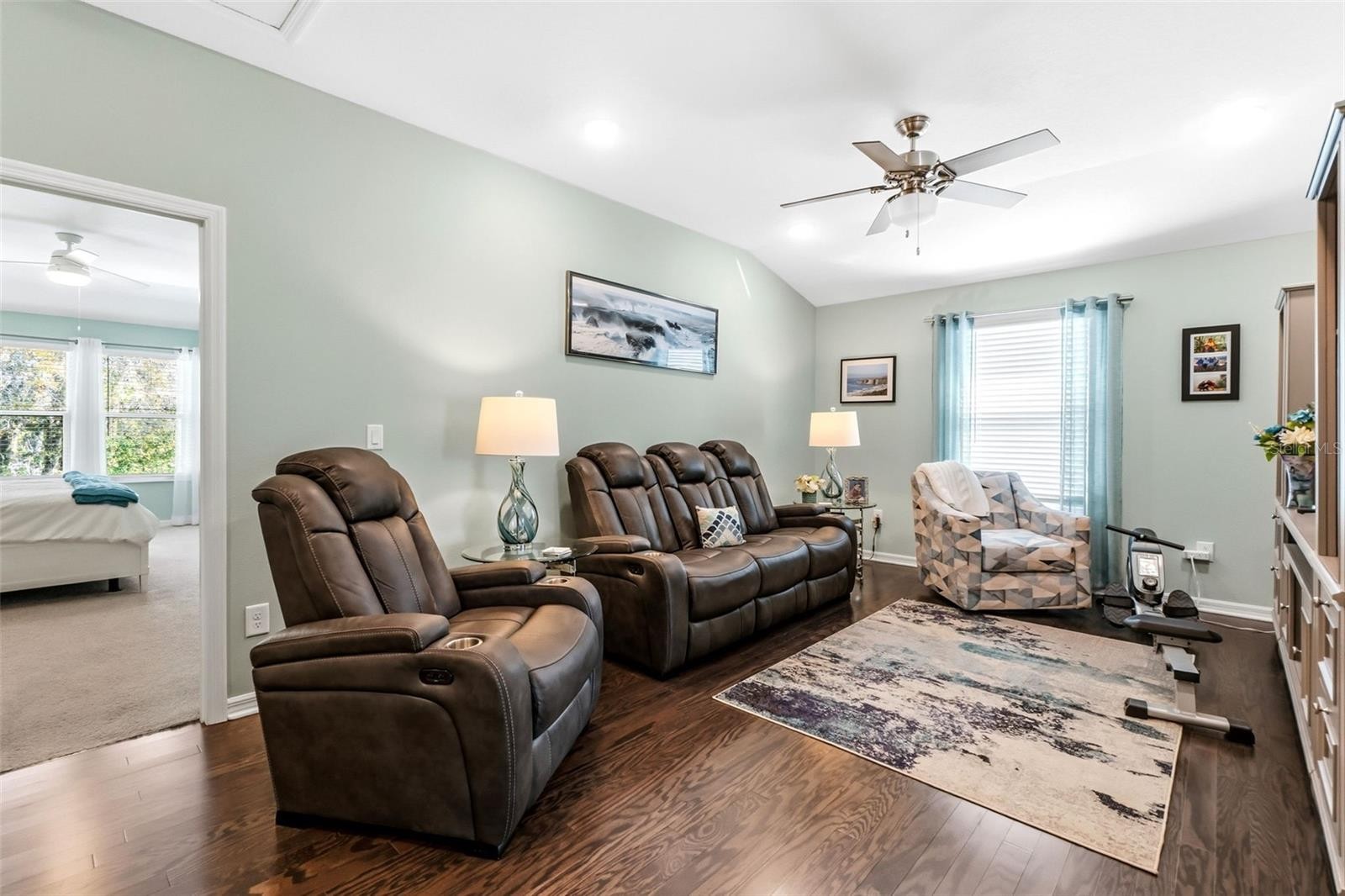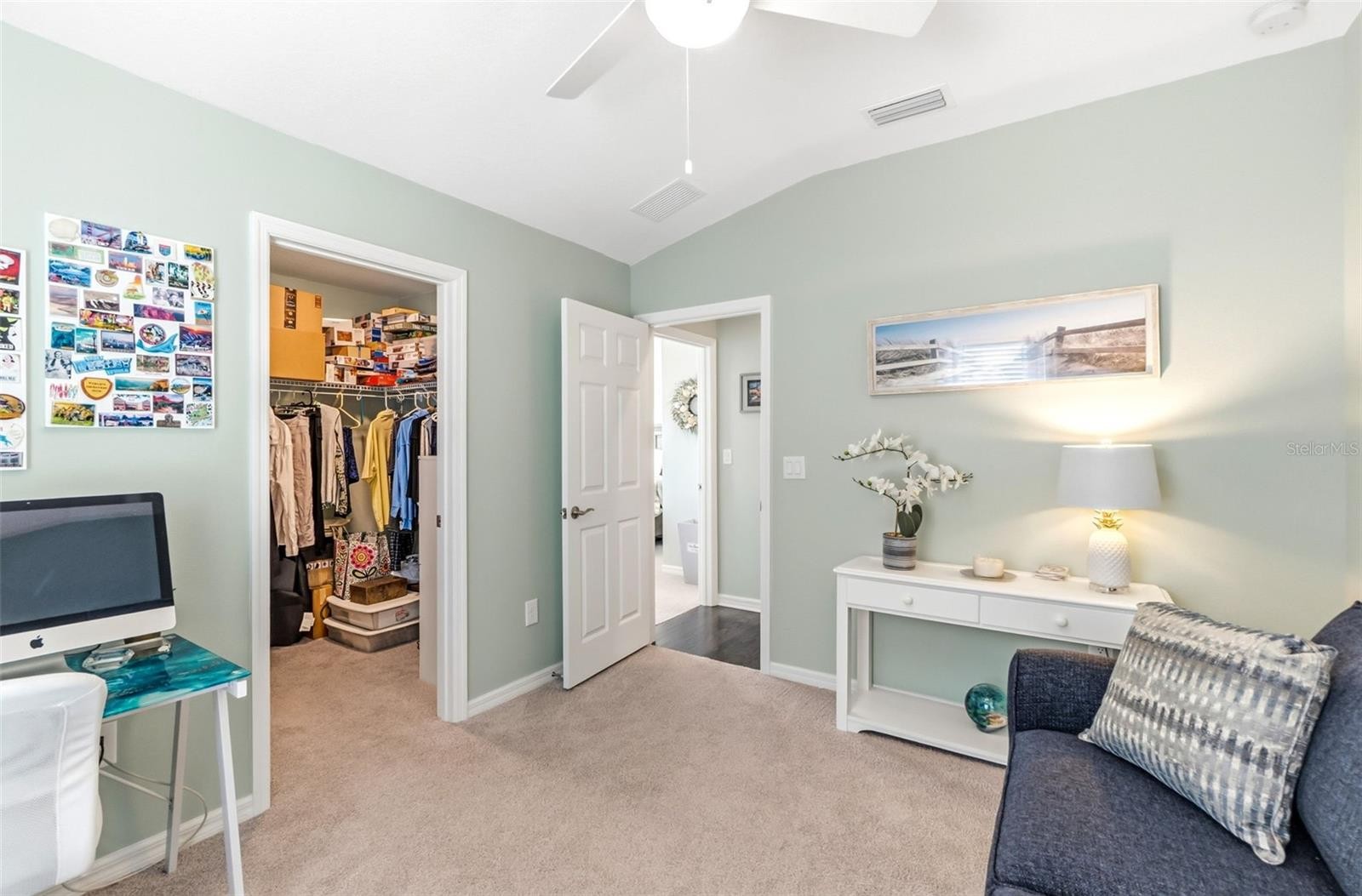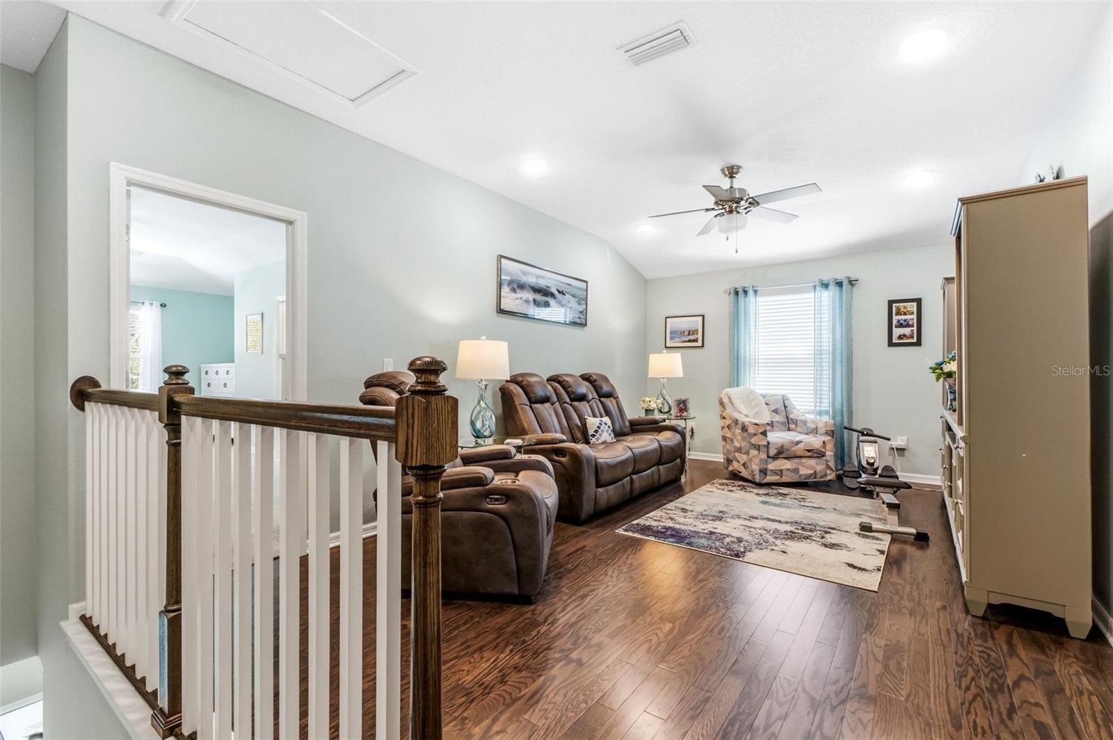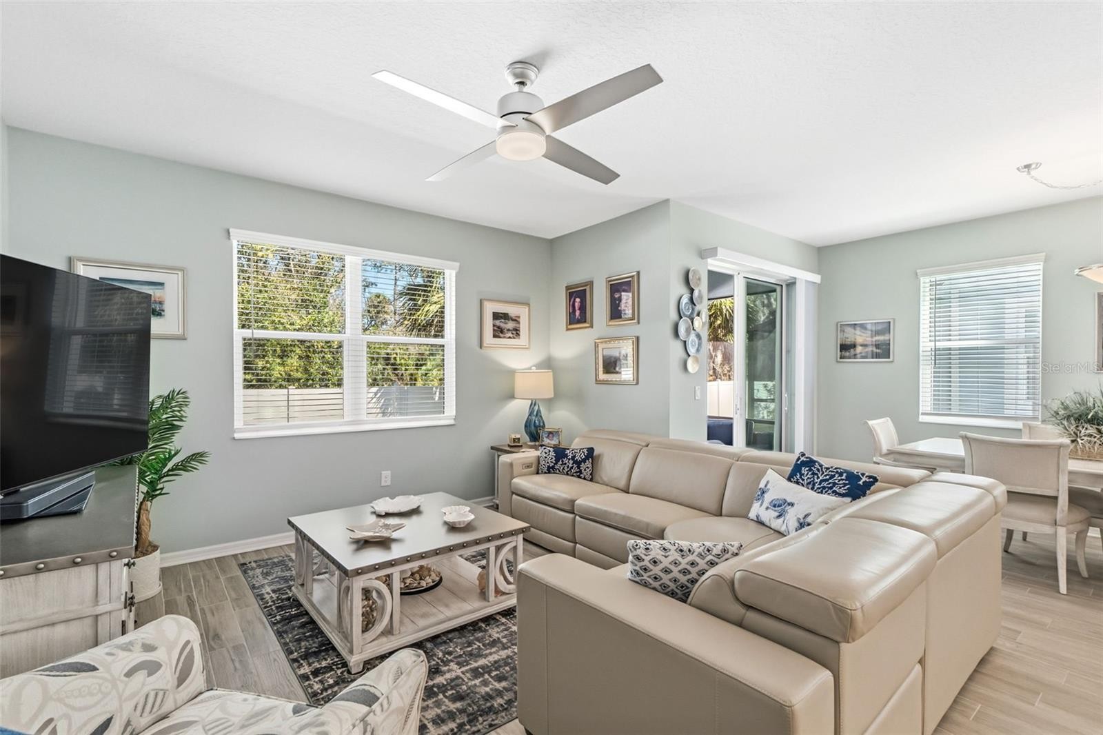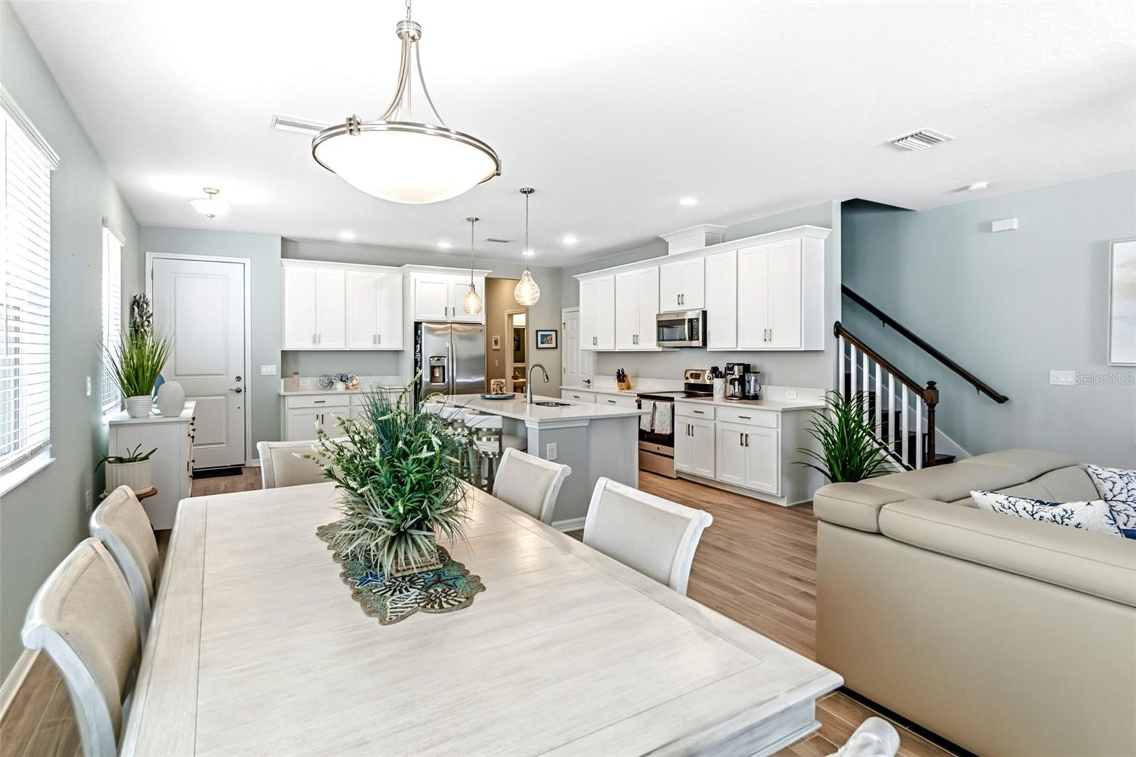 This beautifully maintained 3-bedroom, 2.5-bath home features an open-concept floor plan that feels fresh, bright, and seamlessly blends modern design with coastal charm—inviting from the moment you step inside. The entry, lined with a paver driveway and sidewalks, leads into a home that offers both style and functionality. The spacious, light-filled living area flows effortlessly into the dining and kitchen spaces, making it ideal for entertaining. The dream kitchen boasts a stunning breakfast island, gleaming finishes, and ample seating space for hosting friends and family. Relax on the screened and covered lanai, perfect for unwinding while enjoying the tranquil setting and mature trees that provide privacy. Upstairs, you'll find a versatile loft space suitable for a media room, office, or play area. The split floor plan offers guest bedrooms and a guest bath designed for comfort and privacy. The luxurious primary suite features a spacious walk-in closet and a spa-inspired bathroom. Additional conveniences include an epoxy-coated garage floor and a large interior laundry room. Located just a short walk to the community pool, this home offers the perfect balance of resort-style living and everyday practicality. Whether hosting gatherings or enjoying quiet evenings on the lanai, this property truly has it all. Don’t miss this rare opportunity to own a move-in-ready coastal retreat in a peaceful, private setting!