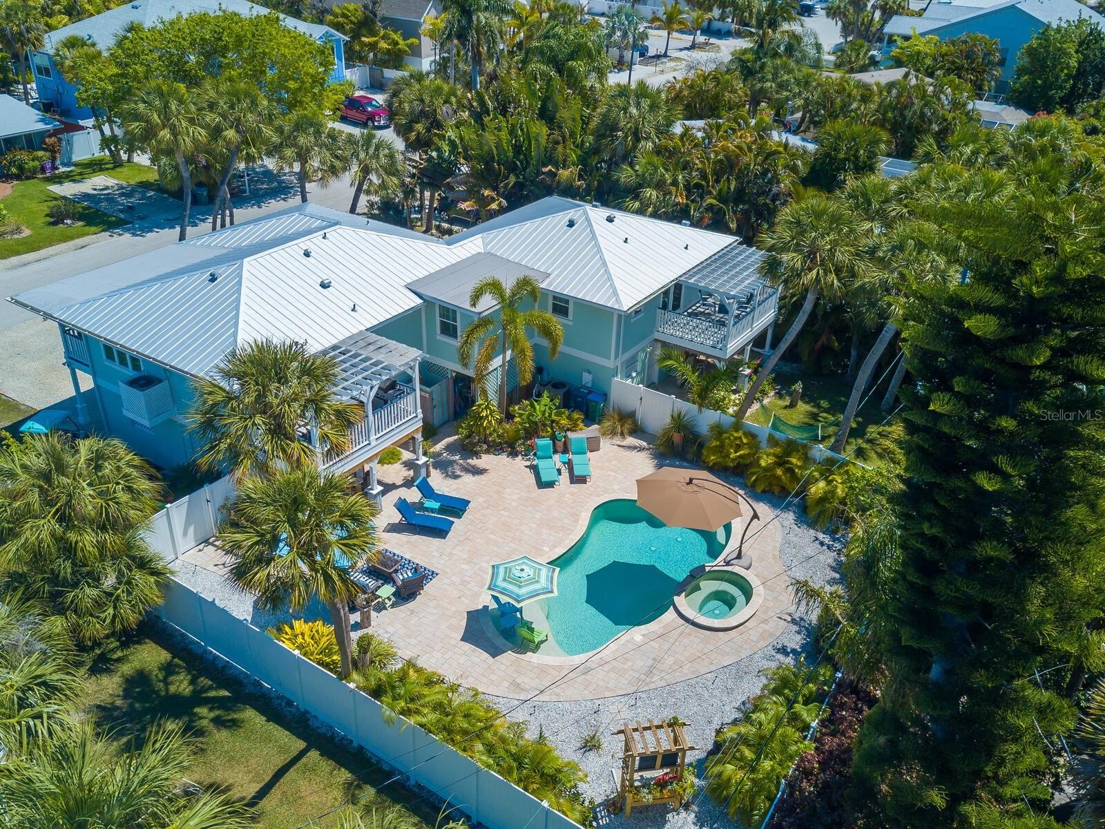 Available for a 4.1.26 move in. The rental rates are as follows: Off Season (May through December): $3,500 per week or $6,000 per month. In Season (January through April): $3,500 per week or $9,000 per month. The vacation home is beautifully renovated and elevated, with three bedrooms and two bathrooms. It features a large pool and spa in a tropical backyard oasis. The interior has a lovely coastal design and an open concept floor plan. Sliding doors open to the balconies from the main living areas, allowing you to dine, relax, and enjoy the surroundings. The property includes a dedicated laundry room on the ground level for added convenience. It is situated on a spacious 10,080 square foot lot. The location is in the heart of Holmes Beach, just 5 minutes away from the pristine beaches of Anna Maria Island. It is also within short walking distance to the trolley stop, shopping, and local restaurants, offering easy access to amenities and attractions. The rental price includes all utilities, but there are additional charges to be applied: Exit Cleaning Fee: $300. Resort Tax of 13% for State & County (Applies to Total Rent + Cleaning Fee). It seems like a fantastic opportunity to experience the wonderful lifestyle that Anna Maria Island has to offer with its Gulf waters and island attractions.