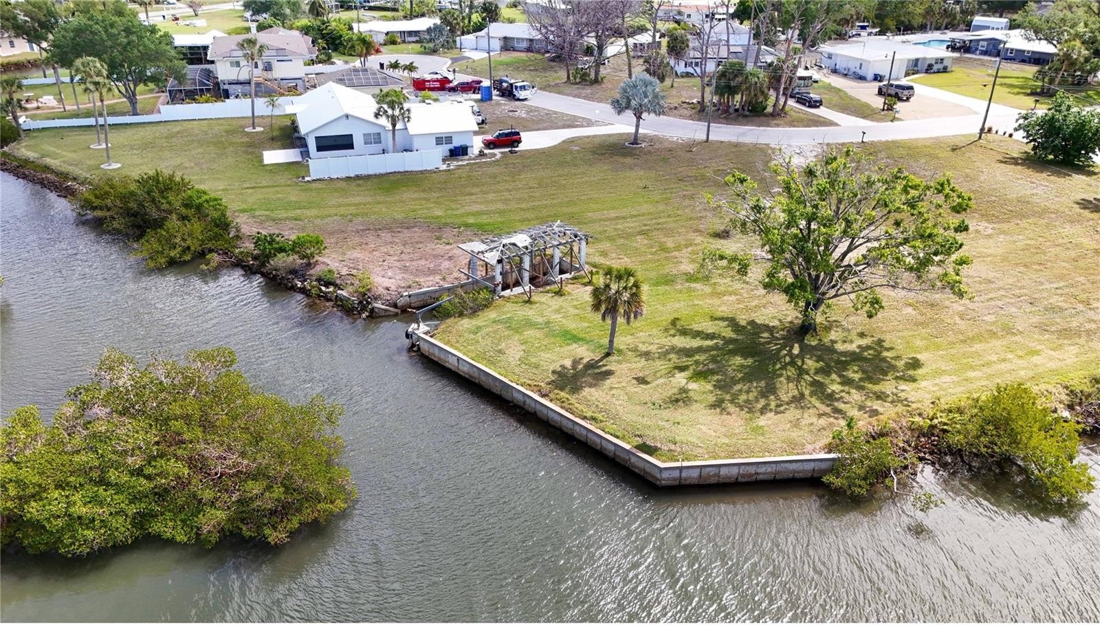 Rare opportunity to build a private coastal estate on this exceptional 0.96-acre dual-waterfront homesite in Nokomis, offering expansive frontage on both Dona Bay and Marypeg Channel. With approximately 380 feet of combined waterfront, this oversized parcel provides outstanding scale, privacy, and flexibility for a custom residence, guest accommodations, pool and resort-style outdoor living. A unique highlight is the existing grandfathered boat slip structure on the Dona Bay side. While currently in basic condition, the structure may give potential for a covered boat slip configuration, subject to buyer verification of all regulations and requirements—an increasingly rare advantage for waterfront properties. Ideal for boating enthusiasts, the property gives direct water access and the opportunity to create a true waterfront lifestyle. Its size and configuration allow for a thoughtfully designed homesite that maximizes views, outdoor space, and privacy. Conveniently located just minutes from Gulf beaches, dining, and amenities, this property combines seclusion with accessibility in one of the area’s most desirable coastal locations. Nearly one acre with dual waterfront exposure and an existing boat slip structure is a rare offering. Buyers are encouraged to verify all details and possibilities. This is a unique opportunity to secure a premium waterfront homesite with long-term upside. $990,000