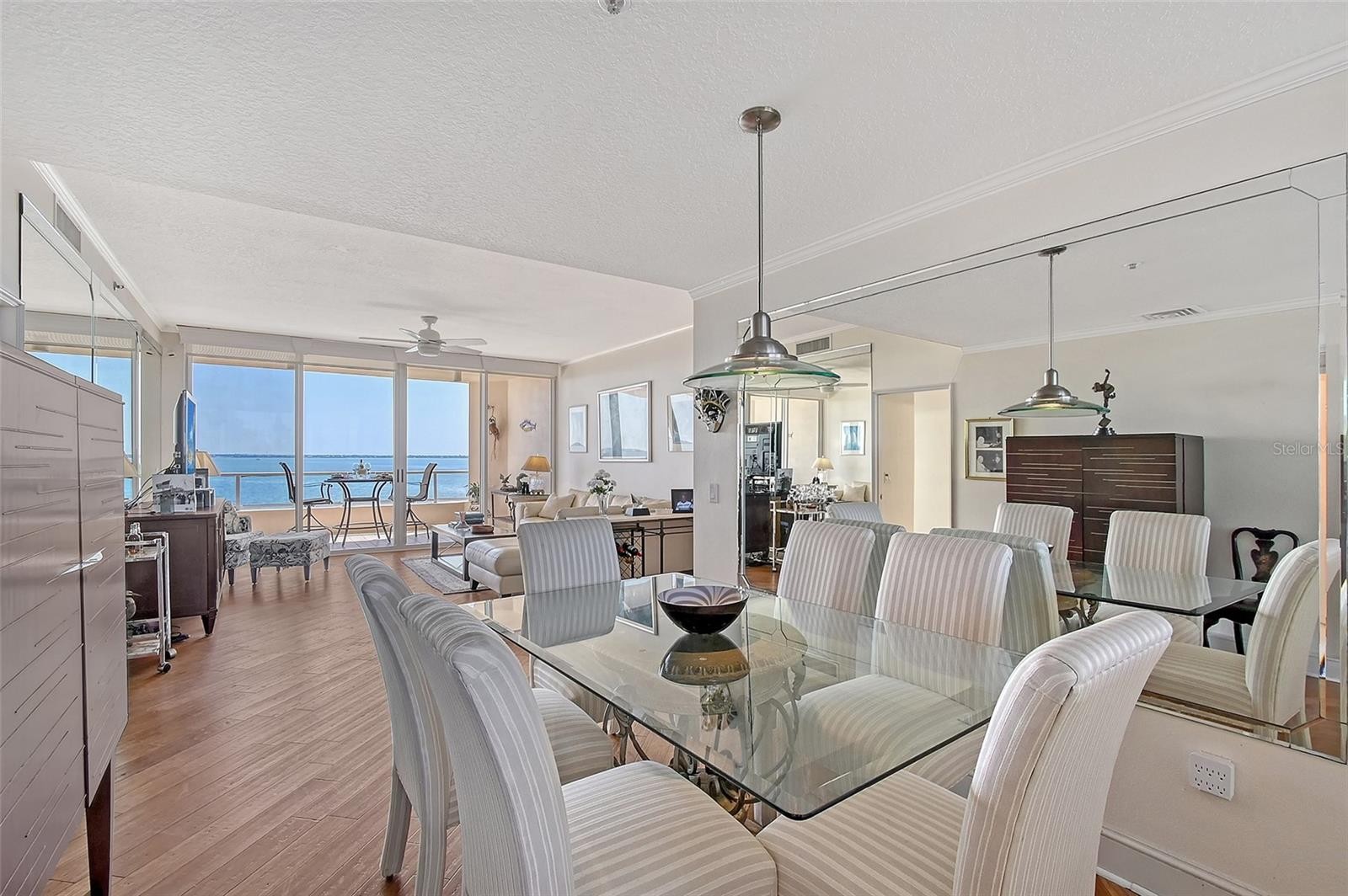 Penthouse-Level Condo at Grand Bay – Longboat Key Experience luxury living in this beautifully appointed penthouse-level residence at Grand Bay, located behind the gates of Bay Isles on Longboat Key. This spacious 2-bedroom, 2-bath condo offers an open and airy floor plan with stunning east-to-west exposure, capturing both sunrise and sunset from dual balconies with sweeping views of Sarasota Bay, the city skyline, and the golf course. As a penthouse-level home, it also features an added ceiling height of one foot, enhancing the sense of space and light throughout. Both bedrooms are en-suite, with the primary suite featuring dual closets (including one walk-in) and luxurious marble vanities in the bath. The home showcases elegant bamboo flooring in the main living area, marble tile in the bathrooms, and plush carpet in the bedrooms. Floor-to-ceiling sliding glass doors at both ends of the unit flood the space with natural light. The chef’s kitchen is equipped with a Sub-Zero refrigerator, Blue Pearl granite countertops, a breakfast bar, and an in-kitchen laundry room. Recent upgrades include a new AC system in 2021 and a water heater in 2020. The residence also comes with two deeded parking spaces and a private garage-level storage locker, and it is offered furnished for immediate enjoyment. Grand Bay’s exceptional amenities include 24-hour guard-gated Bay Isles entry, an additional Grand Bay gated entrance, secure coded lobby access, on-site property management, and a pet-friendly environment. Residents enjoy two resort-style pools, a state-of-the-art fitness center, tennis courts, and membership to the Bay Isles Beach Club. There are no current or pending assessments. Enjoy the perfect blend of luxury, privacy, and convenience in one of Longboat Key’s premier waterfront communities.