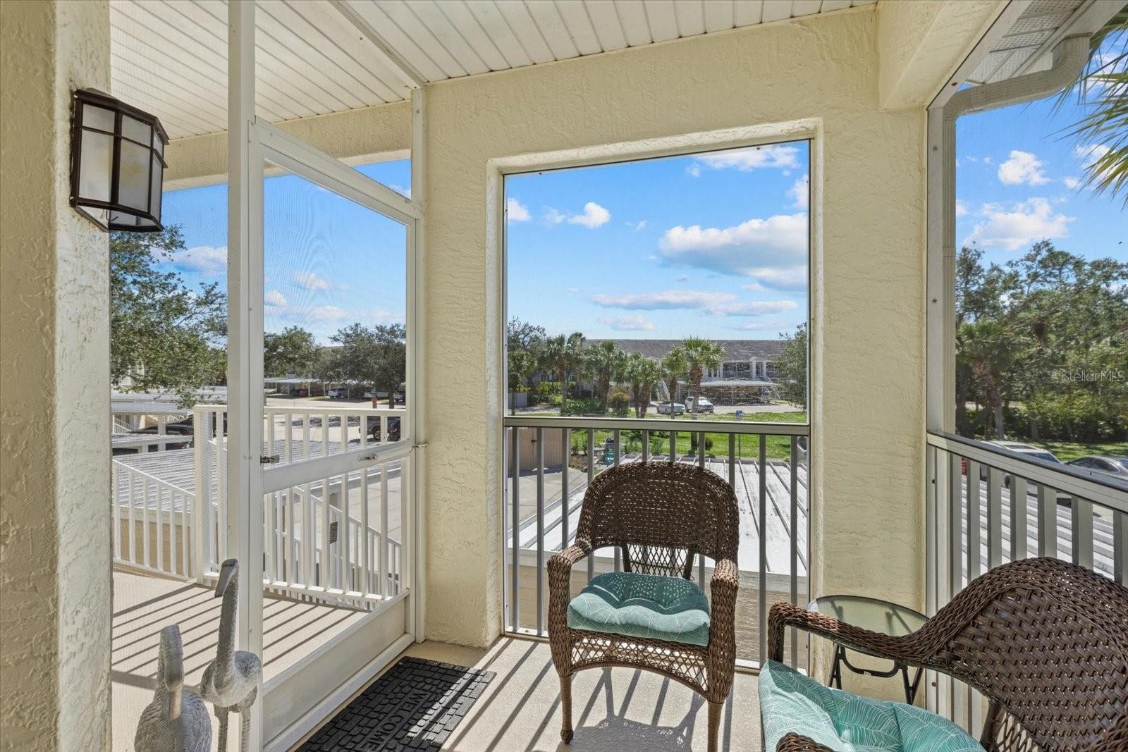 Price Improvement – Now Offered at $249,999 | Turnkey Furnished This beautifully maintained second-floor condo in West Preserve at Waterside Village is now offered at $249,999 and sold turnkey furnished—an outstanding opportunity for a move-in-ready Florida residence or seasonal retreat. This light and bright home features 2 bedrooms, 2 full baths, and a versatile den/flex room, with vaulted ceilings and an open, inviting floor plan. The updated kitchen includes granite countertops, tile backsplash, soft-close cabinetry with pantry, an eat-in dining area, breakfast bar, and a built-in desk/counter space ideal for work or hobbies. The living and dining areas open to an enclosed lanai upgraded with aluminum doors and acrylic windows, providing approximately 120 sq. ft. of additional living space with peaceful preserve views—perfect for year-round enjoyment. A screened front porch offers another welcoming outdoor space to relax and enjoy the Florida lifestyle. The primary suite features a walk-in closet and an ensuite bath with dual vanities, a walk-in shower, and tile flooring. The den/office includes built-in desk and cabinetry and can easily function as a guest room. The guest bedroom and full bath may be closed off to create a private suite for visitors. Additional highlights include in-unit laundry with a brand-new washer and dryer (2025), covered parking with private storage, and ample guest parking. Residents of Waterside Village enjoy resort-style amenities including three heated pools, tennis and pickleball courts, shuffleboard, bocce ball, and a clubhouse. Conveniently located just minutes from Venice beaches, historic downtown Venice, shopping, and dining. Now priced at $249,999 and offered turnkey furnished—schedule your private showing today.