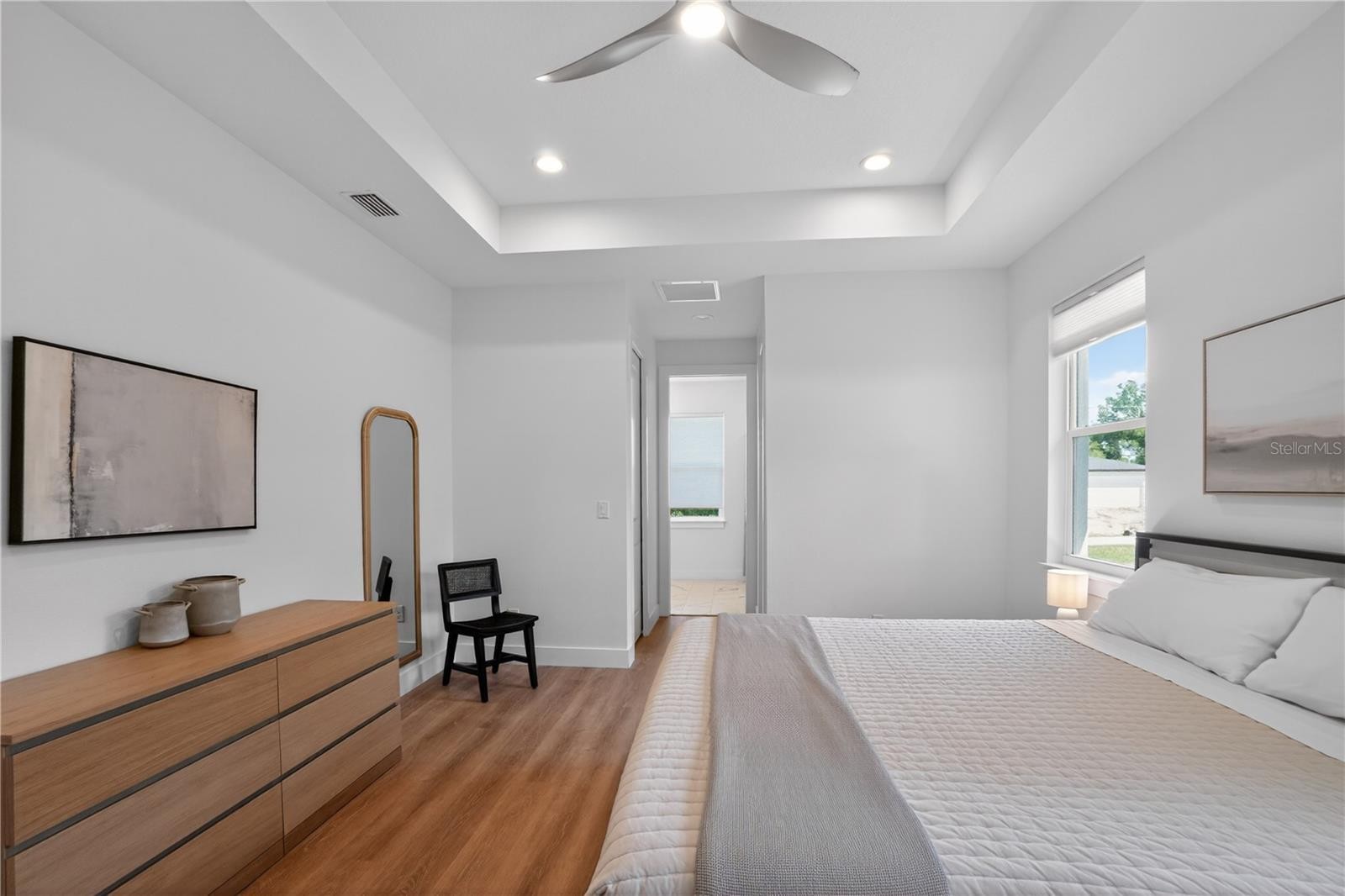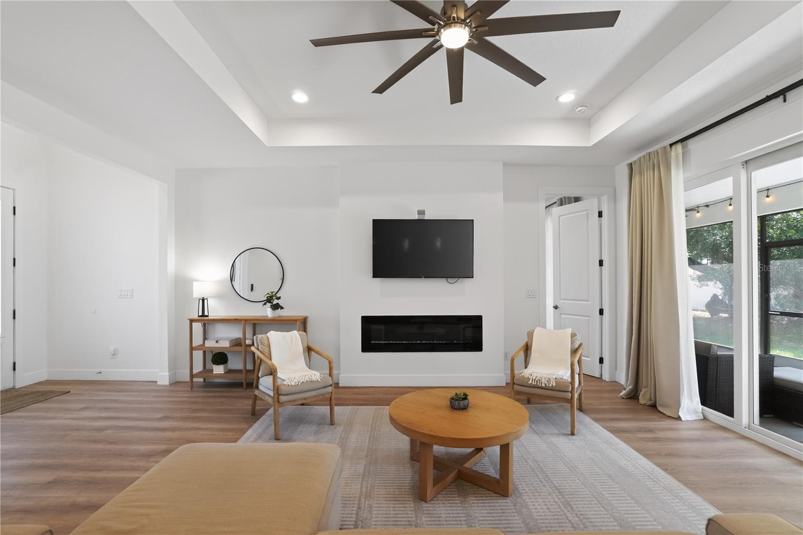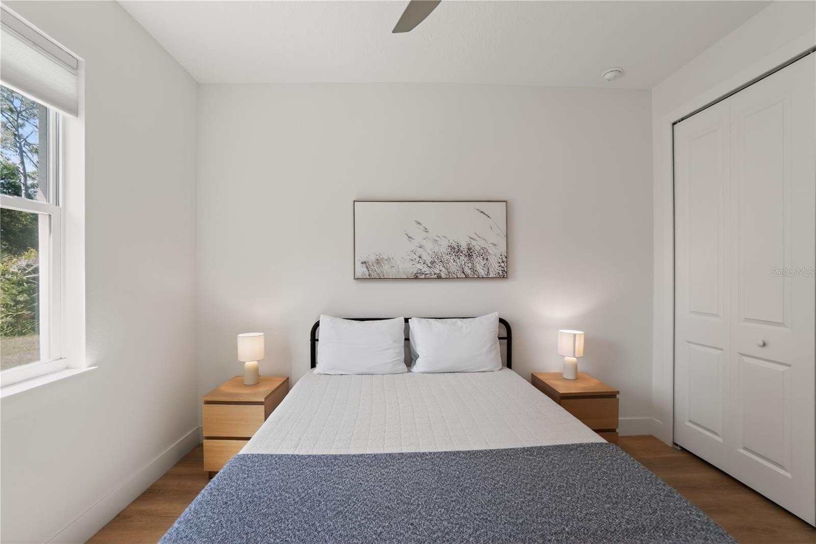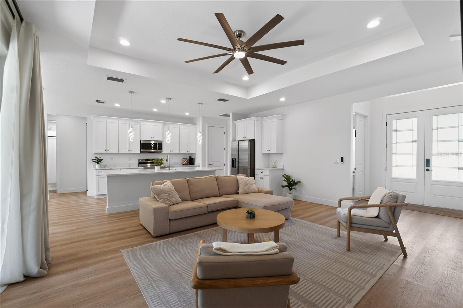One or more photo(s) has been virtually staged. Built in 2022, this beautifully designed, fully furnished home offers a true move-in-ready experience with exceptional style and comfort throughout. Every room has been thoughtfully curated with tasteful décor, and the property is being sold complete with everything you see—from furniture to dishes, silverware, and everyday essentials—allowing for a seamless transition into your new home. As you enter, a dedicated office is conveniently located to the right, perfect for working from home or creating a quiet retreat. Moving further inside, the home opens into a welcoming living area featuring an open-concept layout, 10-foot flat ceilings, and a large sliding glass door that fills the space with natural light and connects effortlessly to the outdoor lanai. The spacious kitchen is both functional and elegant, offering abundant cabinetry, a pantry, and a generous dining area designed to accommodate family gatherings and entertaining with ease. The split-bedroom floor plan enhances comfort and privacy, with the primary suite situated on one side of the home and the additional bedrooms on the other. The primary suite is bright and inviting, complete with sliding glass doors, ample windows, and a walk-in closet. The en-suite bathroom features dual sinks and a beautifully tiled shower. On the opposite side of the home, you’ll find two additional bedrooms and a second full bathroom, ideal for family or guests. Additional highlights include a separate laundry room with a window, cabinetry, and a utility sink, as well as a two-car garage with a convenient side access door. The home is equipped with impact-resistant windows and doors, providing both safety and energy efficiency, while allowing natural light to flow throughout the interior. Step outside to enjoy the screened-in (caged) lanai, already furnished for relaxation and outdoor living. Ideally located just a short drive from the Gulf Coast’s finest beaches, as well as fishing, boating, and a variety of recreational activities, this home offers the perfect blend of luxury, convenience, and Florida lifestyle. This unique and beautifully appointed home is truly ready for you—schedule your private showing and experience it in person.