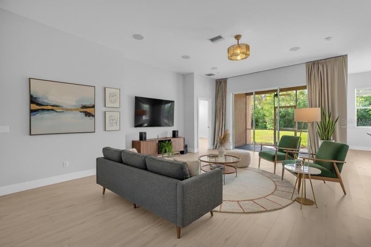 Under contract-accepting backup offers. One or more photo(s) has been virtually staged. Short Sale. Welcome to this beautifully renovated home in the highly desirable gated community of Tatum Ridge. Filled with natural light, the home features soaring ceilings, newer lighting throughout, and luxury vinyl plank flooring for a modern, airy feel. The chef-inspired kitchen shines with SS appliances, updated countertops, soft-close cabinetry, and an oversized island with a breakfast bar that seamlessly connects to the main living area. Recent upgrades provide peace of mind, including a 2022 roof, HVAC, and 2021 water heater. Both bathrooms have been updated with designer tile, vanities, and elegant finishes. The spacious primary suite includes two large closets and a private, spa-like bath. A split-bedroom layout ensures privacy, with two additional bedrooms, and a guest bath, plus a versatile bonus room ideal for a den or office. Step outside to a peaceful lanai overlooking a tranquil pond, perfect for relaxing or entertaining. Best of all, this home is not in a flood zone, so no flood insurance is required! The generous backyard offers ample space to add a pool and create your dream outdoor oasis. A two-car garage and included lawn care through the HOA add to the convenience. Tatum Ridge provides quick access to major highways, airports, golf courses, and the renowned Celery Fields. Enjoy being minutes from Sarasota’s world-class beaches, UTC shopping and dining, Benderson Park, Lakewood Ranch, and more. Don’t miss the chance to make this meticulously updated home yours!
