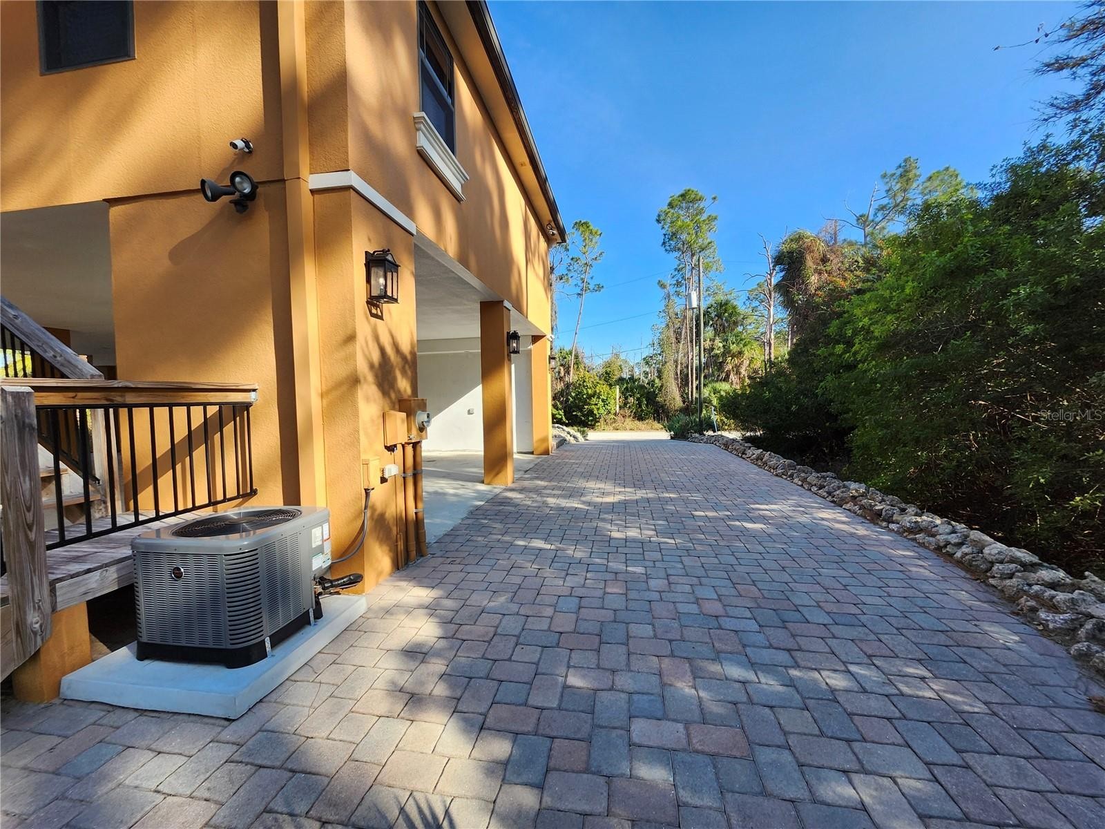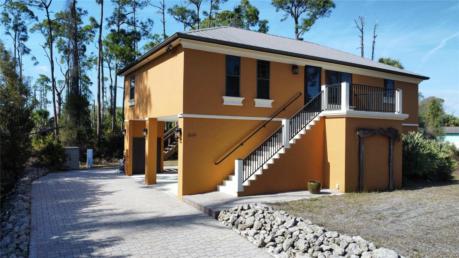 Beautiful Custom Built 2 Bed 2 Bath with a Den or possible 3rd Bedroom. This home has been beautifully designed with attention to detail. As you drive up to the property you will notice the 45 foot brick paver driveway that is leveled off, perfect for the Motor Home or RV(home offers water and electric hook ups). As you enter the home you will notice the gorgeous arches, high ceilings, canned lighting throughout, solid wood core doors, crown molding, pocket doors, brand new vinyl plank flooring through the entire home. Home is pre-wired for central vacuum, Impact windows and sliders in all rooms. The front screen door is locking and Impact Resistant. Spray Foam Insulation throughout the home and allows for low utility bills and keeps an even temp in the home. The living room is large and is adorned in crown molding and new flooring. The kitchen offers granite counters, solid wood maple cabinets with wired under mount lighting, new faucets and shut off valves, pendant and canned lighting, breakfast bar, large stainless steel sink with separate sink that has the disposal. The owner’s suite offers a large room with private sliders to the 12x30 rear deck, crown molding, new floors, en suite offers dual sinks with new faucets and shut off valves, walk in shower with dual heads, soaking tub and walk-in closet with attic access for extra storage. The second bedroom is very roomy and has new flooring as well. Guest bathroom is large in size and has granite tops, new faucets and shut off valves and a walk in shower. The Den or 3rd Bedroom is adorned with crown molding and large in size. The rear deck is 12x30, shaded in the mornings, has new trex decking, wood stairs and allows for beautiful sunset evenings. There is a large storage area in the parking garage, A 500 gallon rain barrel is connected to the gutter system, new a/c unit, metal roof, there is parking for up to 6 vehicles or you could potentially enclose for more useable space with proper permitting. Possibilities are endless and this may be good for a business set up or someone who owns a lot of cars. Home sits on 4 lots that total almost a full acre of land. Plenty of room to add a designer pool. Owner has another 4 other lots that can be purchased also to combine with this home. This is a one owner home and has been well cared for. Home is not in a flood zone! You can be to some of the best beaches Florida has to offer within 35 minutes. Close to medical, shopping,dining, entertainment and more.