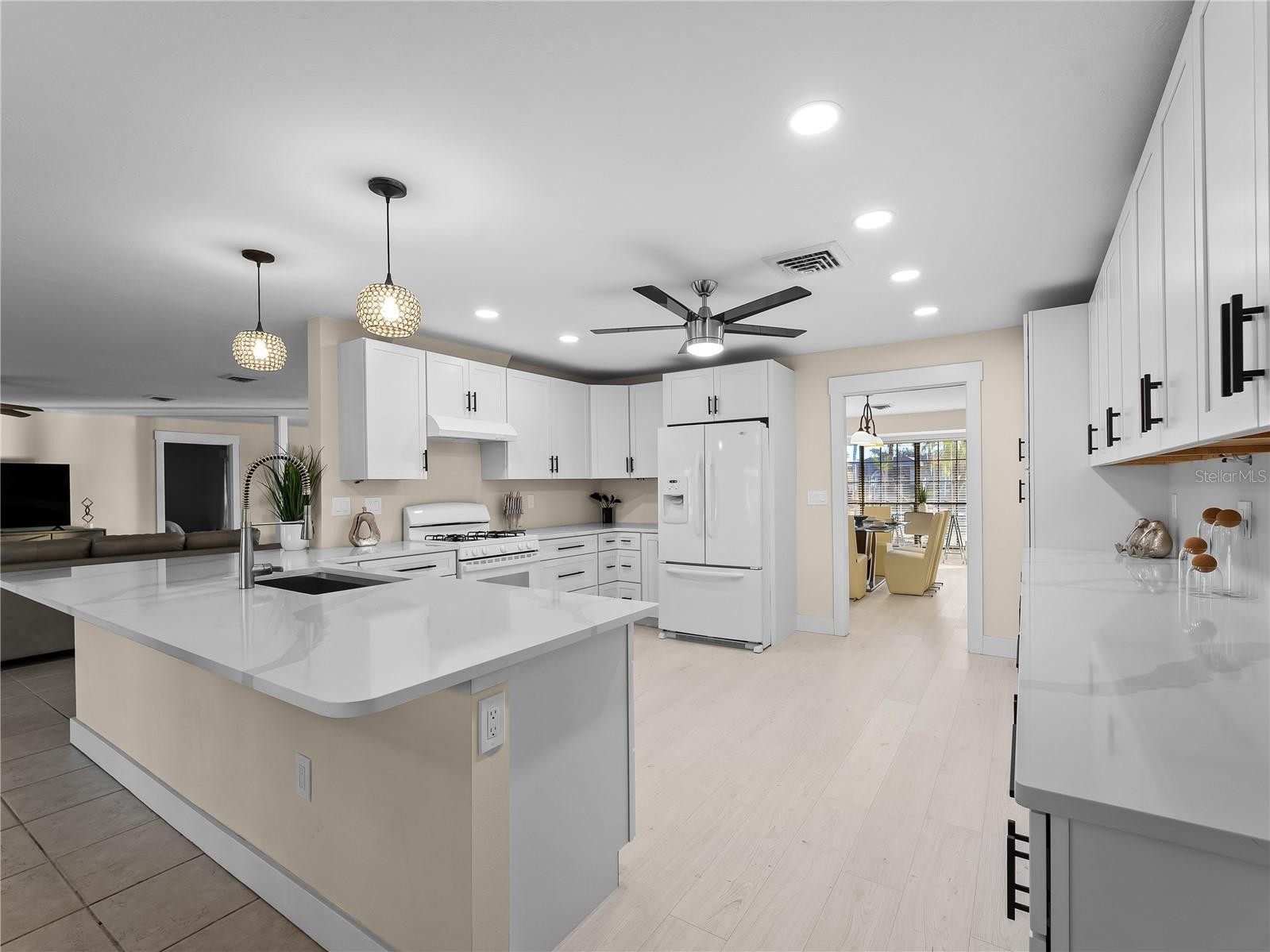 Welcome to a rare opportunity in the sought-after waterfront community of Englewood Isles. This generously sized 4-bedroom, 3-bath residence offering 3,838 square feet is all about space, location, and possibilities—and it’s priced to invite vision and creativity. Step inside to an open, light-filled floor plan designed for easy living and entertaining, enhanced by fresh interior and exterior paint. The recently remodeled main kitchen serves as the heart of the home, featuring modern finishes and updated cabinetry, while a large butler’s kitchen provides exceptional additional prep space, storage, and functionality—ideal for entertaining or extended stays. The first floor offers seamless flow between the kitchen, living, dining, and family rooms, all bathed in natural light and complemented by tranquil water views. One bedroom and a full bathroom are conveniently located on the first floor, perfect for guests or multigenerational living. Each bedroom is generously proportioned, including a spacious primary suite with ample closet space. Storage is plentiful throughout the home, providing a strong foundation for future updates and customization. Outdoors, the property truly shines. The pool area overlooks the water, offering a peaceful setting with endless potential to create your dream waterfront retreat. Boaters will appreciate the 100-foot seawall and direct Gulf access via one fixed bridge, a highly coveted feature in this community. Additional highlights include a brand-new roof (2024), new vinyl siding, a new irrigation well pump, a 2-car garage, and a quiet street with a minimal annual HOA fee. While the home is in need of some TLC, the price reflects this—making it an exceptional opportunity for buyers looking to add value and personalize a waterfront property in a prime location. Just minutes from Englewood’s world-famous beaches, waterfront dining, shopping, and entertainment, this home offers the perfect blend of lifestyle, location, and upside.