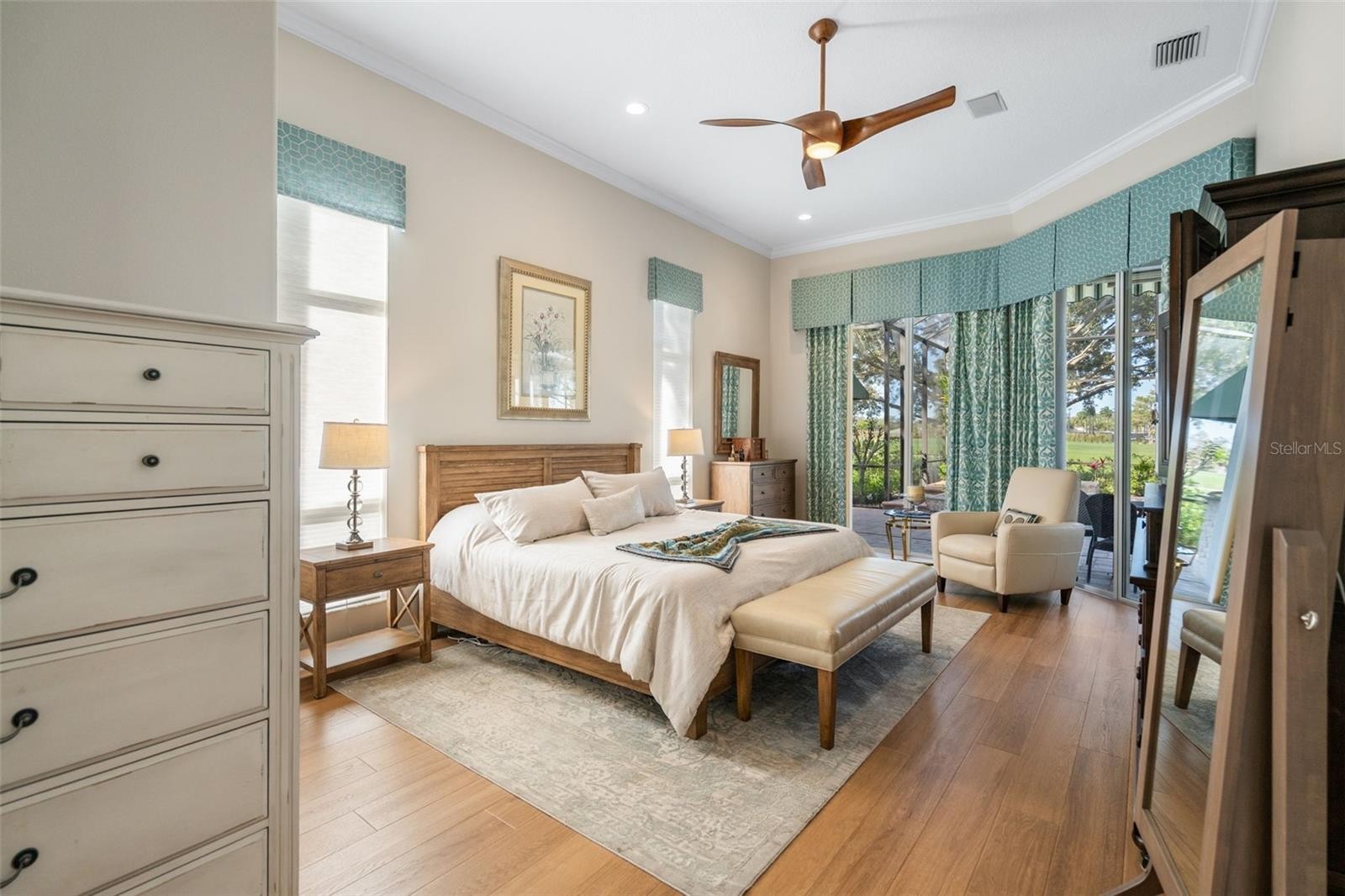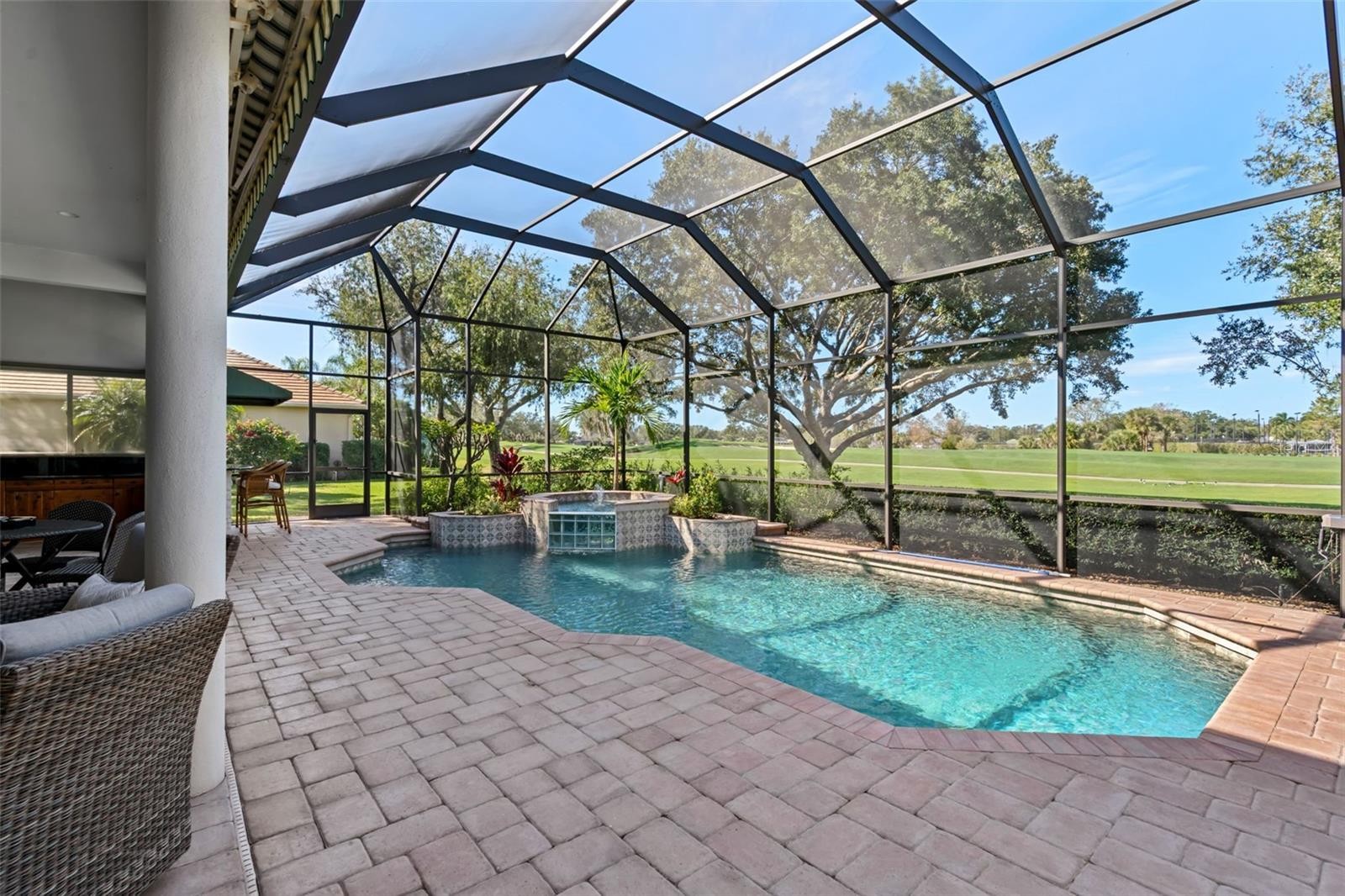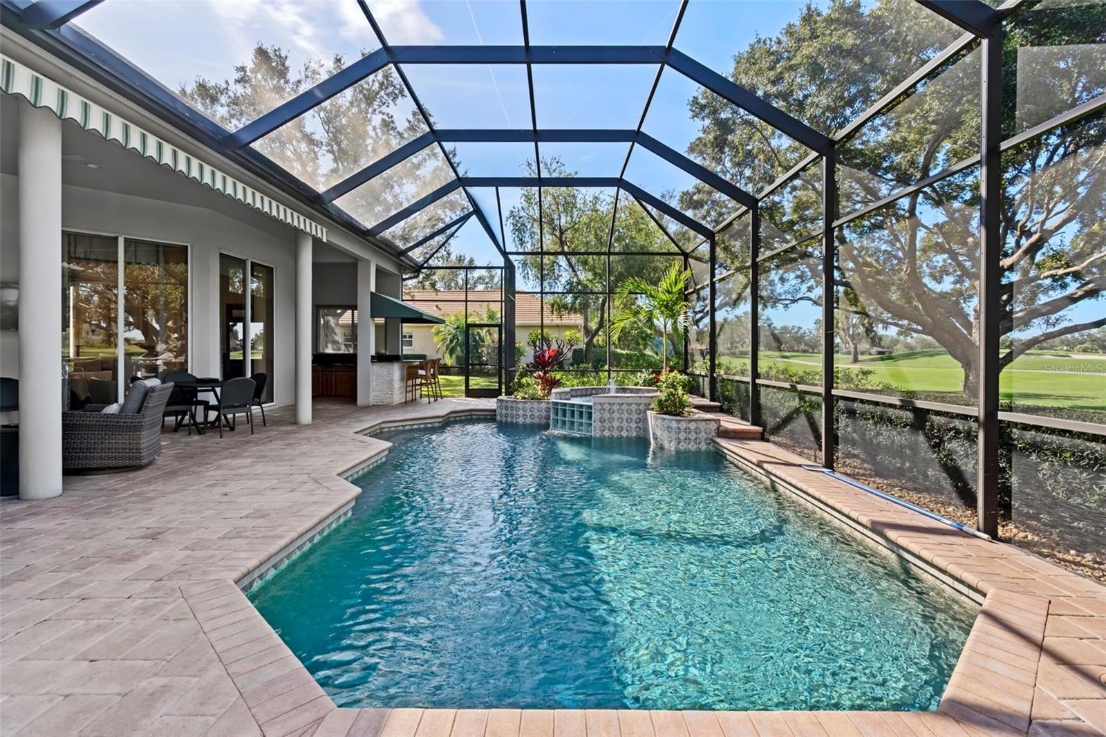 Schedule a private showing to tour this 4-bedroom, 4-bath pool home with an additional designated office/den. Strategically positioned on the Jones Course 8th fairway in Laurel Oak Estates, the residence offers 3,833 square feet of interior living space. Upon entering through the double leaded, beveled glass-door entry, you are immediately drawn to the home’s spacious layout, thoughtful design, and tasteful appointments. Highlights include high ceilings, abundant natural light, and a seamless flow between living spaces that enhance both comfort and livability. The kitchen features an upgraded appliance package, including a double oven, five-burner cooktop, Sub-Zero refrigerator, and drawer microwave. Designed as a natural gathering place for both entertaining and everyday living, the kitchen opens effortlessly to the outdoor living area, creating a true indoor-outdoor lifestyle. The lanai offers exceptional under-cover living and overlooks the saltwater heated pool, hot tub, and wet bar area, with convenient access to a dedicated full pool bath. Nestled in a premier Sarasota setting, this lifestyle community offers residents the option to join Laurel Oak Country Club, featuring two 18-hole championship golf courses, 12 Har-Tru tennis courts, six pickleball courts, and a vibrant calendar of social events. Beyond the club amenities, the community enjoys a prime location near upscale and everyday shopping, dining, entertainment, medical facilities, major roadways, and Sarasota’s renowned beaches providing an ideal blend of resort-style living and everyday convenience. Purchase a home in Laurel Oak Estates and receive priority placement on the country club waiting list. Schedule your private showing today.