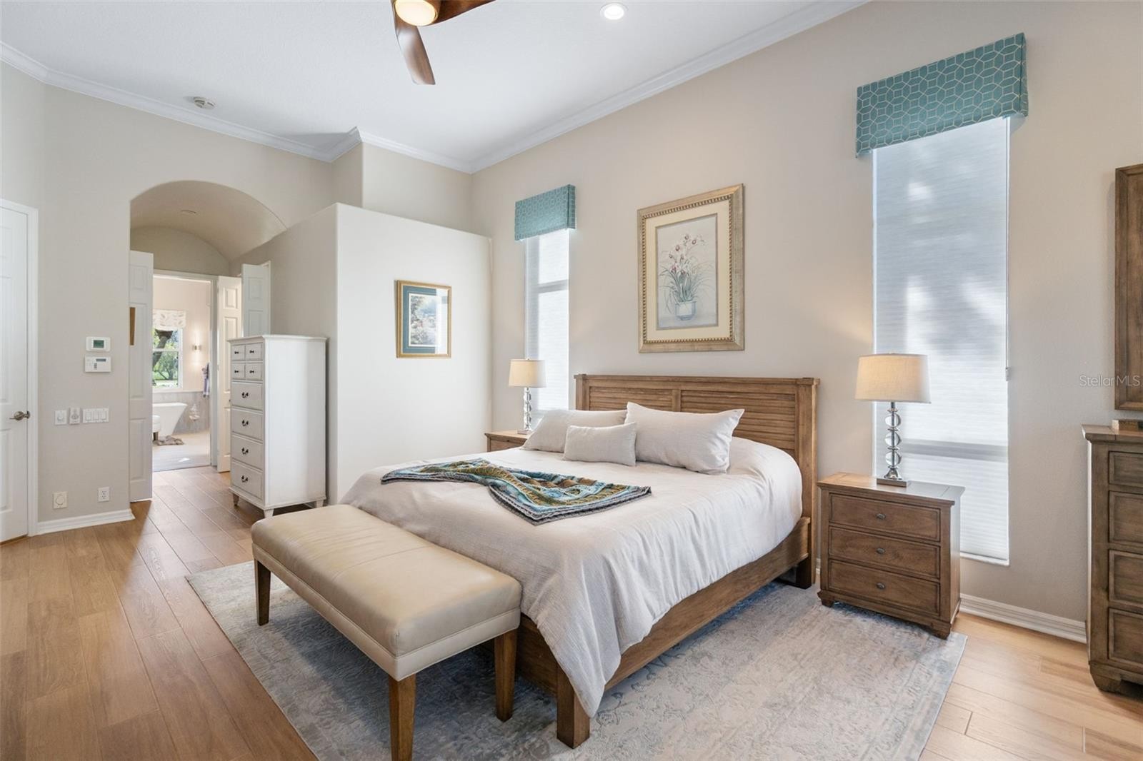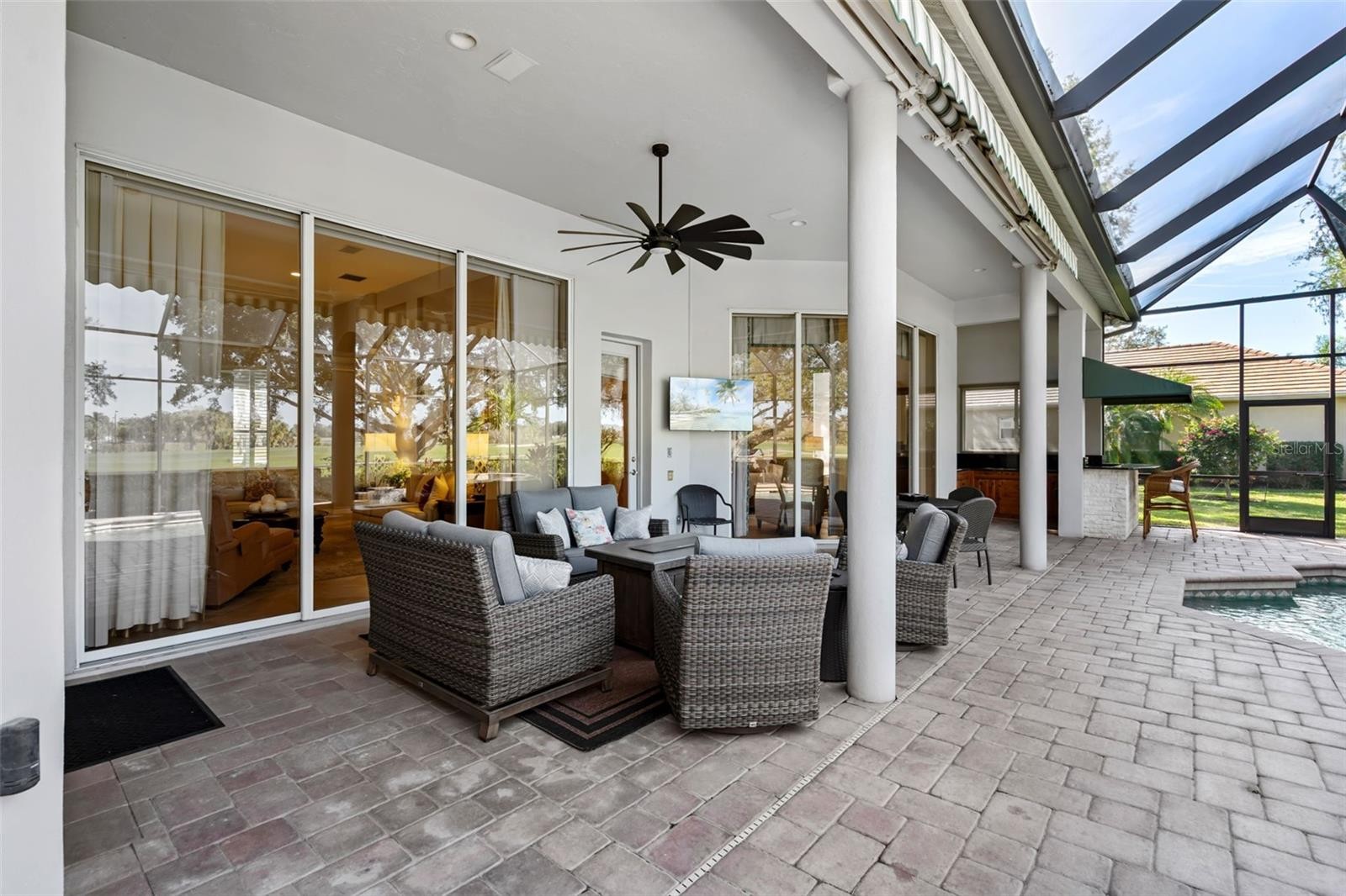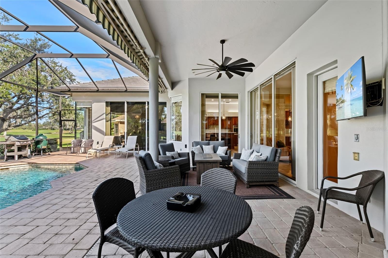 Schedule a private showing to tour this 4-bedroom, 4-bath pool home with an additional designated office/den. Strategically positioned on the Jones Course 8th fairway in Laurel Oak Estates, the residence offers 3,833 square feet of interior living space. Upon entering through the double leaded, beveled glass-door entry, you are immediately drawn to the home’s spacious layout, thoughtful design, and tasteful appointments. Highlights include high ceilings, abundant natural light, and a seamless flow between living spaces that enhance both comfort and livability. The kitchen features an upgraded appliance package, including a double oven, five-burner cooktop, Sub-Zero refrigerator, and drawer microwave. Designed as a natural gathering place for both entertaining and everyday living, the kitchen opens effortlessly to the outdoor living area, creating a true indoor-outdoor lifestyle. The lanai offers exceptional under-cover living and overlooks the saltwater heated pool, hot tub, and wet bar area, with convenient access to a dedicated full pool bath. Nestled in a premier Sarasota setting, this lifestyle community offers residents the option to join Laurel Oak Country Club, featuring two 18-hole championship golf courses, 12 Har-Tru tennis courts, six pickleball courts, and a vibrant calendar of social events. Beyond the club amenities, the community enjoys a prime location near upscale and everyday shopping, dining, entertainment, medical facilities, major roadways, and Sarasota’s renowned beaches providing an ideal blend of resort-style living and everyday convenience. Purchase a home in Laurel Oak Estates and receive priority placement on the country club waiting list. Schedule your private showing today.