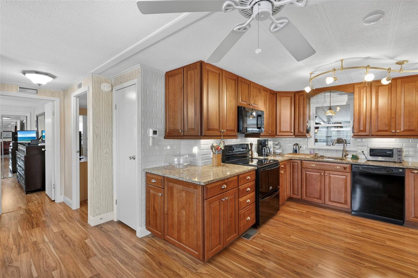 Step inside this stunningly remodeled two-bedroom, two-bath retreat and discover the lifestyle you’ve been dreaming of. The heart of the home is a chef’s kitchen—wood cabinets with soft-close doors and drawers, a pantry with roll-out shelves, and not one but two lazy susans for effortless organization. Imagine cooking with top-of-the-line appliances and granite countertops, then gathering in the dining area that flows seamlessly from the kitchen. Unwind in the spacious living room, complete with a charming bar area—perfect for entertaining. Slide open the door to your glass-enclosed Florida room, where a tiled floor and a wall A/C unit invite you to relax in comfort year-round. Step outside to the carport or enjoy the breeze in your private oasis. The primary bedroom is your personal sanctuary, featuring two double closets and a dedicated dressing area with a vanity and linen chest. Refresh in the adjacent bathroom’s luxurious walk-in shower. Guests will feel right at home with a bedroom boasting two double closets and a built-in chest, plus a guest bath with a sleek new vanity and a tub/shower combo. Modern comforts abound—central air, ceiling fans, new vinyl siding, hurricane straps for peace of mind, a new membrane roof (2022), sparkling windows, and charming Bahama shutters. The painted driveway leads to a spacious vinyl-enclosed lanai and a rear screened lanai, offering serene views of your private backyard and your very own dock—perfect for morning coffee or sunset relaxation. A large utility room with washer, dryer, deep sink, and plenty of storage completes the picture. This home is the perfect blend of style, comfort, and Florida living—ready for you to move in and make memories.Welcome to La Casa providing the ultimate lifestyle on Florida’s Gulf Coast. We are convenient for shopping, sightseeing, golfing, fishing, and boating, as well as the culture and elegance for which Southwest Florida is noted. Residents and visitors enjoy the warmth of Southwest Florida winters in a relaxed and unhurried environment far removed from the hustle of Florida’s east coast. You’ll be surrounded by hundreds of palms reaching for the sky and beautiful mature lush landscaping which demonstrates the utmost level of care our property receives from residents and management. Wireless Internet (Wi-Fi) is available at the Clubhouse, Activity Building, and Recreation Hall area where our pools & spas are located, so you can catch some rays while you catch up on your email. Sound enticing? La Casa is a friendly, family community. You will be away from the hustle and bustle except when you want to be part of it. When you leave our gates, North Port is only 1.5 miles from the city center, where you will find every kind of retail store and service you could need. Come for a visit to this self-contained oasis and see for yourself why La Casa is the ultimate destination for both snowbirds and year-round residents.