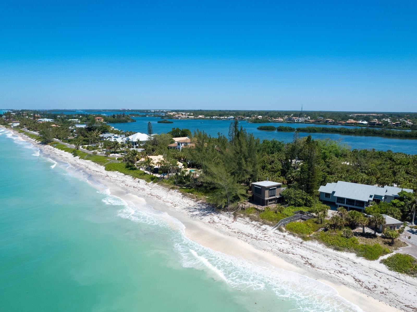 Gulf-front serenity on Casey Key. On the desirable shores of Casey Key, this quintessential beachfront retreat, Osmyrrah, is a sanctuary of tranquility, designed for relaxed, organic living with an intimate connection to the sea. With private, pristine beachfront and panoramic Gulf views, you’ll be immersed in dazzling sunsets, soft white sands and the soothing rhythm of the waves every single day. Savor nature’s splendor in nearly 3,000 square feet of elevated living space, where an open-concept layout, soaring ceilings and walls of glass bring the outside in. The expansive great room and dining area seamlessly flow into a generous kitchen with panoramic Gulf views, ideal for entertaining or pensive mornings. Go onto the open deck for grilling and sunning or unwind on the large screened-in porch while warm breezes and golden skies set the mood. The gulf-front primary suite is a private oasis with lofty ceilings, stunning water views, a luxurious renovated bath and a spacious walk-in closet. A guest bedroom, full bath and dedicated office complete the north wing. On the south side, you’ll find a second large primary suite with its bath and walk-in closet, along with a full laundry room. Guests will delight in their own charming 360-square-foot guest house, complete with a private entrance, high ceilings, living area and full bath, near the beach and a refreshing outdoor shower. Additional highlights include a two-car garage, new HVAC (2025), roof (2019) and an expansive under-home storage area, ideal for kayaks, paddleboards and all your coastal toys. A private walkway leads to your beachfront deck and down to the sand, offering an experience akin to a Caribbean island escape. The property also includes a three-foot deeded bay access easement and a reciprocal beach access easement for the bayside neighbor. On this serene 8-mile barrier island of fewer than 400 homes, you’ll enjoy rare privacy, natural beauty and Gulf ownership to the mean high-water line. South of the iconic Blackburn Point swing bridge, you’re just minutes from golf, dining, shopping, top-rated schools - including nationally acclaimed Pine View School - and vibrant cultural destinations in Sarasota and Venice. If you’ve dreamed of living where sunsets paint the sky, dolphins dance at dawn and every day ends with your toes in the sand, Osmyrrah awaits.