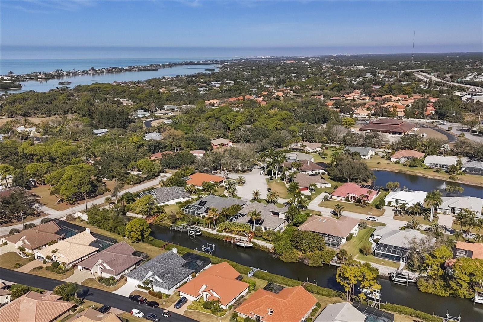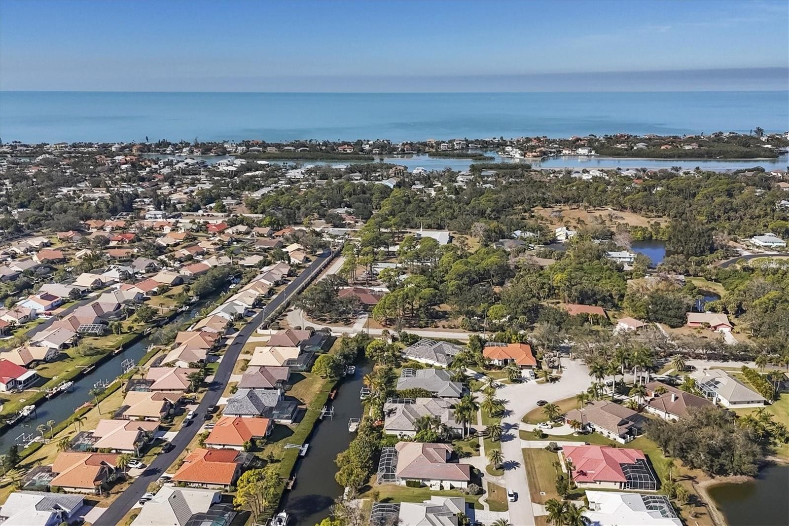 4 BED + DEN / 3.5 BATH / 3 CAR w/ POOL on an OVERSIZED 100' x 170' lot on a SALTWATER CANAL w/ GULF ACCESS. Located on a cul-de-sac street in the gated and deed restricted enclave of SHORE OAKS just 1.5 miles to Nokomis Beach. Big recent improvements include new HURRICANE IMPACT WINDOWS AND SLIDERS, TILE ROOF, and PEBBLE-TEC POOL RESURFACE. This 2002 MPS CUSTOM-BUILT HOME has a flexible split bedroom floor plan to maximize privacy and a SEPERATE DETACHED CASITA w/ private entrance which is the perfect space for guests / office / studio / multi-gen family arrangement. The main house has a COURTYARD feel with the living room, family room, kitchen, primary, and guest bedroom all opening to a HUGE COVERED LANAI with a LUXURIOUS OUTDOOR KITCHEN and private, heavily landscaped POOL and SPA area that will have you living the Florida Dream! Swimmers will appreciate access to a pool bath and outdoor shower. Back inside, the kitchen is the true heart of this home and offers 42" MAPLE CABINTERY, Modern STAINLESS-STEEL APPLIANCES, and stone counters along with a LARGE WALK-IN PANTRY and breakfast bar. The breakfast nook has a mitered-glass window which connects this whole space visually to the outdoors and helps make this home so light and bright. The primary suite offers tray ceiling, sliding door access to the pool, and his and hers closets. Bedroom #2 has sliders to the pool and windows overlooking the CANAL and 10'x 4' PRIVATE DOCK and BOAT LIFT. Bedroom #3 is 21' x 13' and offers a huge closet for tons of extra storage. Bedroom #4 is in the Casita along with an ensuite bath. The motor court area in front of the 3-car garage adds privacy as well as additional off-street parking for extra vehicles. Close to Nokomis Village shops and restaurants, A RATED SCHOOLS, Legacy Bike Trail, Oscar Scherer State Park, Historic Venice Mainstreet and Gulf Beaches. This home is an ABSOLUTE MUST SEE!