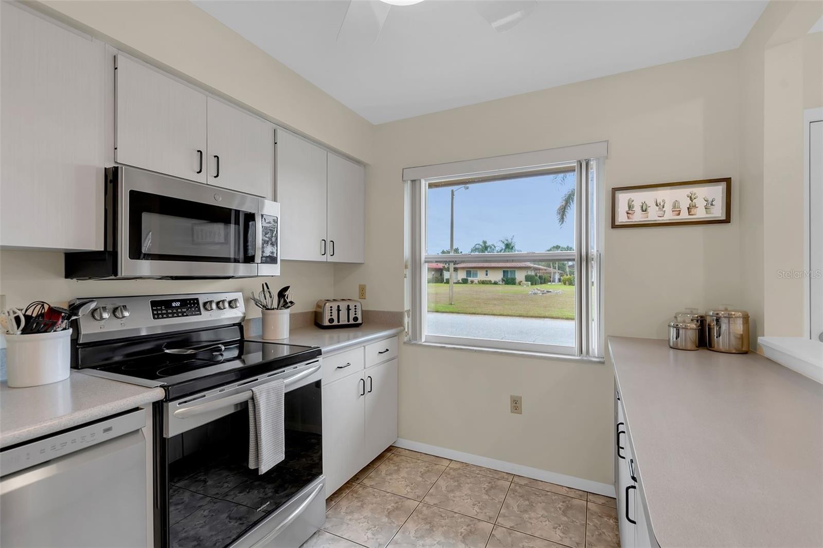 Maintenance fee of $225.00 a month!!!!! This impeccably clean and beautifully remodeled 2-bedroom, 2-bath home is truly move-in ready and designed for easy Florida living. The home features ceramic tile in the entry, kitchen, laundry room, and second bathroom, with luxury vinyl tile flooring throughout the remaining living areas for a seamless, modern look. The popcorn ceilings have been professionally removed, and fresh paint throughout creates a bright, crisp interior. The updated kitchen has corian countertops, a new dishwasher (2025) and the home features a new washer and dryer (2025), rarely used since installation. Hurricane shutters provide valuable storm protection and the roof was replaced in 2020, for added reliability. The home is being sold fully furnished---simply bring your clothing and begin enjoying your new home immediately upon closing. The spacious primary bedroom offers a large walk-in closet and pocket doors for privacy. Large windows throughout fill the home with natural light, while the generous lanai provides a welcoming space for entertaining guests. Residents enjoy a community pool heated and cooled for year-round comfort. This well-maintained, self-managed community with an elected board members available to assist residents. Ideally located near everyday conveniences, including Detweiler's Farm Market, Publix Super Market, and just minutes from the dining, shopping, and cultural attractions of Sarasota, this home offers exceptional comfort, convenience and value.
