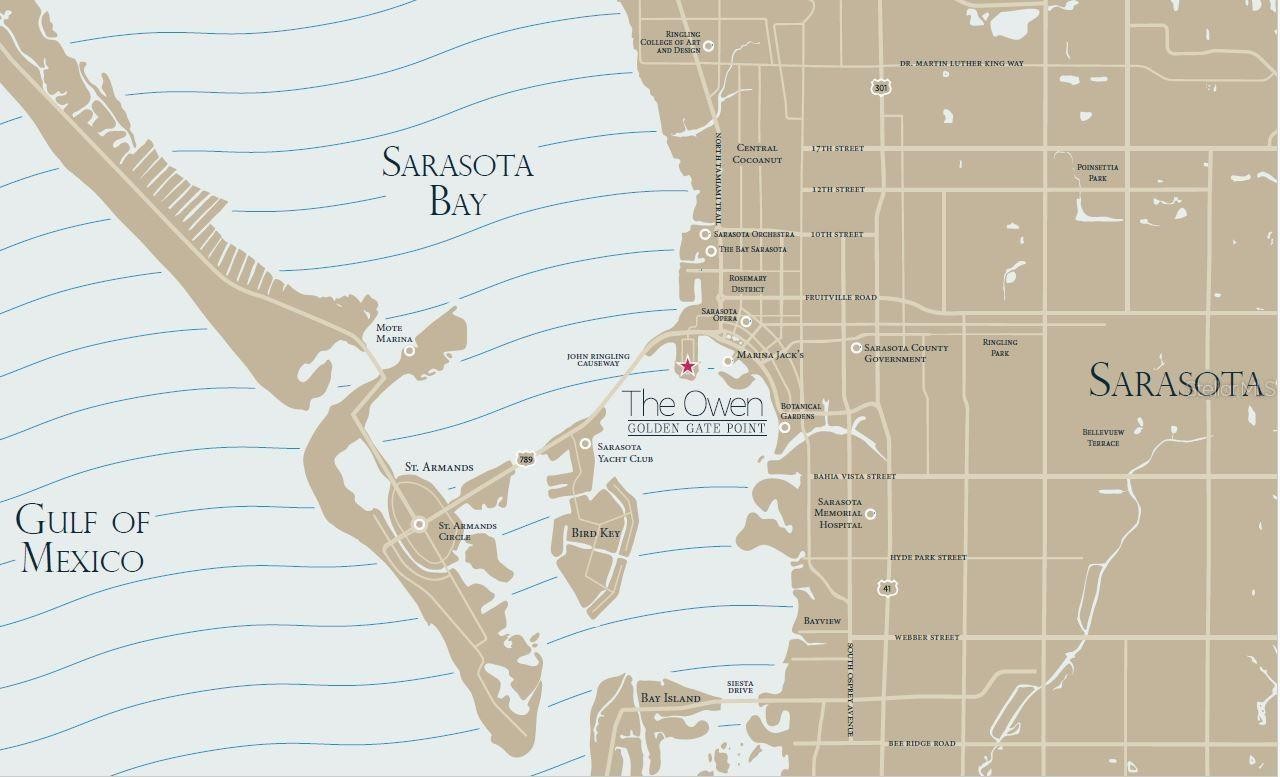Under Construction. An intimate gated community of just 29 residences, The Owen is nestled along the southern point of downtown’s Golden Gate Point. Interior finishes include a private elevator entry, 10-foot ceilings per plan, Sub-Zero refrigerator, Wolf five-burner gas cooktop, Wolf wall ovens, quartz countertops, Rohl fixtures, contemporary cabinetry, an oversized island, porcelain tile flooring and a built-in outdoor gas grill. Distinctive resort-style spaces are designed for wellness and leisure, including a 1,700 S.F. fitness center with Technogym equipment, dual locker rooms, steam and sauna, owners' social room, conference/work-from-home suites, game room with pool table, shuffleboard, ping pong table, large screen TV, self-serving outdoor bar and grill area, infinity-edge saltwater pool, spa, and cozy fire pit. A walking path encircling the property and a dog park area are the perfect places for you and your furry friend to get a daily run. The two-story grand entry lobby features relaxing spaces, reception desk with concierge, and separate mail and package rooms. Two parking spaces, one with an outlet for an EV charger are included, along with owner storage and bike storage. Easy access to the restaurants, boutiques, and galleries of downtown, St. Armands Circle, and the beaches of Lido and Longboat Keys, personalized homeowner services, and the security of all new construction make life at The Owen carefree and convenient.